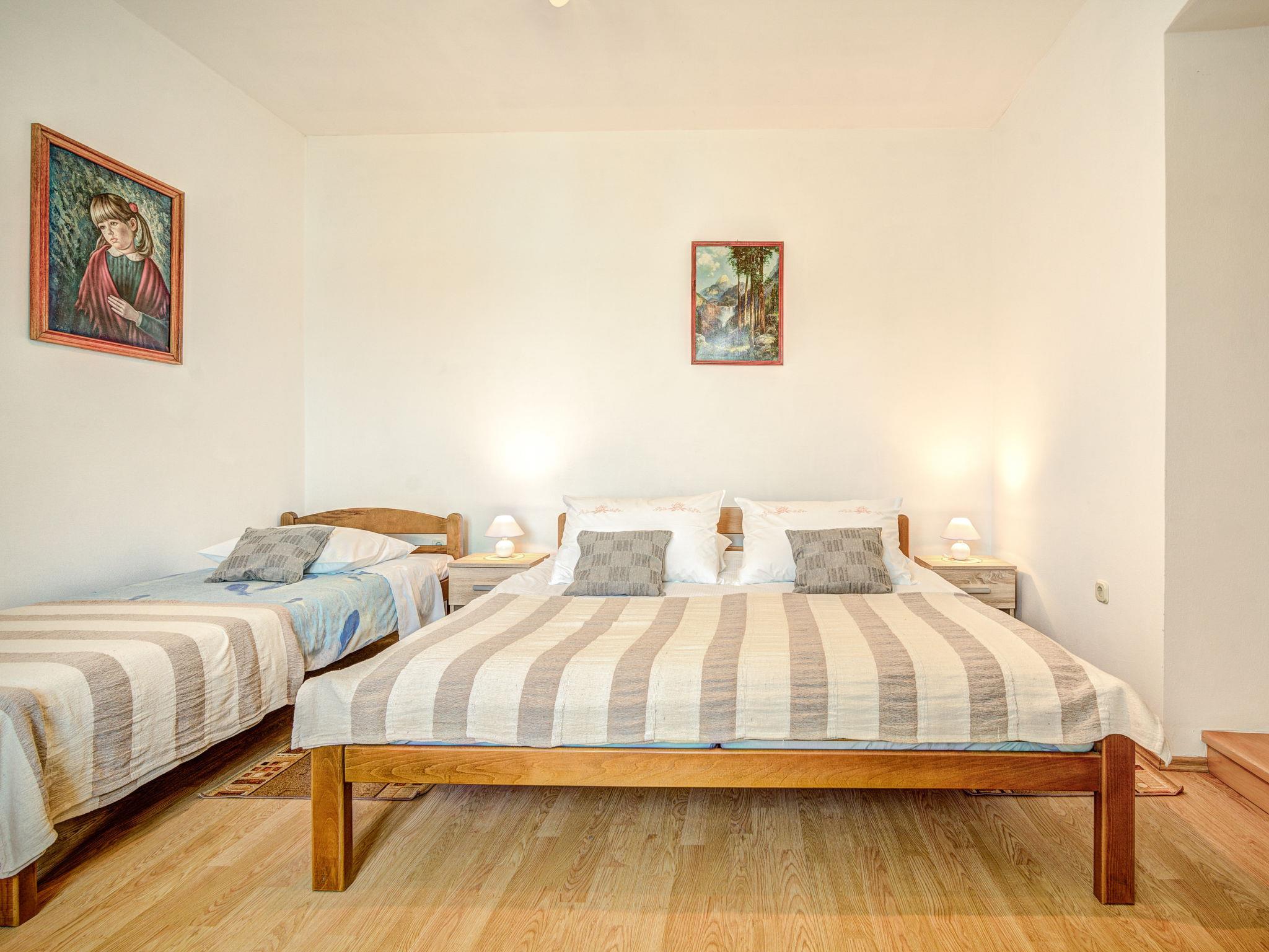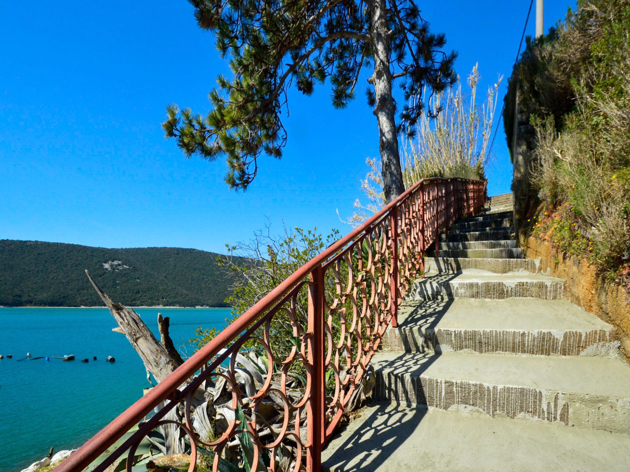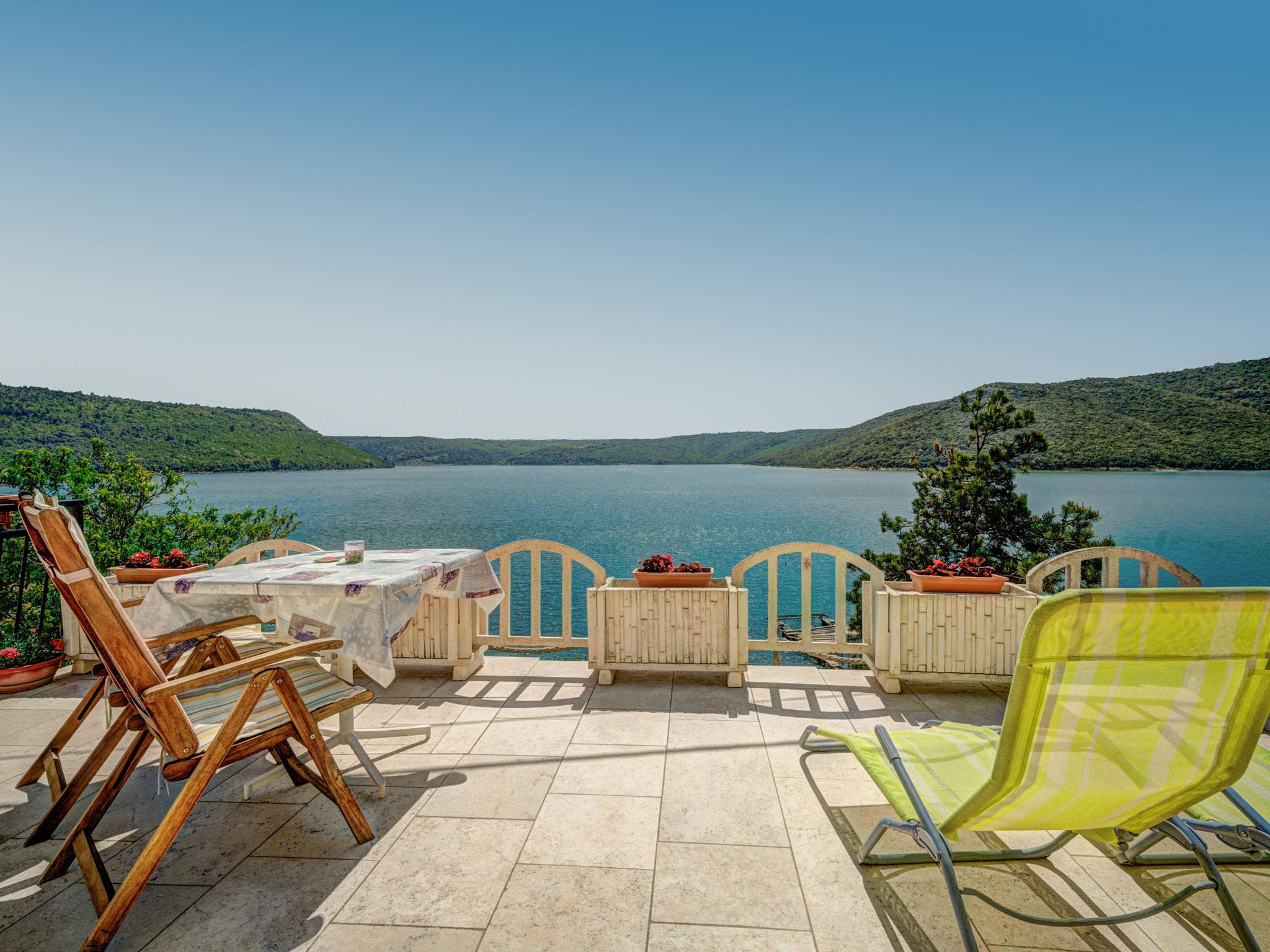 3-family house "More". 100 m from the centre of Trget, 10 km from the centre of Labin, in a quiet, sunny, elevated position, 30 m from the sea, 30 m from the beach. In the house: internet access. Single garage. Shop, restaurant 100 m, bus stop 5.3 km, pebble beach 1 km, concrete beach 30 m. 38 steps to the concrete beach. For shared use: traditional tavern with open-hearth fireplace, dining table and terrace furniture.