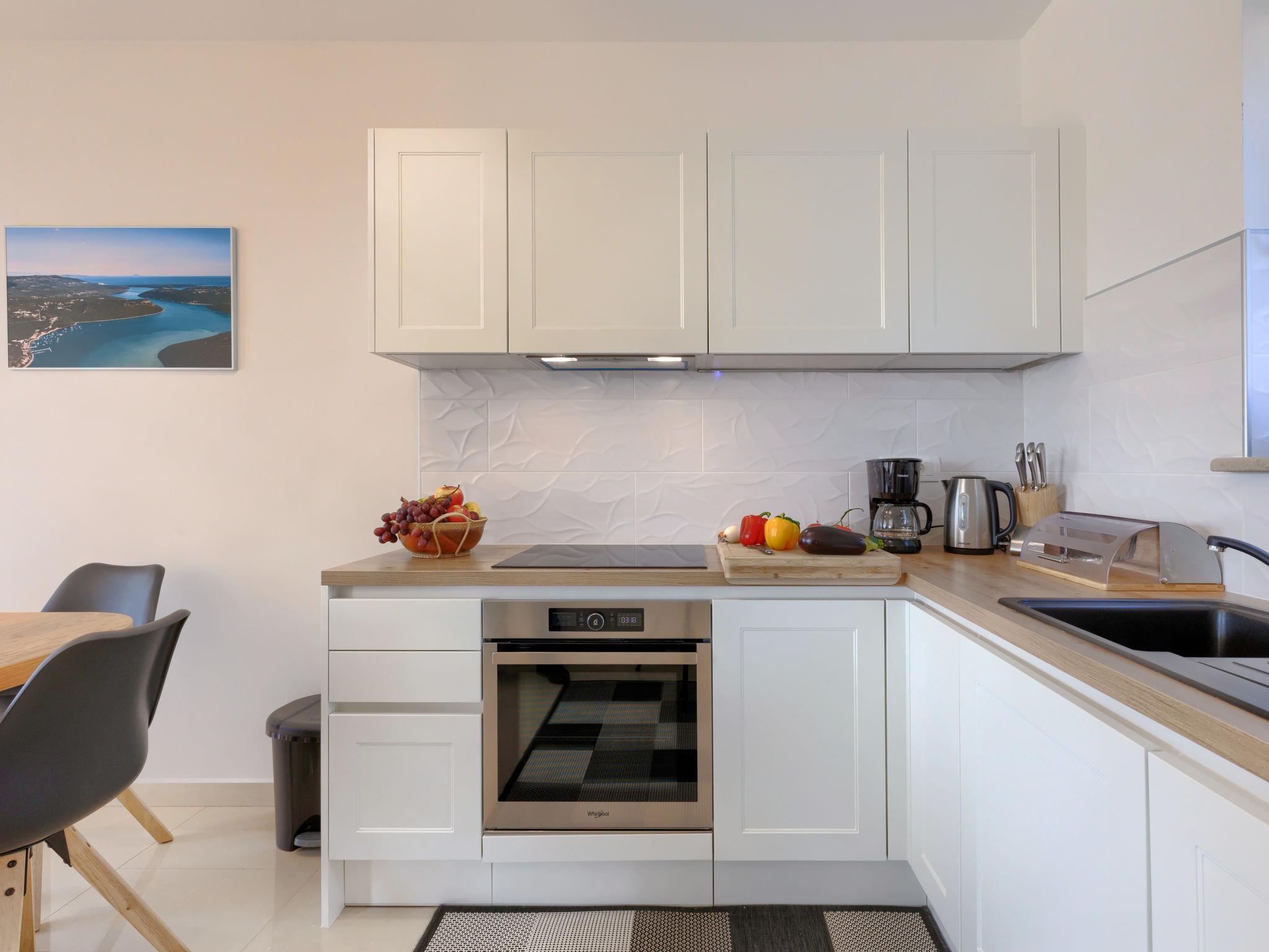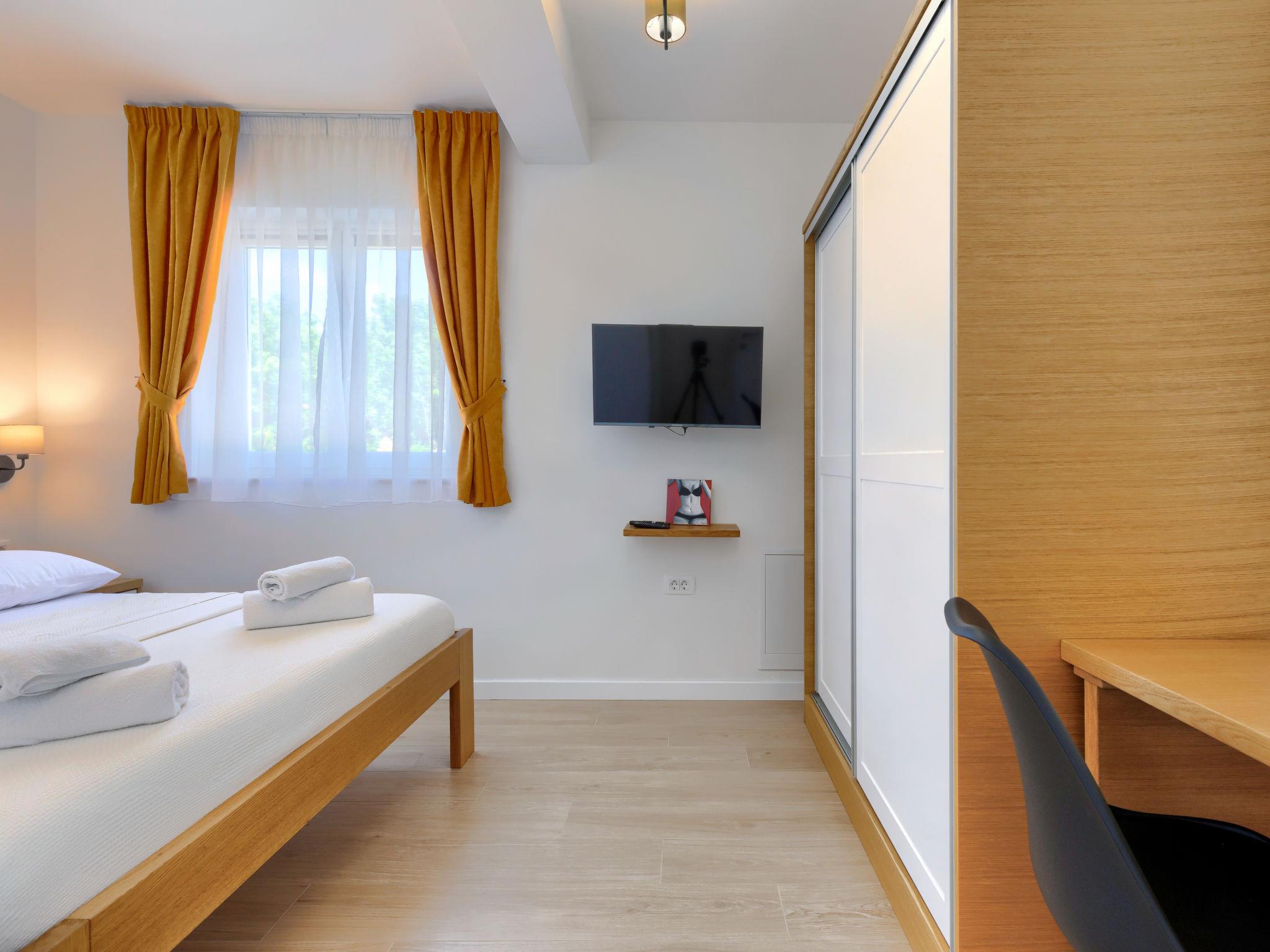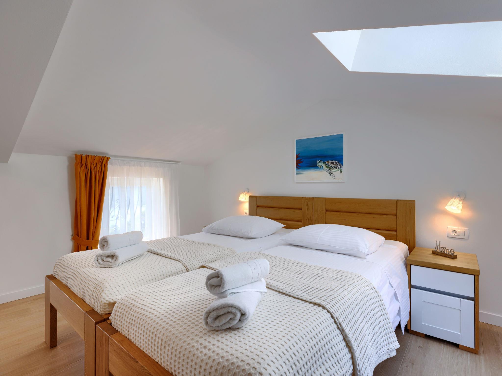 Beautiful single-family house "Villa Camellia", 3 storeys. 1.1 km from the centre of Trget, outside the resort, in a quiet, sunny, elevated position, 900 m from the sea, 900 m from the beach. Private: property 700 m2 (fenced), swimming pool angular (8 x 4 m, depth 150 cm, seasonal availability: 05.Apr. - 12.Oct.) with internal staircase. Outdoor shower, terrace (13 m2), barbecue, pool maintenance by the owner/gardener. In the house: internet access, washing machine. Parking at the house on the premises. Shop 1.1 km, supermarket 10 km, restaurant 600 m, bus stop 6.6 km, pebble beach 900 m. The owner does not accept any youth groups. Please note: airfield 55 km from the property.