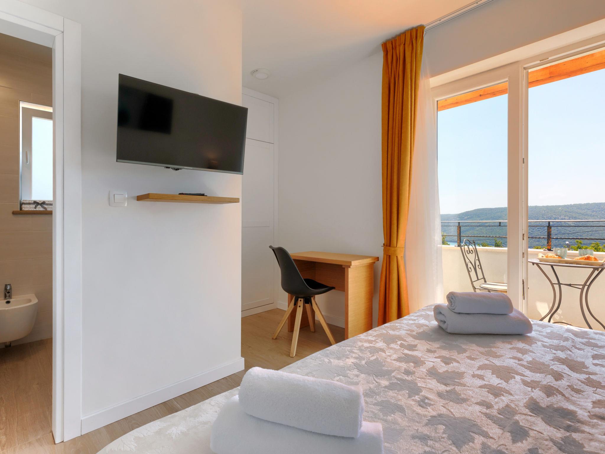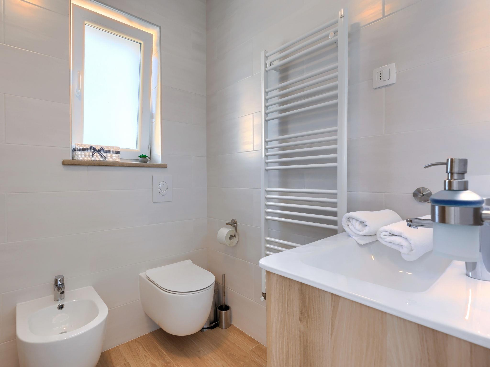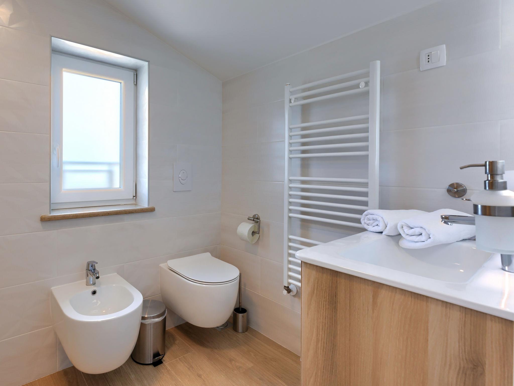 4-room house 105 m2 on 3 levels. Beautiful and cosy furnishings: living/dining room with TV, satellite TV and air conditioning. Exit to the terrace. Open kitchen (4 hot plates, oven, dishwasher, toaster, kettle, freezer, electric coffee machine). Sep. WC. Upper floor: 1 room with 1 french bed (180 cm, length 200 cm), shower/bidet/WC, satellite TV and air conditioning. Exit to the balcony. 1 room with 1 french bed (160 cm, length 200 cm), shower/WC, satellite TV and air conditioning. Top floor: 1 room with sloping ceilings with rooflight with 2 beds (90 cm, length 200 cm), shower/bidet/WC, satellite TV and air conditioning. Electric heating. Balcony 4 m2. Terrace furniture, balcony furniture, barbecue (portable), deck chairs. Partial view of the sea. Facilities: iron, hair dryer. Internet (WiFi, free). Please note: non-smoking house.
