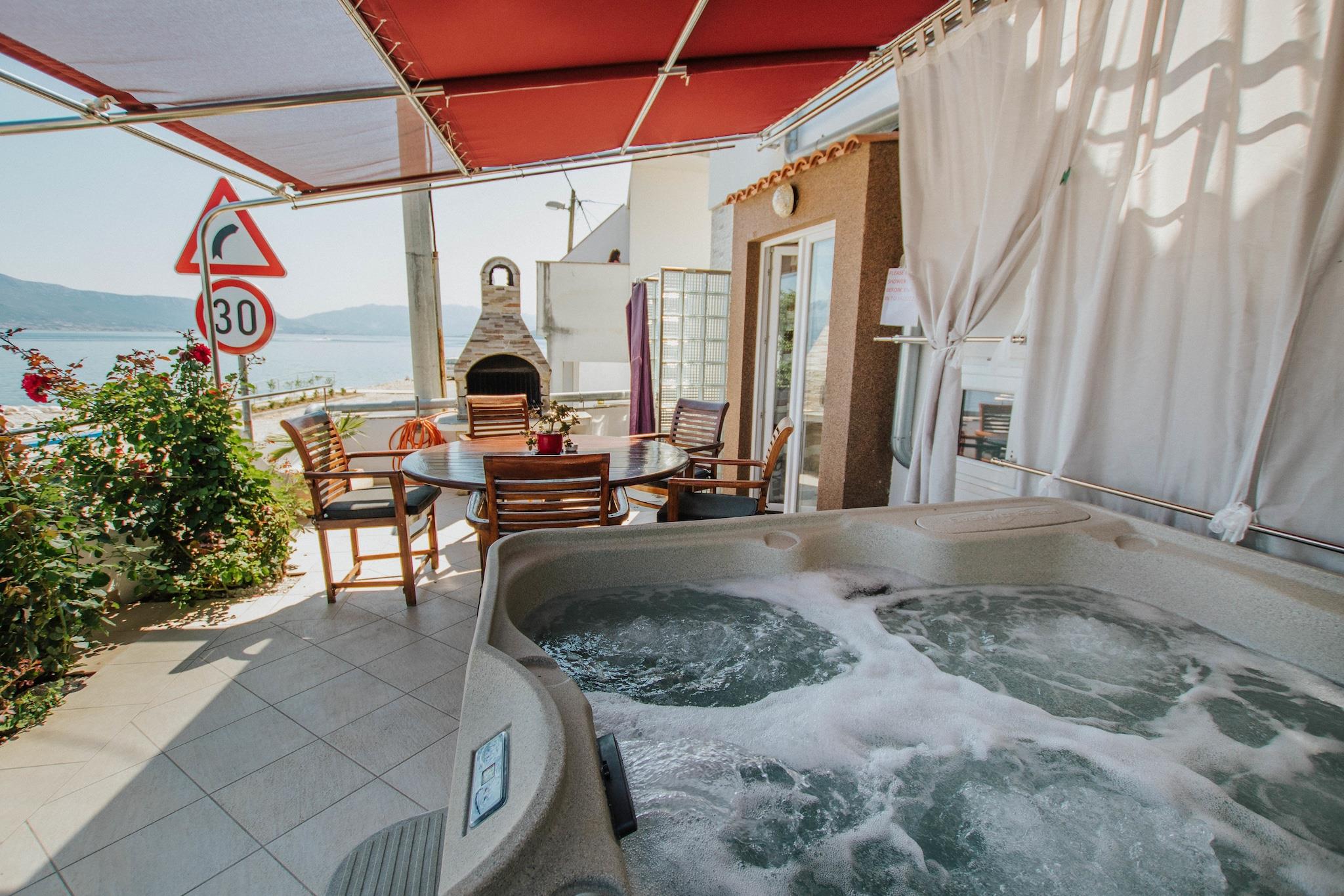 Arbanija er lille bosætning på nordsiden af øen Ciovo, kun 4 km væk fra den maleriske by Trogir. Det er fantastisk beliggenhed for hvile og afslapning med et krystalklart vand og stranden bogstaveligt talt lige over den vej, som er perfekt, hvis du ikke Jeg ønsker ikke at tilbringe hele dagen på stranden og hellere gå op på din private terrasse med jacuzzi, efter at have svømmet eller dyppet ind og ud af havet, når du ønsker. Huset er hyggeligt og komfortabelt og veludstyret med alle moderne faciliteter. Bestående af to adskilte lejligheder, spredes feriehuset over to etager og fordelene ved en terrasse med grill og bord til familie eller venner al fresco spisning sammen. Supermarked, nogle små restauranter, strandbar og pizzeria er inden for lige kort gåafstand, mens flere faciliteter og faciliteter er let tilgængelige i nærliggende Trogir. Også dette er et godt sted at udforske dalmatiske hotspots på en dagsudflugter.