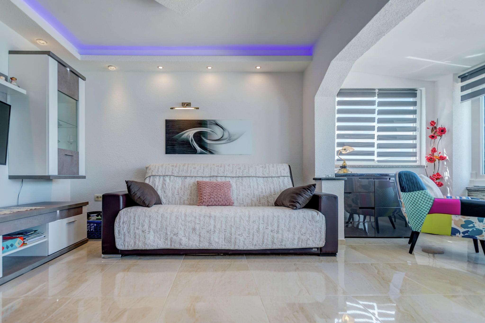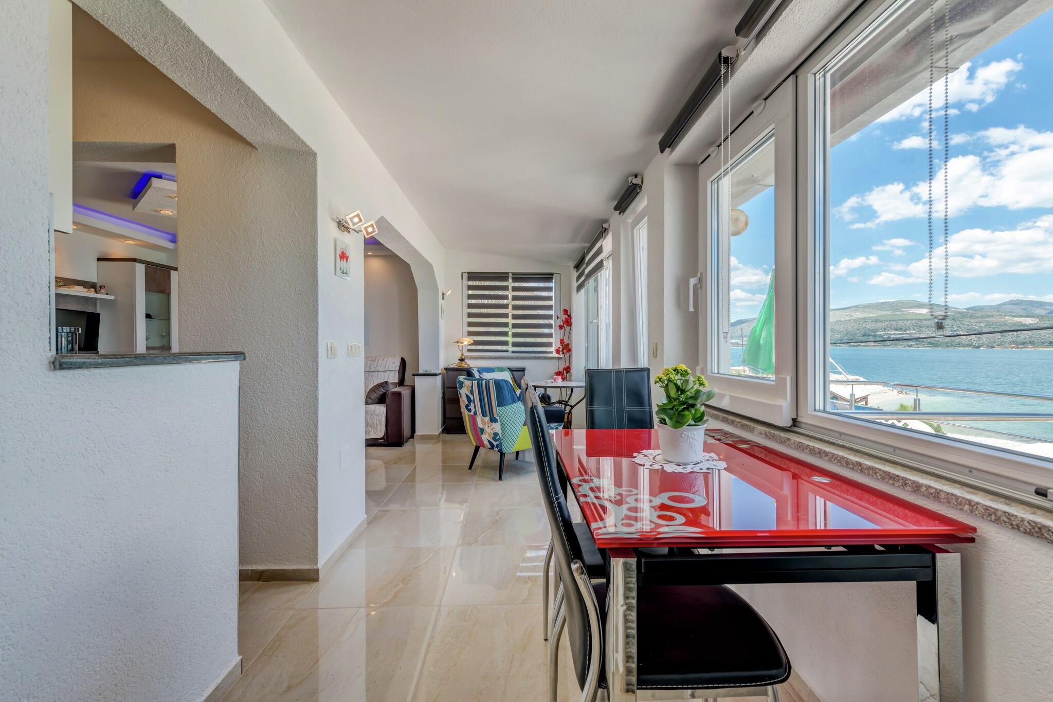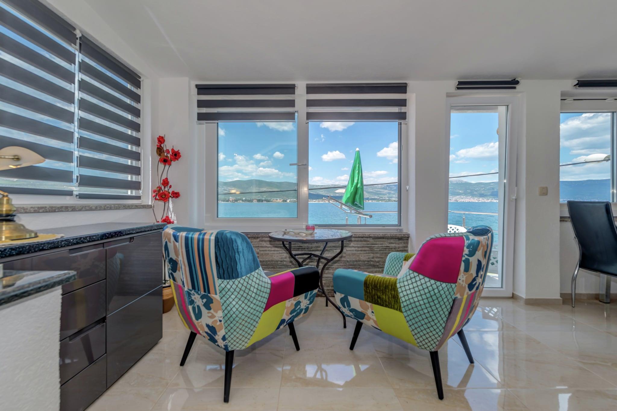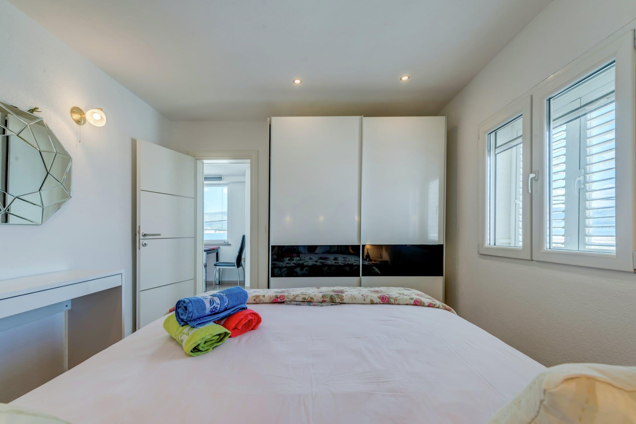 Oplev det perfekte kysttilflugtssted i Trogir - Arbanija i denne kæledyrsvenlige lejlighed til fire gæster, kun 10 meter fra stranden. Vågn op til lyden af bølger og nyd ubesværet adgang til Adriaterhavet. Med Trogirs historiske gamle bydel kun 4,5 km væk kan gæsterne udforske middelaldergader, kulturelle vartegn og det pulserende lokale liv. Restauranter, butikker og offentlig transport ligger alle inden for 300 meter, hvilket sikrer bekvemmelighed under hele dit ophold. Indenfor kan lejligheden prale af en moderne opholds- og spisestue med fladskærms-tv med satellitkanaler og en dobbelt sovesofa, et fuldt udstyret køkken med induktionskogeplade og essentielle apparater samt et hyggeligt soveværelse med en dobbeltseng. Gæsterne kan slappe af på den private balkon, nyde grillede lækkerier på det fælles grillområde eller benytte sig af praktiske faciliteter som aircondition, vaskemaskine og privat parkering. I nærheden kan du besøge Diocletians Palads, en UNESCO-fredet romersk fæstning, eller beundre Sankt Domnius-katedralen, kendt for sin fantastiske arkitektur. Til spisning tilbyder Restaurant Mali Raj autentisk dalmatisk mad, mens Konoba Mlinice serverer frisk fisk og skaldyr i charmerende omgivelser. Uanset om du søger eventyr eller afslapning, er dette tilflugtssted ved havet det perfekte tilflugtssted.