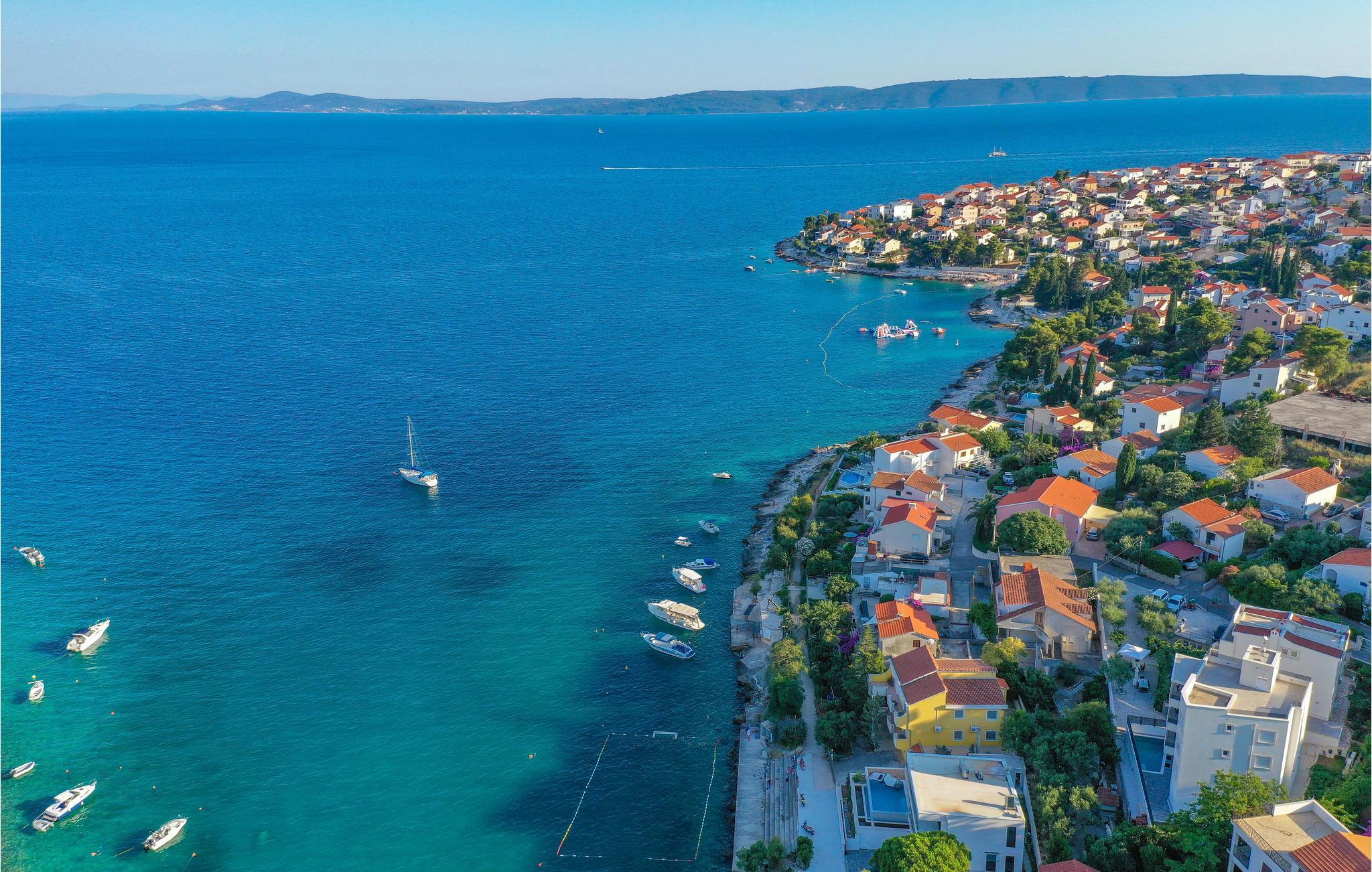 Nyd en storslået udsigt over havet i denne komfortable lejlighed med adgang til poolen. Lejligheden byder dig velkommen med en smuk atmosfære og en indbydende feel-good atmosfære. Nyd hyggelige timer sammen i den moderne stue. Her kan du tilberede dine yndlingsretter i det moderne køkken og derefter nyde dem på den rummelige terrasse med en vidunderlig panoramaudsigt over havet og øerne. I husets fælles have venter en skøn swimmingpool på dig, hvor du kan køle af og derefter slappe af i solen. Smid dit badehåndklæde over skulderen og gå de få meter til plateaustranden, hvor du kan hoppe i det fantastiske havvand. Øen Ciovo er særligt interessant for vandelskere og vandrere, og øens lystbådehavn er en af de smukkeste i det centrale Dalmatien. Du kan også tage en tur til byen Trogir. Saint Lawrence-katedralen er byens hovedattraktion, men gå ikke glip af det venetianske klokketårn og Cipiko-paladset på katedralpladsen. God fornøjelse i denne indbydende feriebolig ved havet!