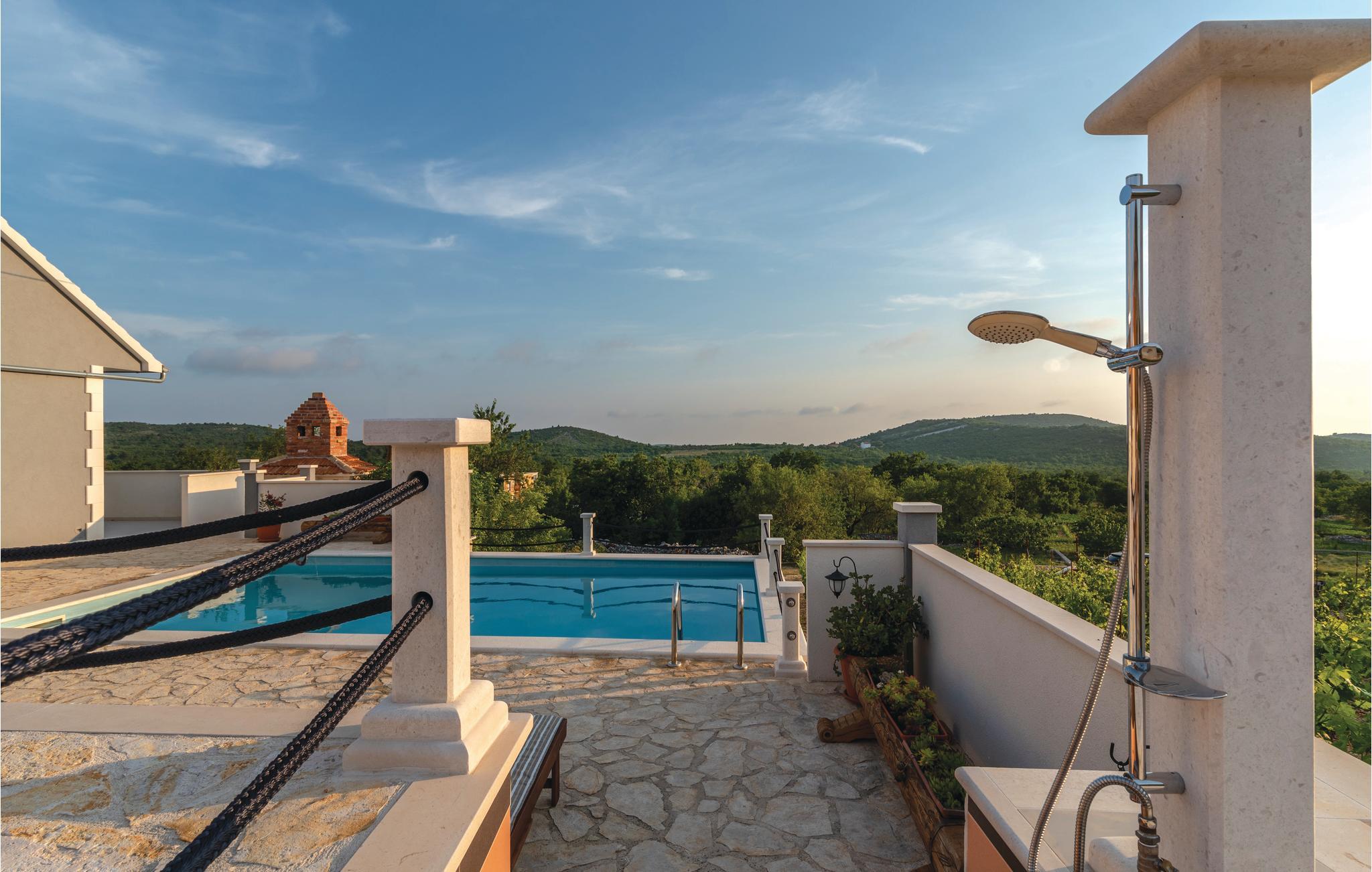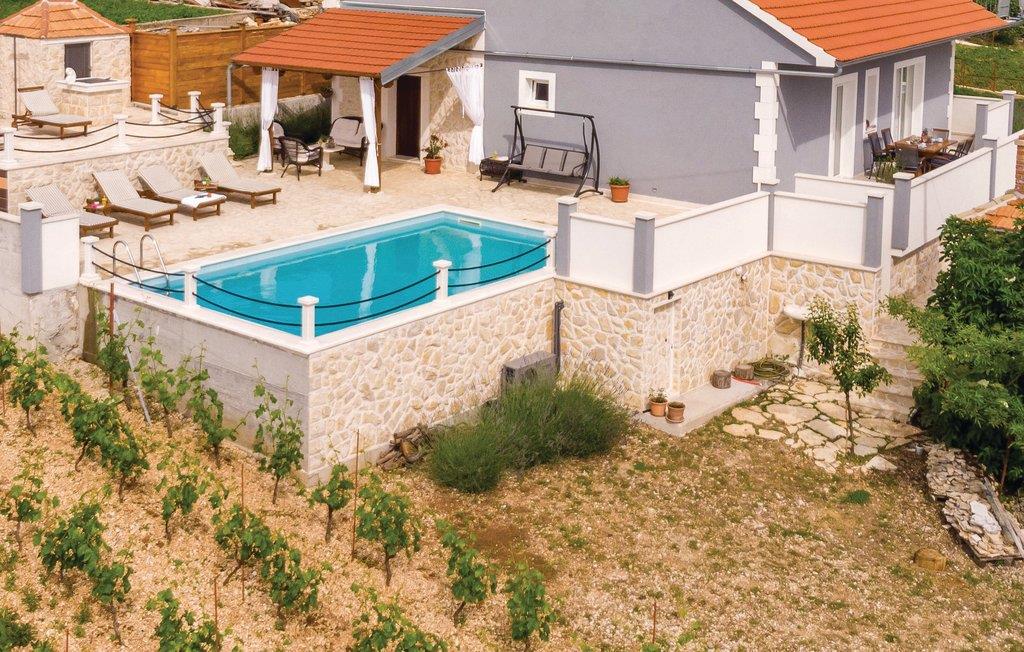 Dette feriehus ligger i Blizna Gornja, en landsby i det dalmatiske bagland, ikke langt fra Trogir. Dette herlige landskab byder jer på et uforglemmeligt ophold. Ejerne byder jer efter behov på økologiske produkter af egen produktion. I havebederne i nærheden af huset kan I eventuelt også benytte jer af grønsager. Huset er praktisk indrettet med soveværelser, stue og udendørs grill. Poolen er dejligt anlagt, med herlig udsigt til landskabet. Nærheden til Trogir, Sibenik og Rogoznica er en fordel, som I burde udnytte.