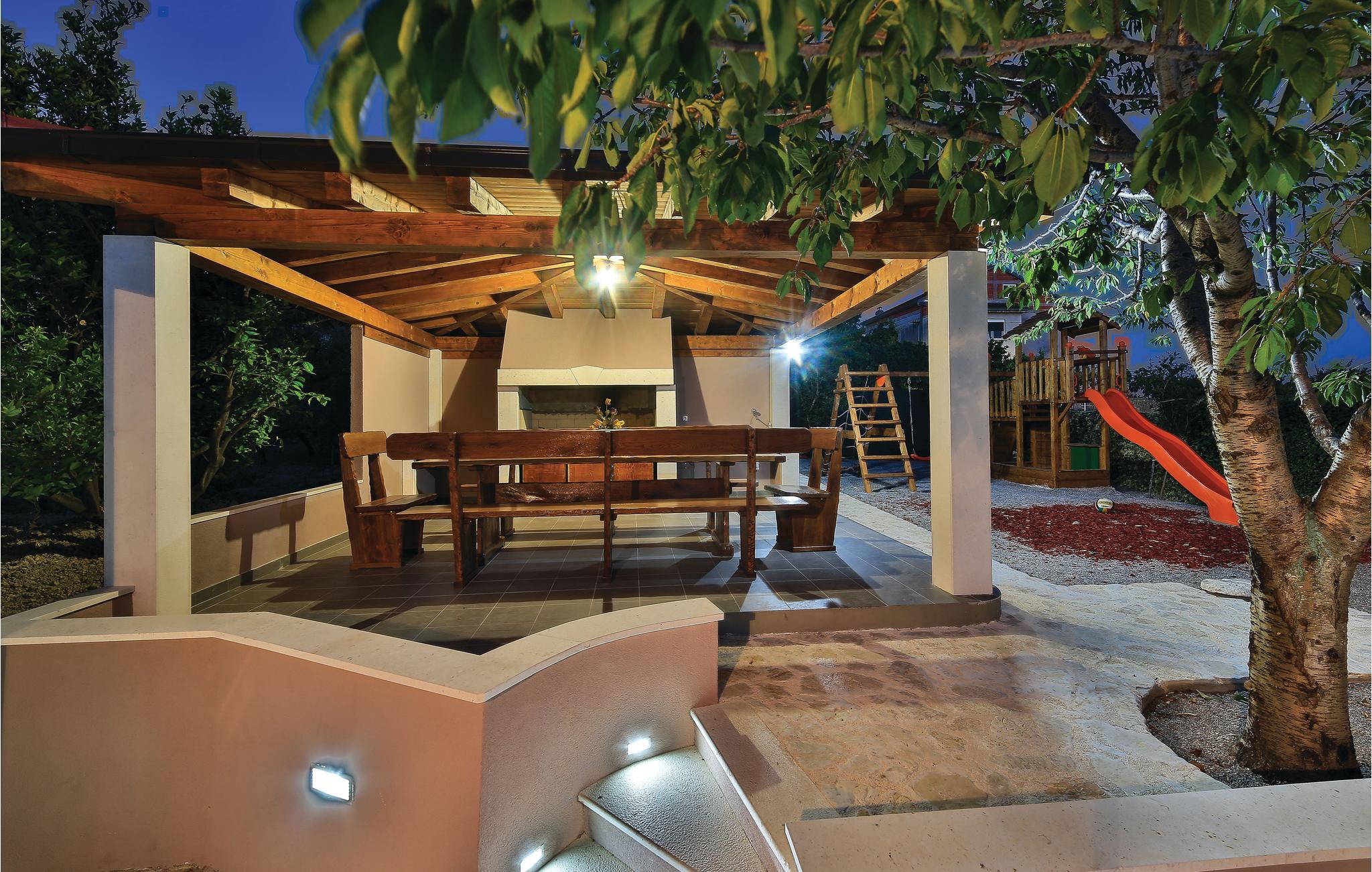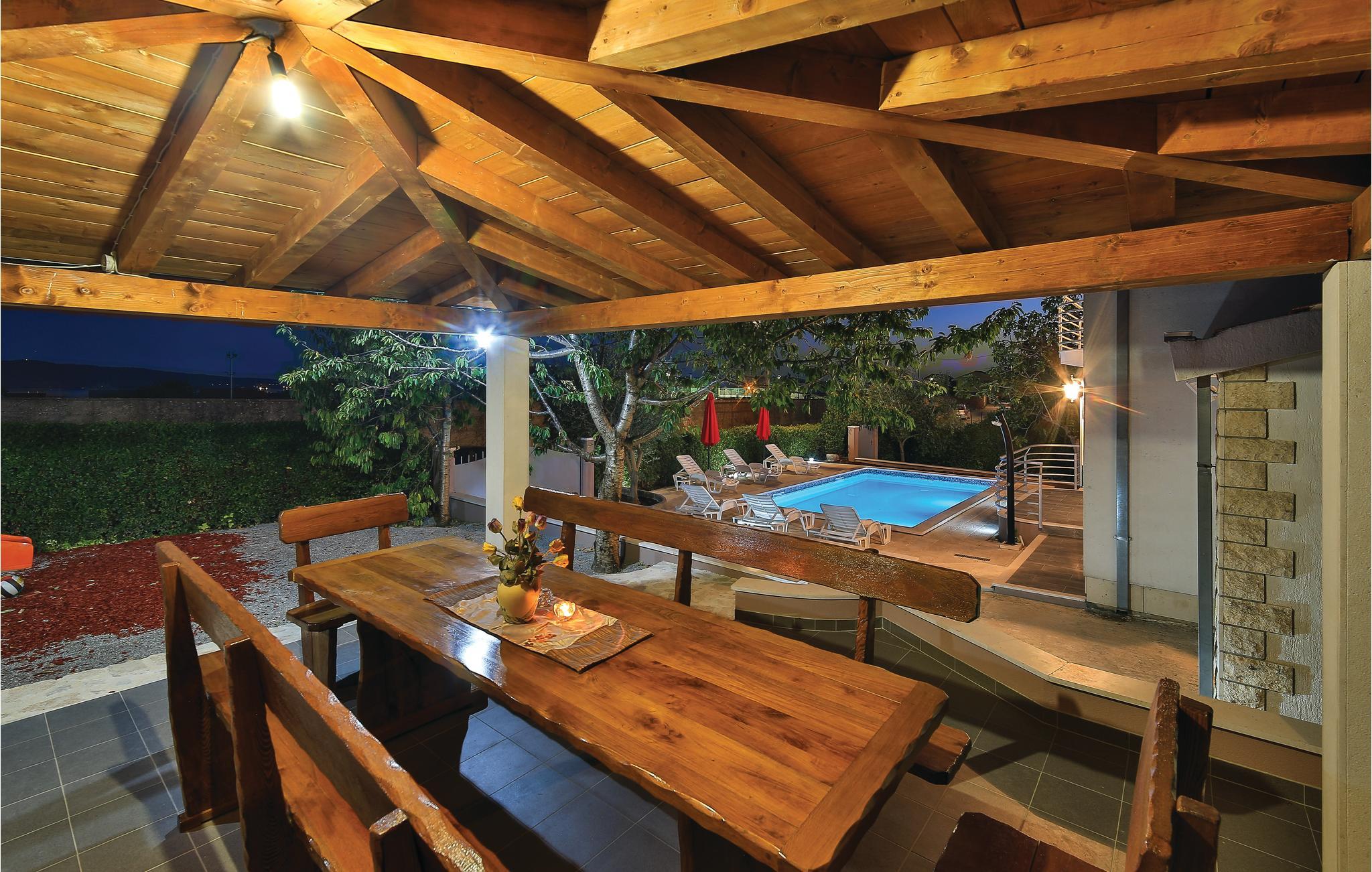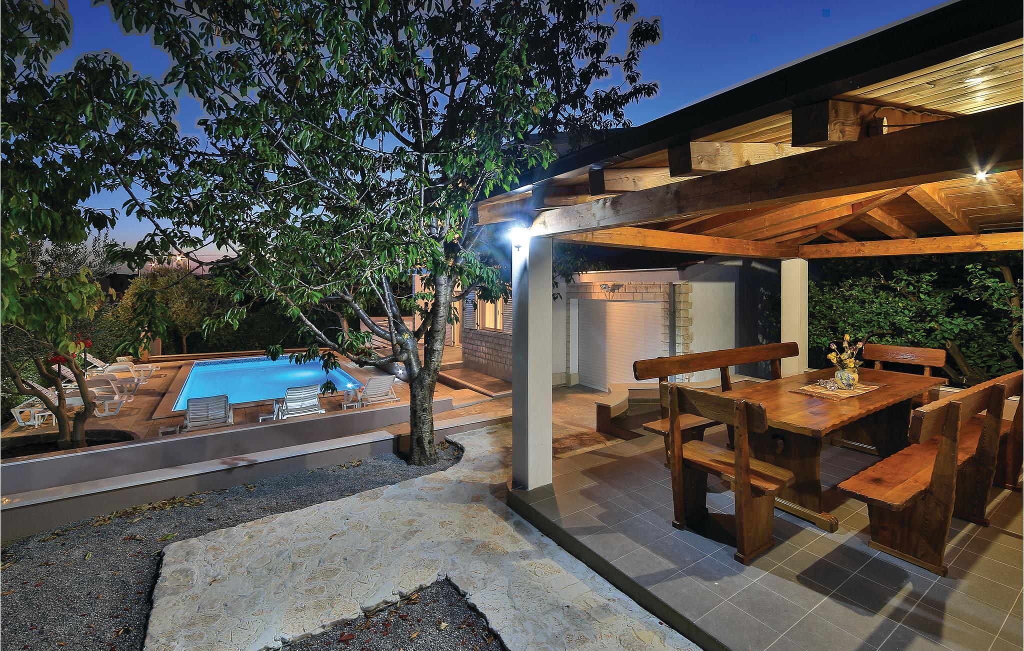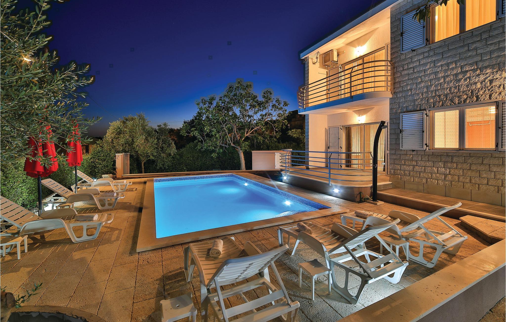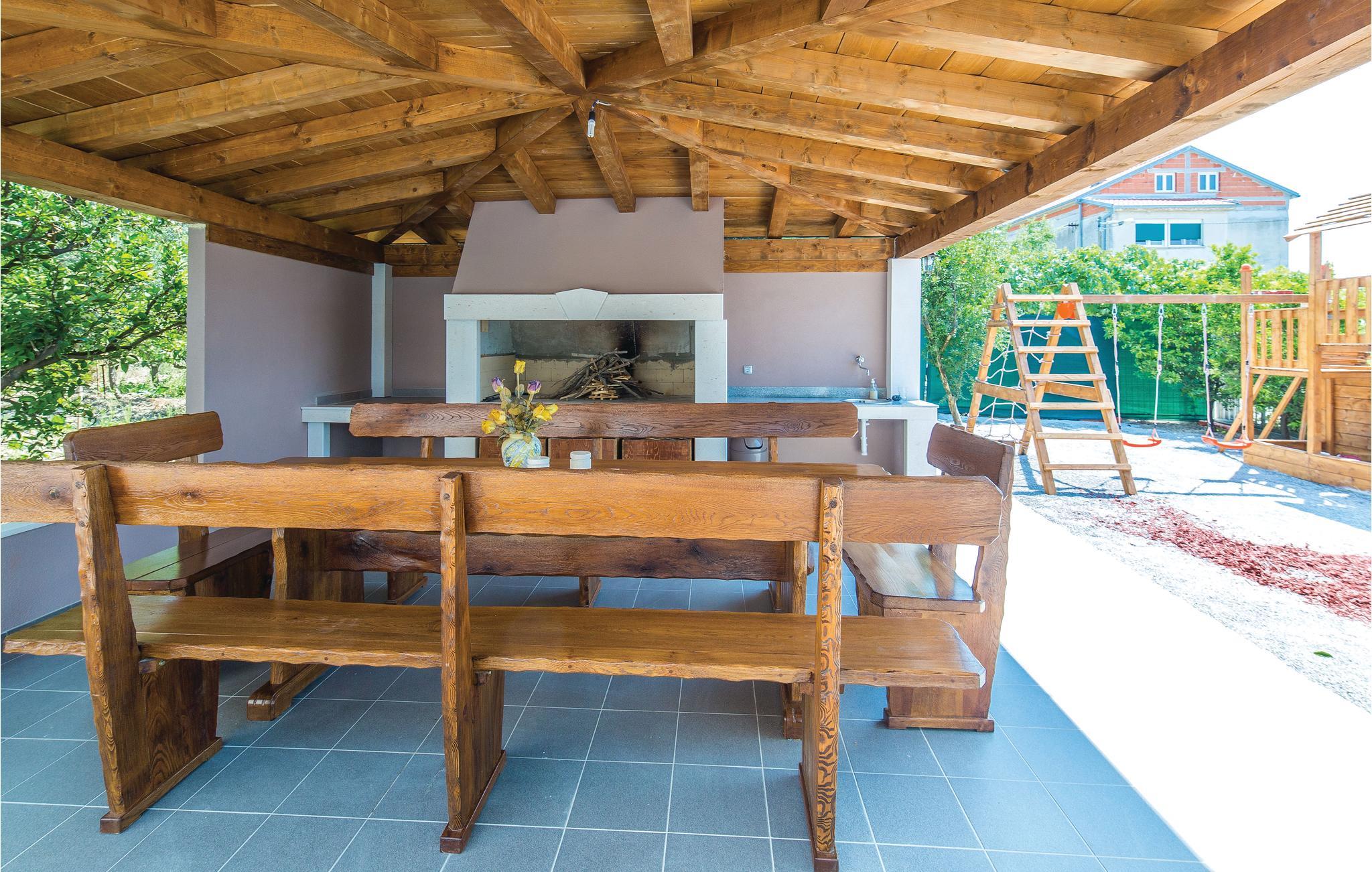 Dette dejligt og hyggeligt indrettede feriehus ligger på en indhegnet grund i Kastel Gomilica med god plads til den store familie eller gruppe af venner der vil holde ferie sammen. Huset rummer fire soveværelser, to badeværelser og et køkken der er åben mod stuen. I haven er der en pool til vandsjov og svømmeture og i her er også forskellige former for legeredskaber til familiens små. Ud over parkeringspladsen på grunden er der også en parkeringsplads i en garage. Besøg de interessante byer Trogir und Split, se det naturskønne vandfald Krka, valfartsstedet Medugorje, den blå sø og den arkæologiske udgravning af byen Salona.