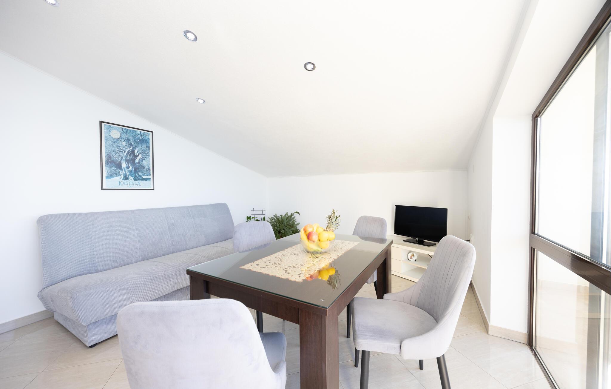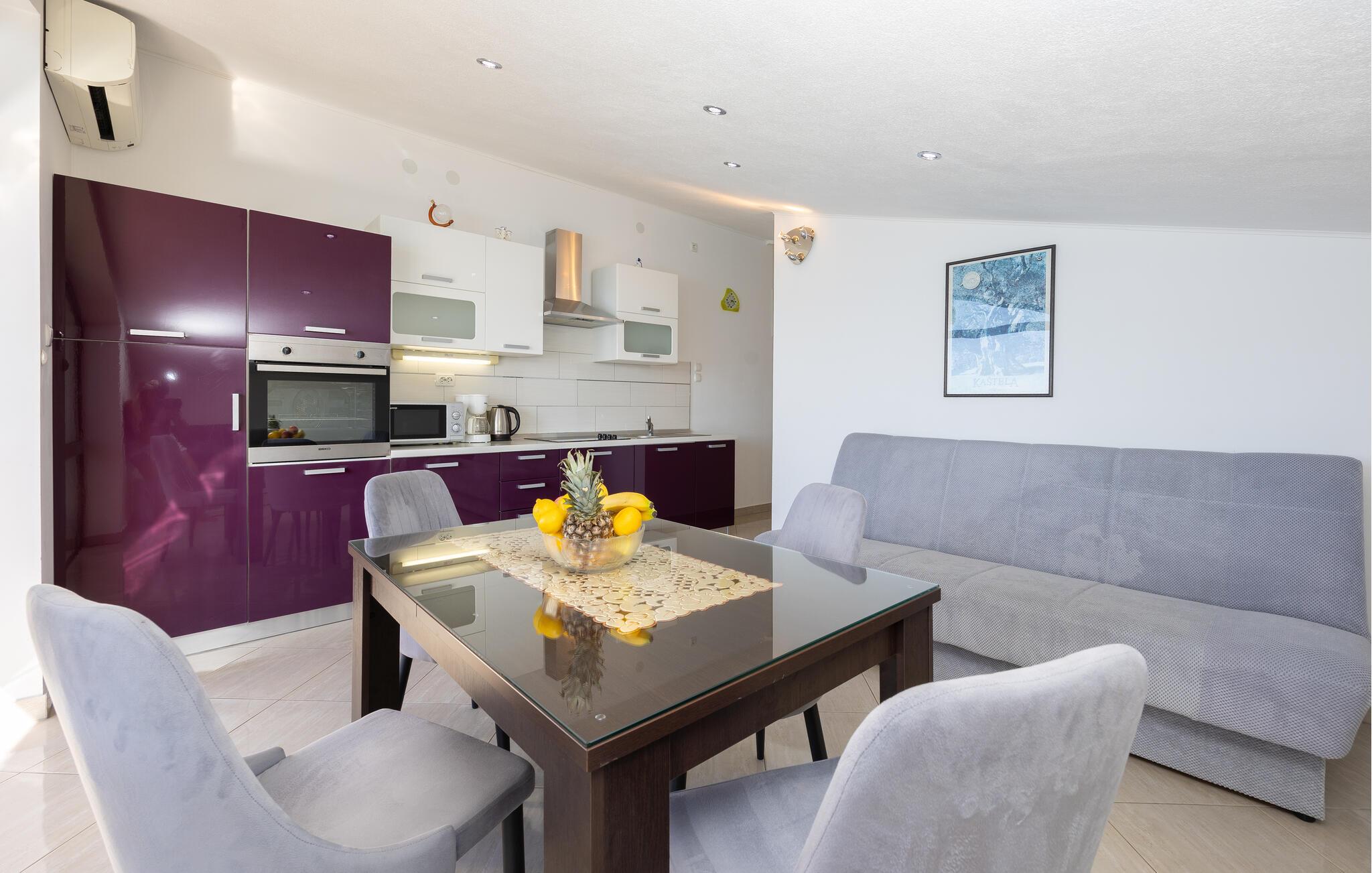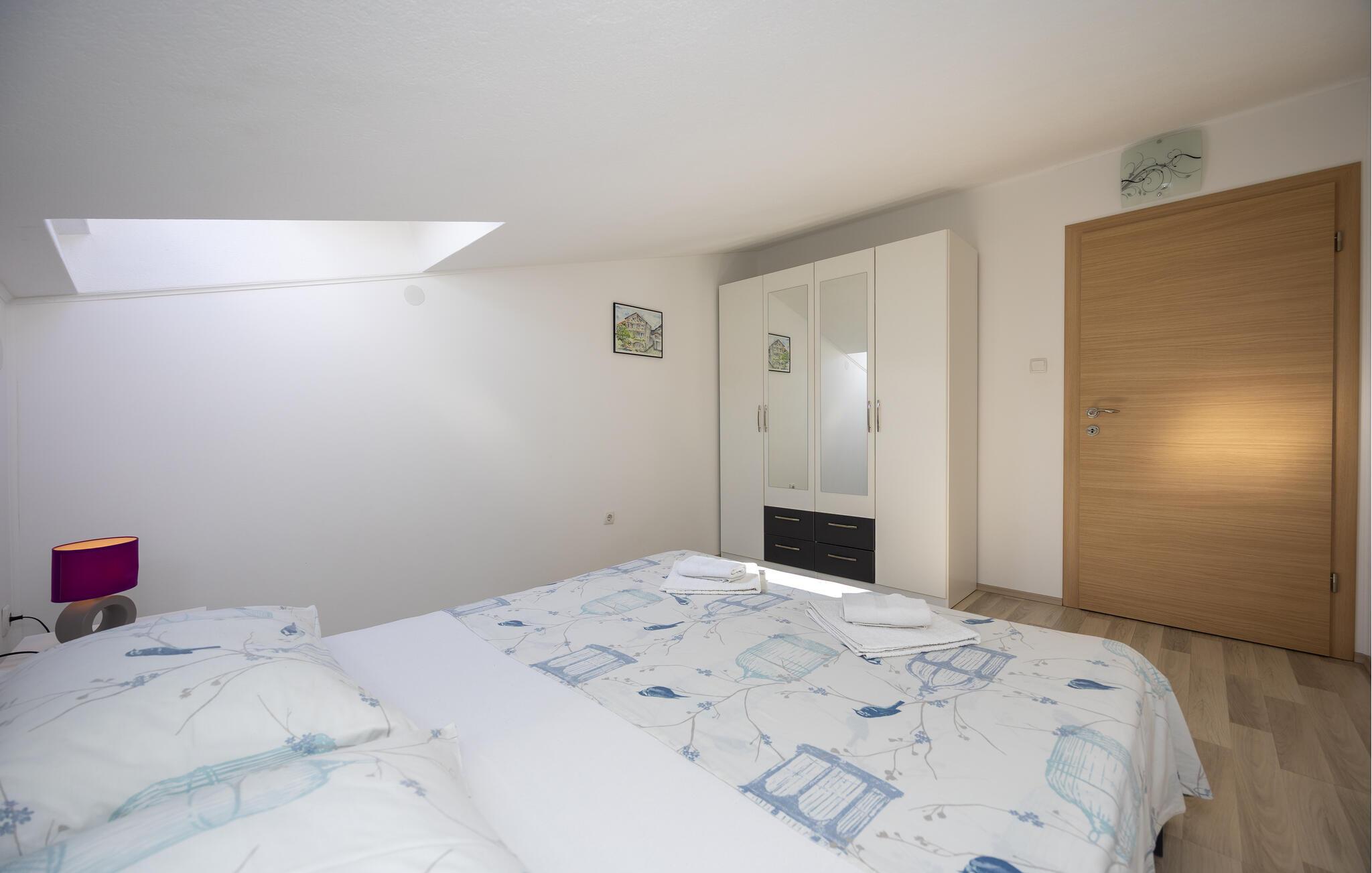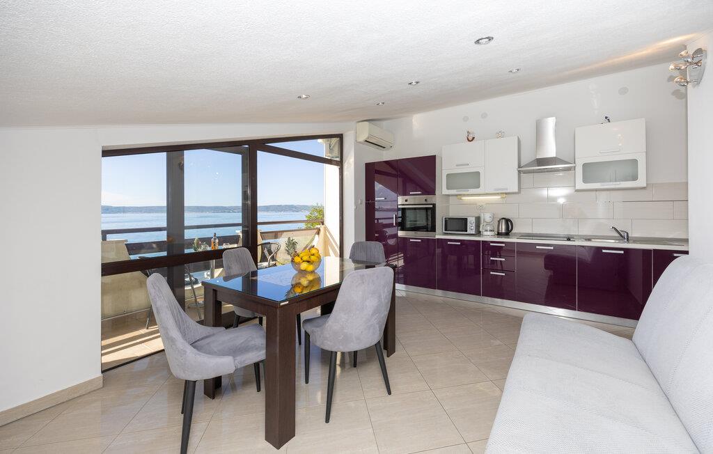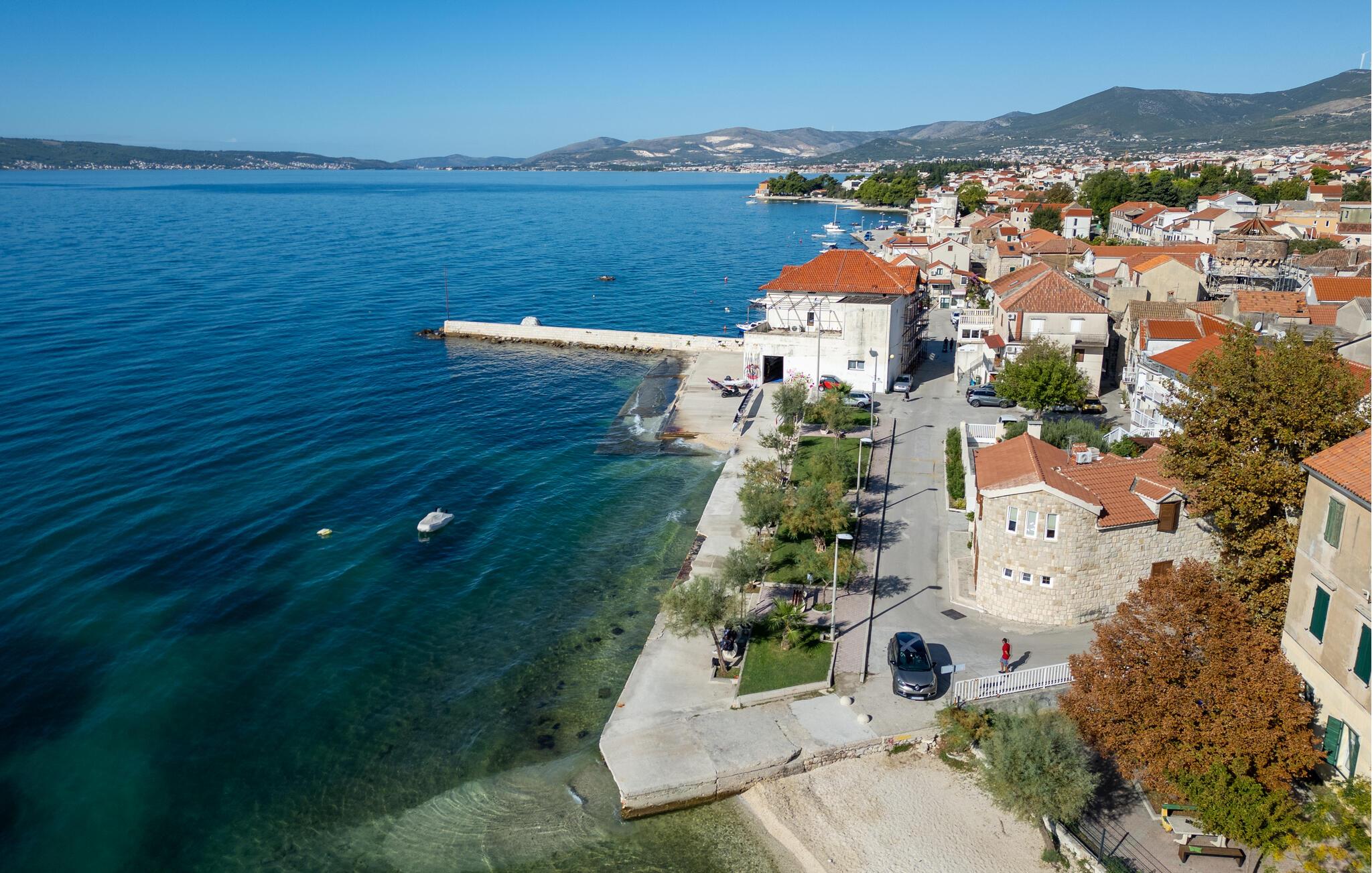 Lige i nærheden af en skøn kiesstrand ligger disse ferielejligheder. CDE497 ligger på 3. sal med en min. loftshøjde på 140 cm. Lejligheden er komfortabelt indrettet og der er en fantastisk panoramaudsigt fra terrassen. Den praktisk indrettede lejlighed CDE498, rummer to lejligheder der deles om altanen. Den ene fordeles på to etager, der er forbundet med en stejl trappe. Ad en udendørs trappe kommer i op til den anden lejlighed der ligger på anden sal. Lige ved siden af huset er den skønne promenade, hvor I kan spadsere dejlige ture om aftenen langs havet. Besøg de historiske byer Trogir og Split. Lige ved siden af huset forløbet den skønne promenade, hvor I kan spadsere en tur om aftenen. Besøg også de historiske byer Trogir og Split.