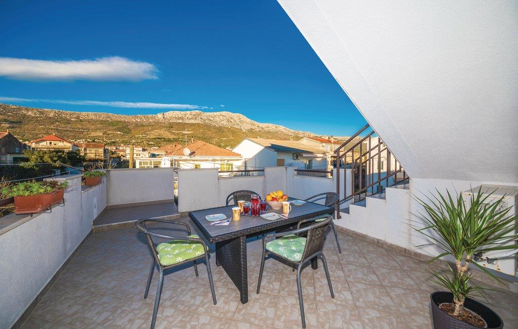 Lige i nærheden af en skøn kiesstrand ligger disse ferielejligheder. CDE497 ligger på 3. sal med en min. loftshøjde på 140 cm. Lejligheden er komfortabelt indrettet og har en fantastisk panoramaudsigt fra terrassen. Den praktisk indrettede lejlighed CDE498, rummer to lejligheder der deles om altanen. Den ene fordeles på to etager, der er forbundet med en stejl trappe. Ad en udendørs trappe kommer i op til den anden lejlighed der ligger på anden sal. CDF616 ligger i stueplan med terrasse og udsigt over havet. Lige ved siden af huset er den skønne promenade, hvor I kan spadsere dejlige ture om aftenen langs havet. Besøg de historiske byer Trogir og Split.