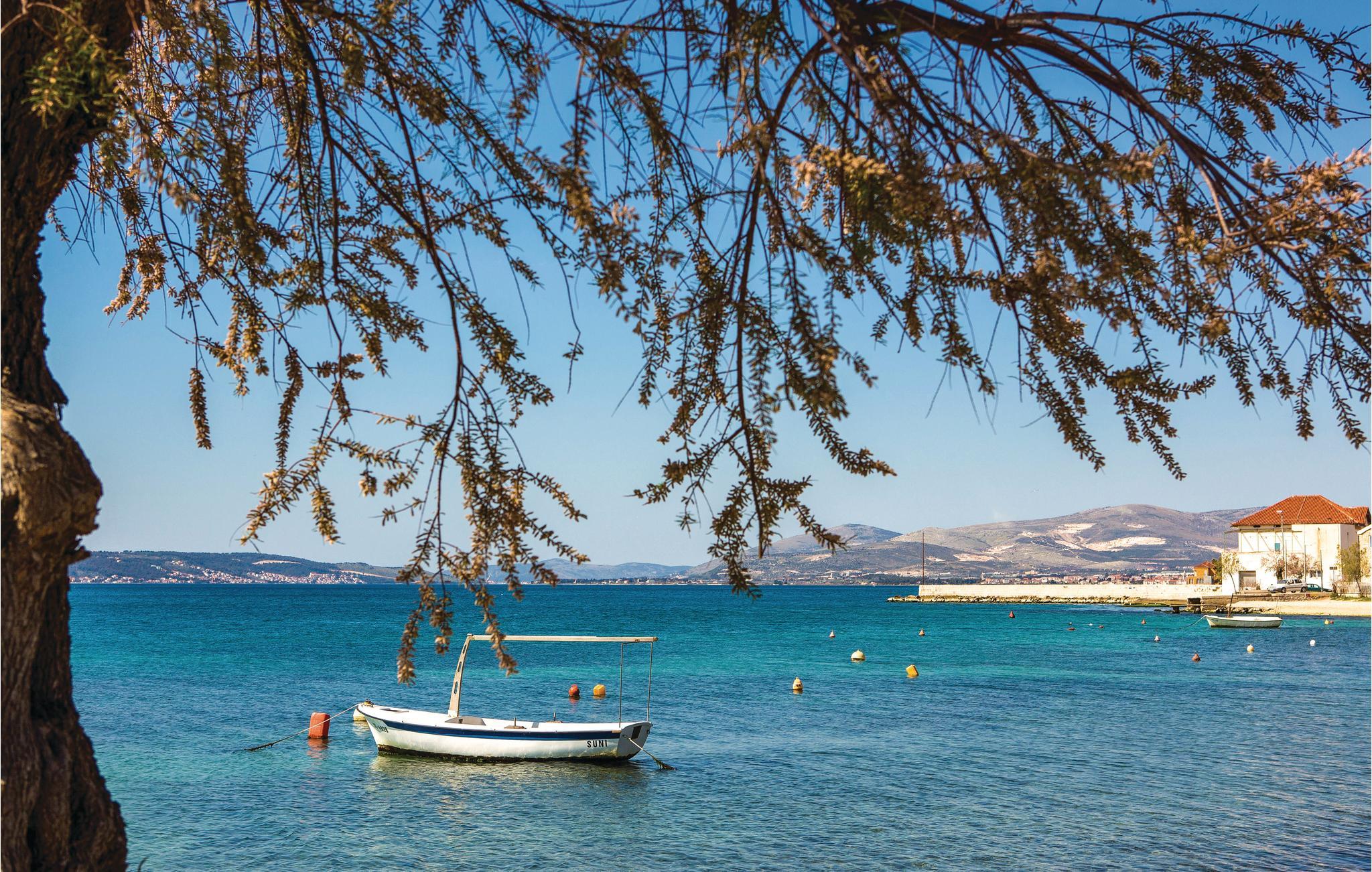 Denne enkelt indrettede ferielejlighed ligger i stueetagen i en privat ejendom i Kastel Kambelovac. I lejligheden er der to soveværelser, badeværelse og et køkken der er i åben forbindelse med stuen. I har egen privat terrasse med havudsigt mod syd, hvor I kan slappe af og nyde solen. Der er parkeringsplads i garagen og adgang til en fælles grill. Nyd badelivet på de nærliggende beton- og kiesstrande som er meget børnevenlige. Byen Kastel Kambelovac ligger mellem de historiske byer Trogir og Split, som vi varmt kan anbefale jer at besøge i løbet af ferien. Pga. de mange skønne seværdigheder er Trogir med på UNESCOs verdensarvsliste.