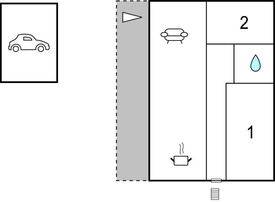 Opholdsstue/køkken - 2 Sovepladser. (Sofa, madras eller lignende).