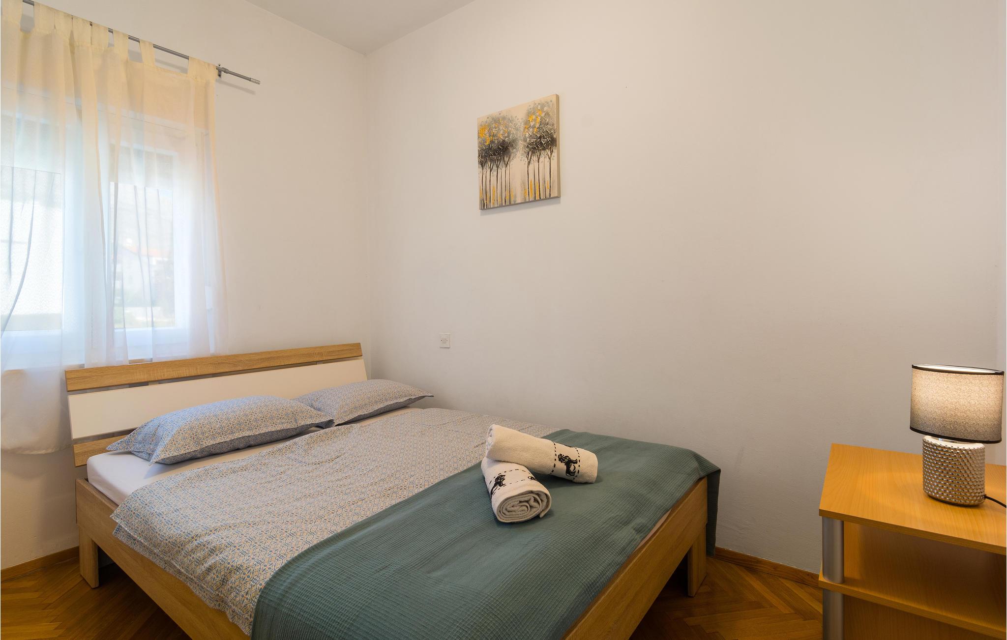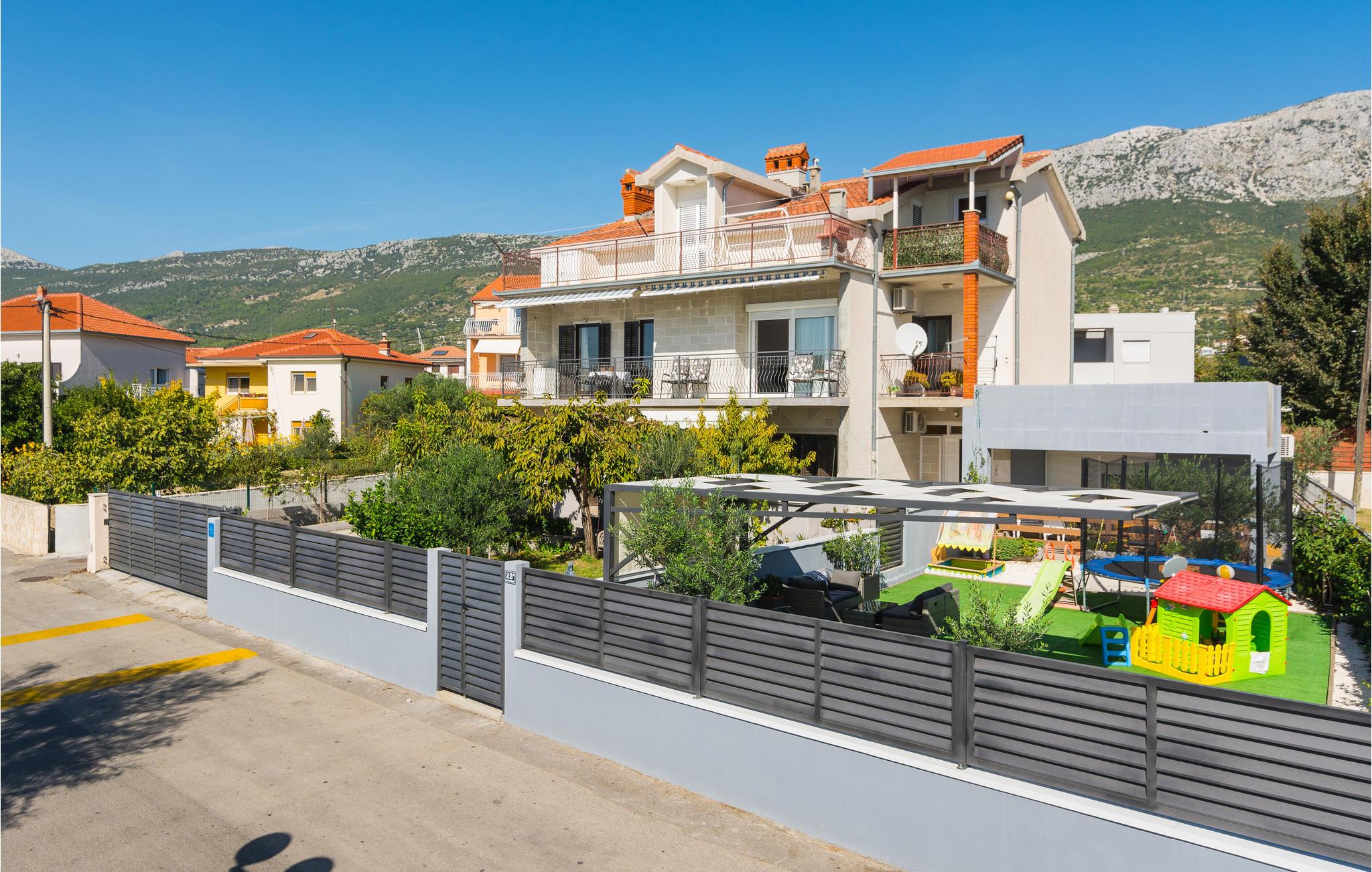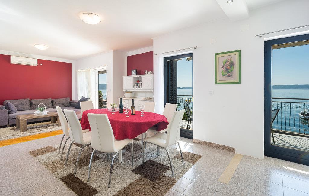 Denne store, komfortable ferielejlighed ligger i Kastel Kambelovac, tæt ved Trogir. Her kommer I til at bo på 1. sal i en lejlighed med god plads til den store familie. I kan se frem til god komfort og flotte indretningsløsninger og en dejlig altan, hvor I kan nyde morgenkaffen. Mellem den indhegnede grund og havet er der kun en skøn promenade, hvor I kan gå ture. Glæd jer også til legepladsen og afslappende stunder i spabadet.