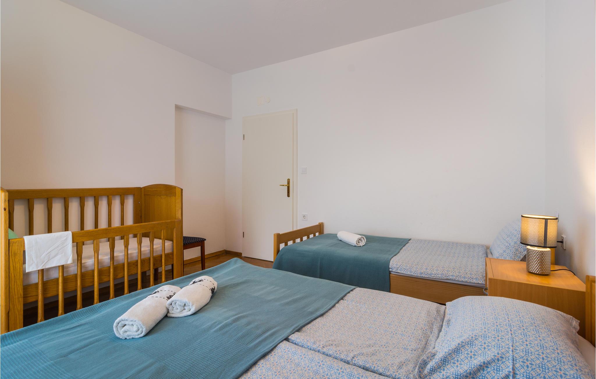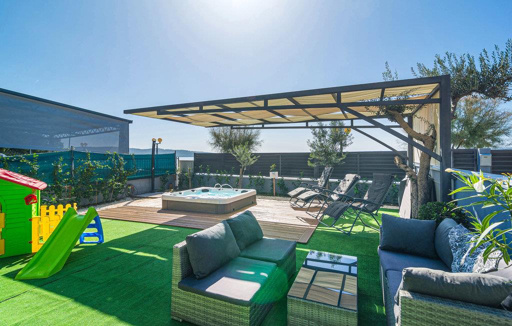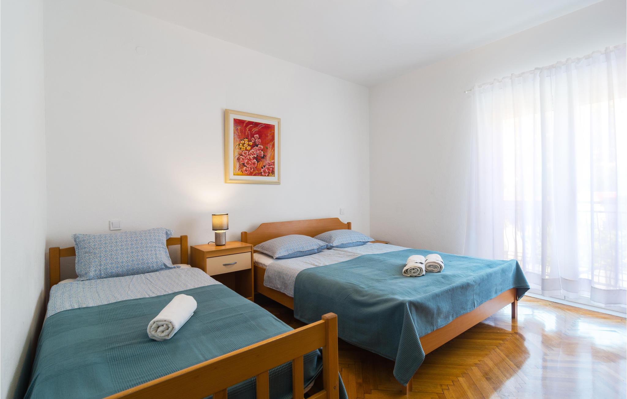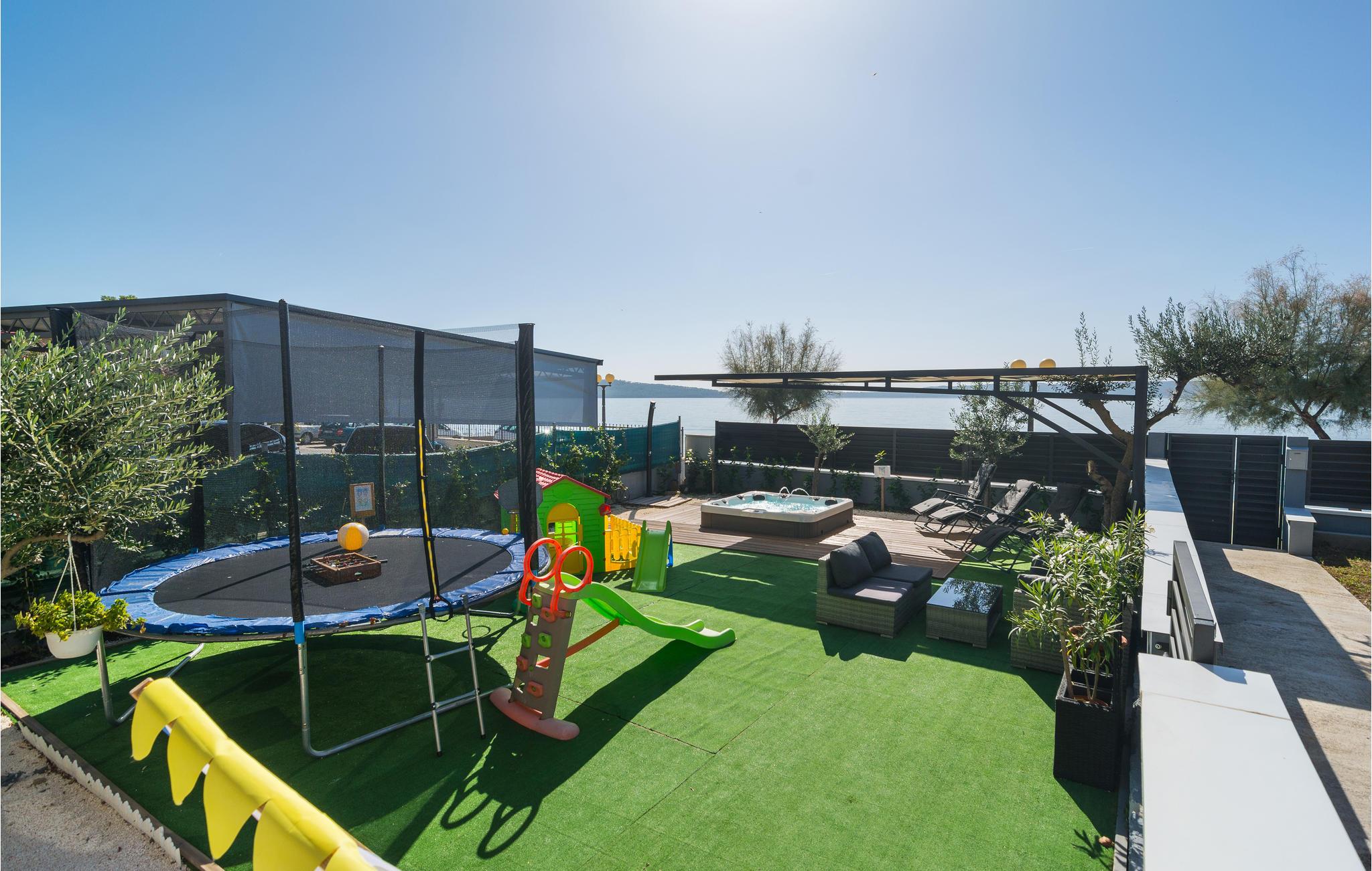 Denne store, komfortable ferielejlighed ligger i Kastel Kambelovac, tæt ved Trogir. Her kommer I til at bo på 1. sal i en lejlighed med god plads til den store familie. I kan se frem til god komfort og flotte indretningsløsninger og en dejlig altan, hvor I kan nyde morgenkaffen. Mellem den indhegnede grund og havet er der kun en skøn promenade, hvor I kan gå ture. Glæd jer også til legepladsen og afslappende stunder i spabadet.