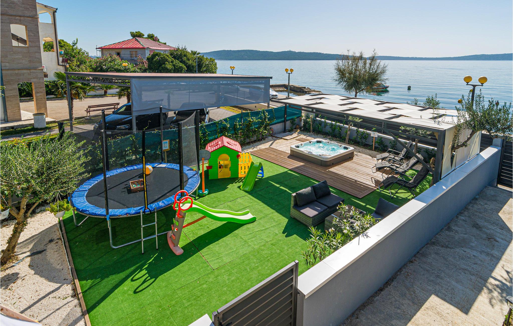 Beliggenheden ved havet er uvurderlig. I bor også tæt på smukke stenstrande, som er velegnede til børn og en lystbådehavn. Huset har desuden en bådplads. I Trogir og Split er der et hyggeligt natteliv samt mange seværdigheder og et bredt udvalg af kulturtilbud.