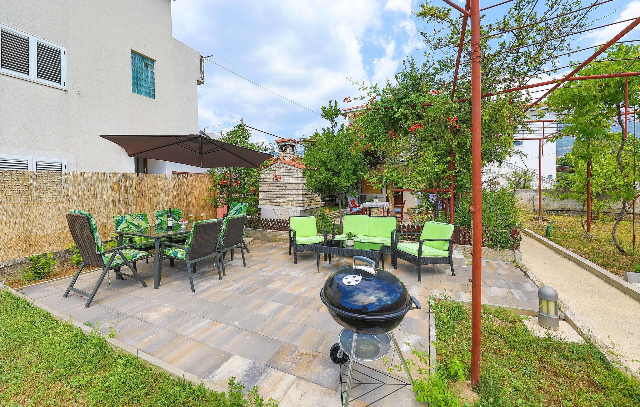 Ferielejligheden er komfortabel og har tre soveværelser, et badeværelse og en dagligstue med køkken og spiseområde, hvorfra der er delvis udsigt til havet og poolen. I ca. 20 minutters afstand ligger poolen og en overdækket terrasse med grill og havemøbler. Udforsk de nærmeste omgivelser og de omkringliggende strande, og smag denne regions traditionelle specialiteter på restauranterne.