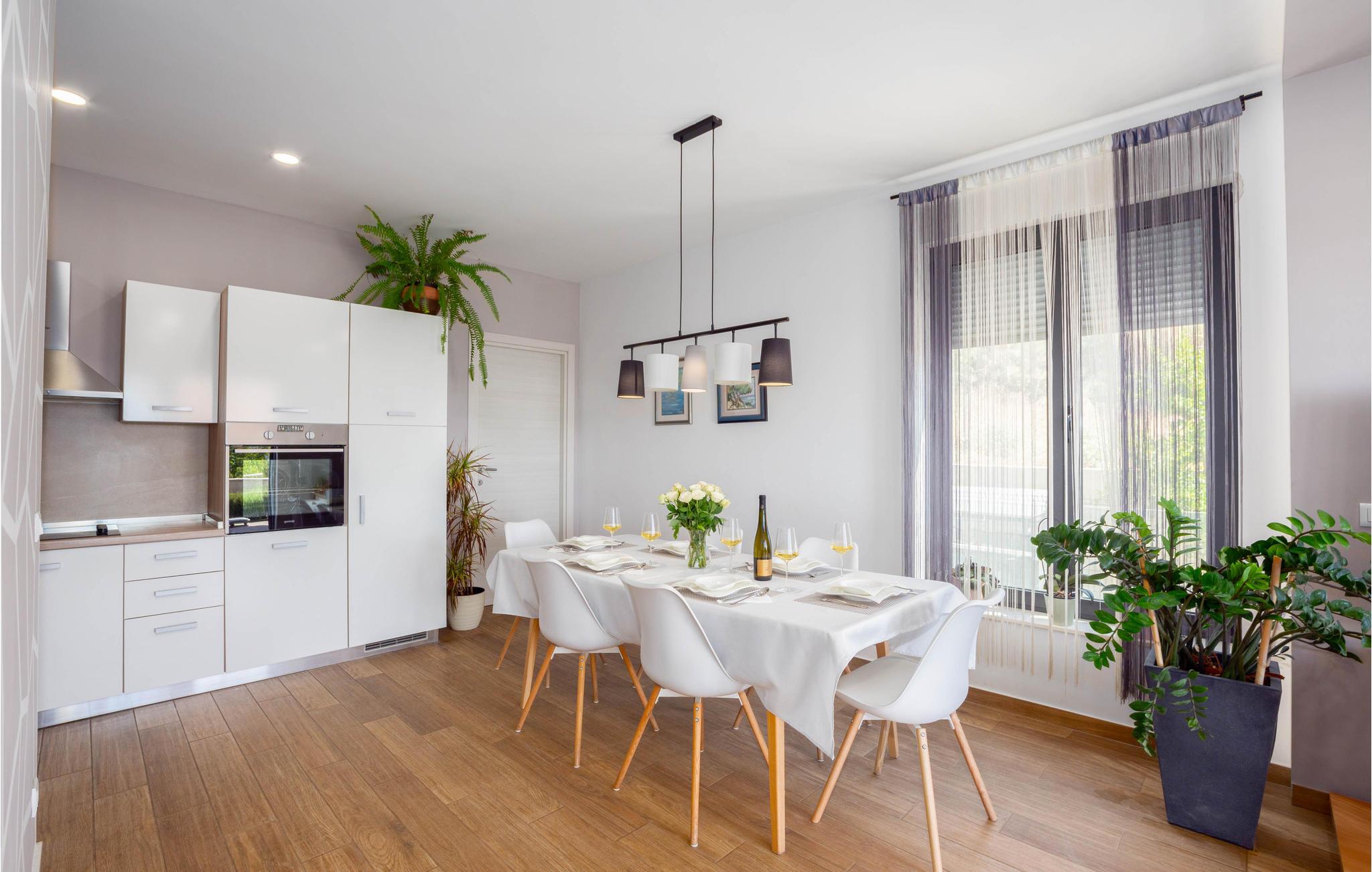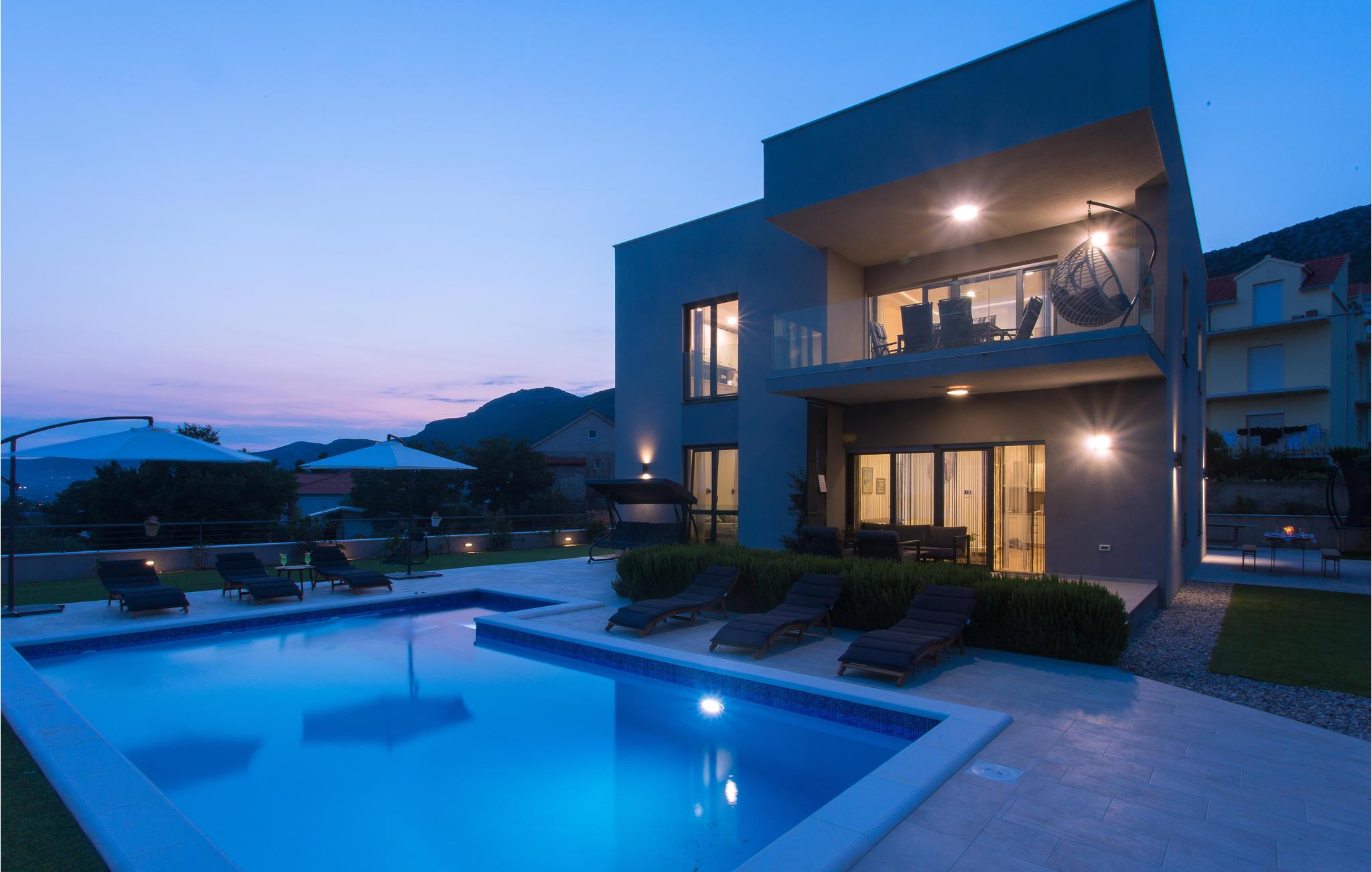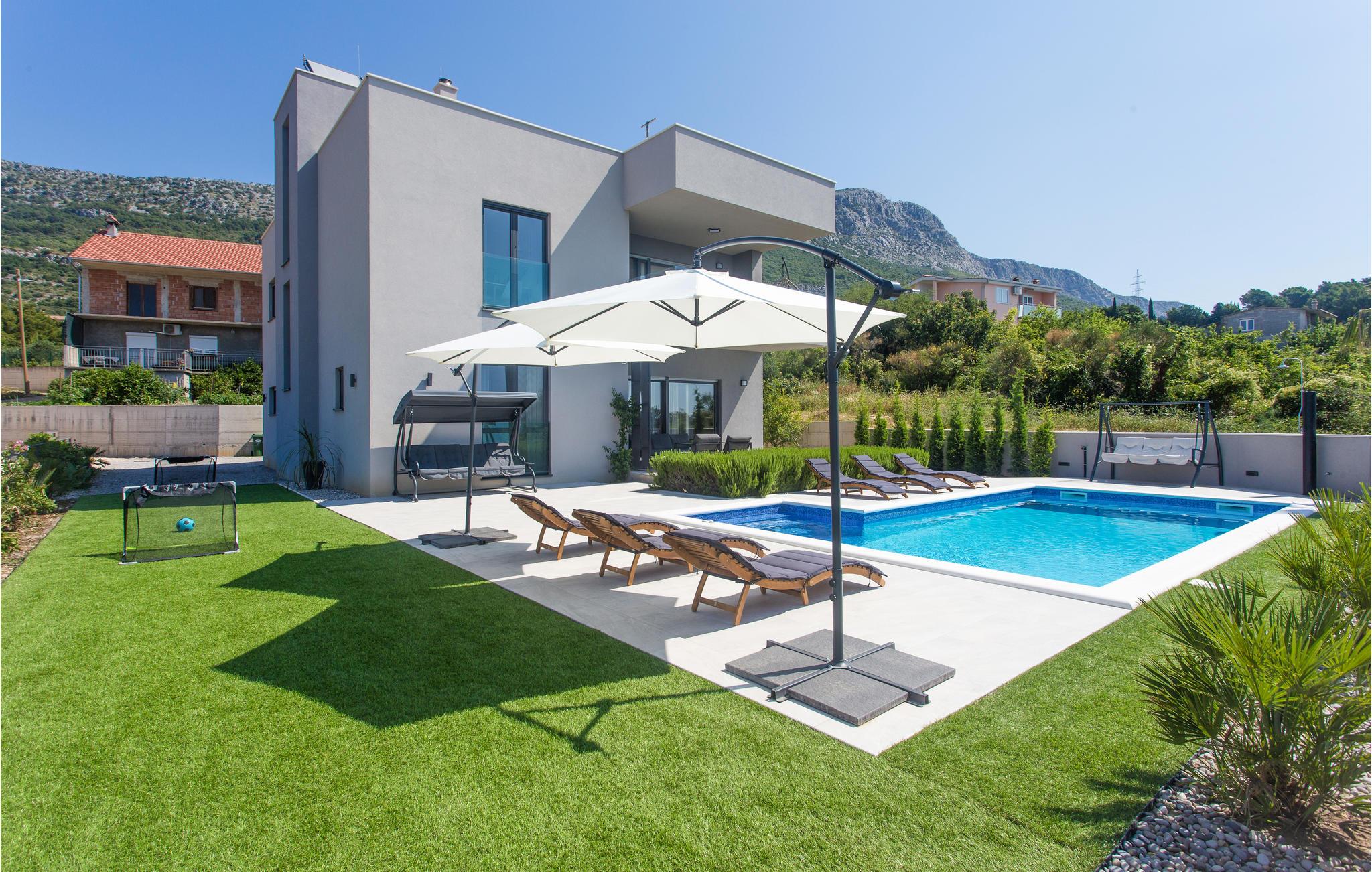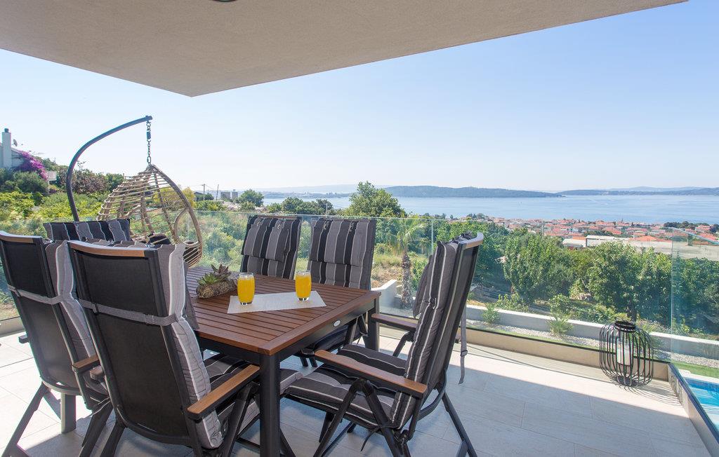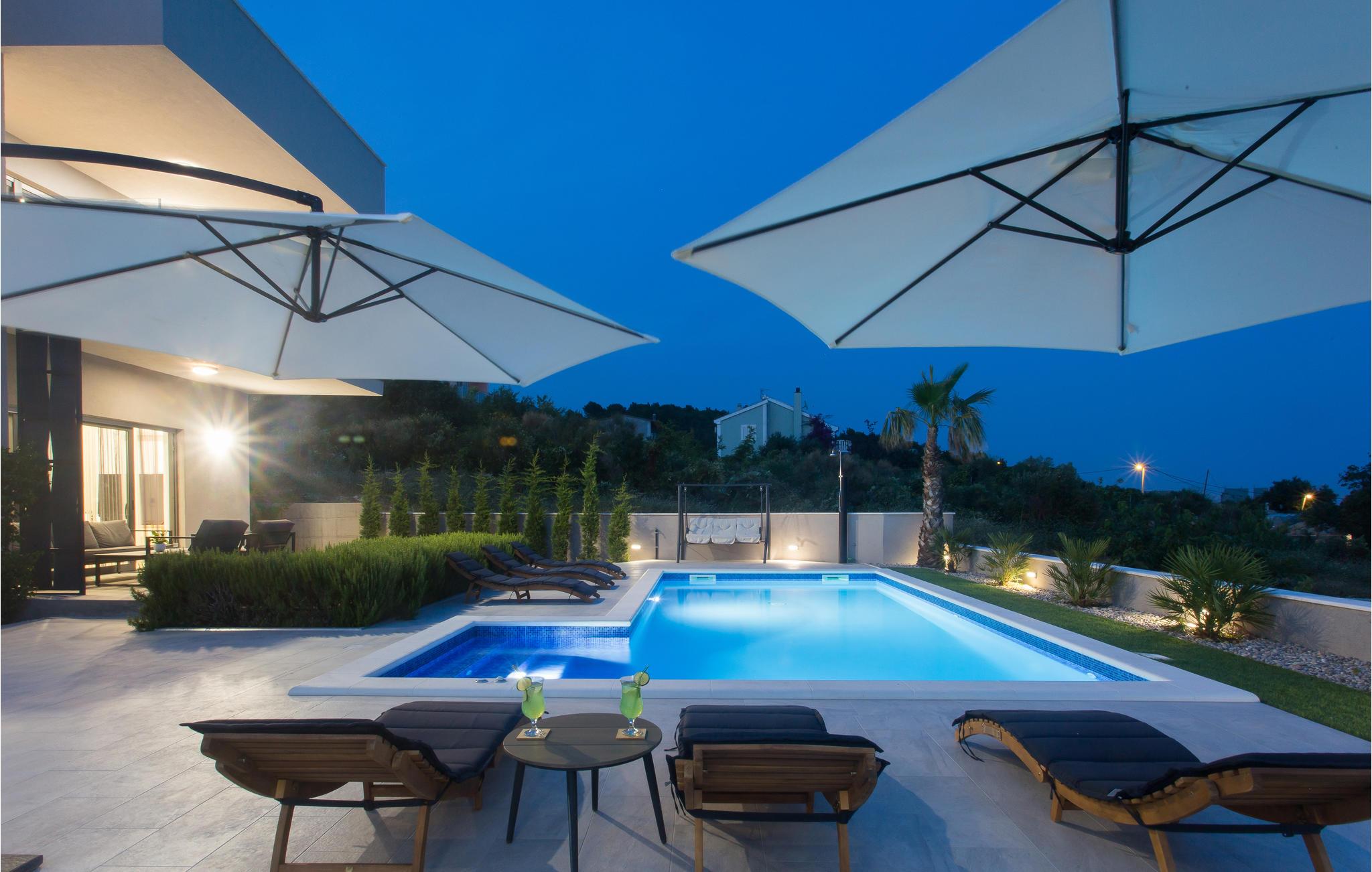 Dette store feriehus byder jer velkommen mellem Trogir og Split. De højkvalitets og smagfuldt indrettede værelser strækker sig over to etager og byder på plads til selv en stor familie eller til flere familier. Her finder I alt hvad I behøver for en vellykket ferie, for huset byder på gode faciliteter for store og små.