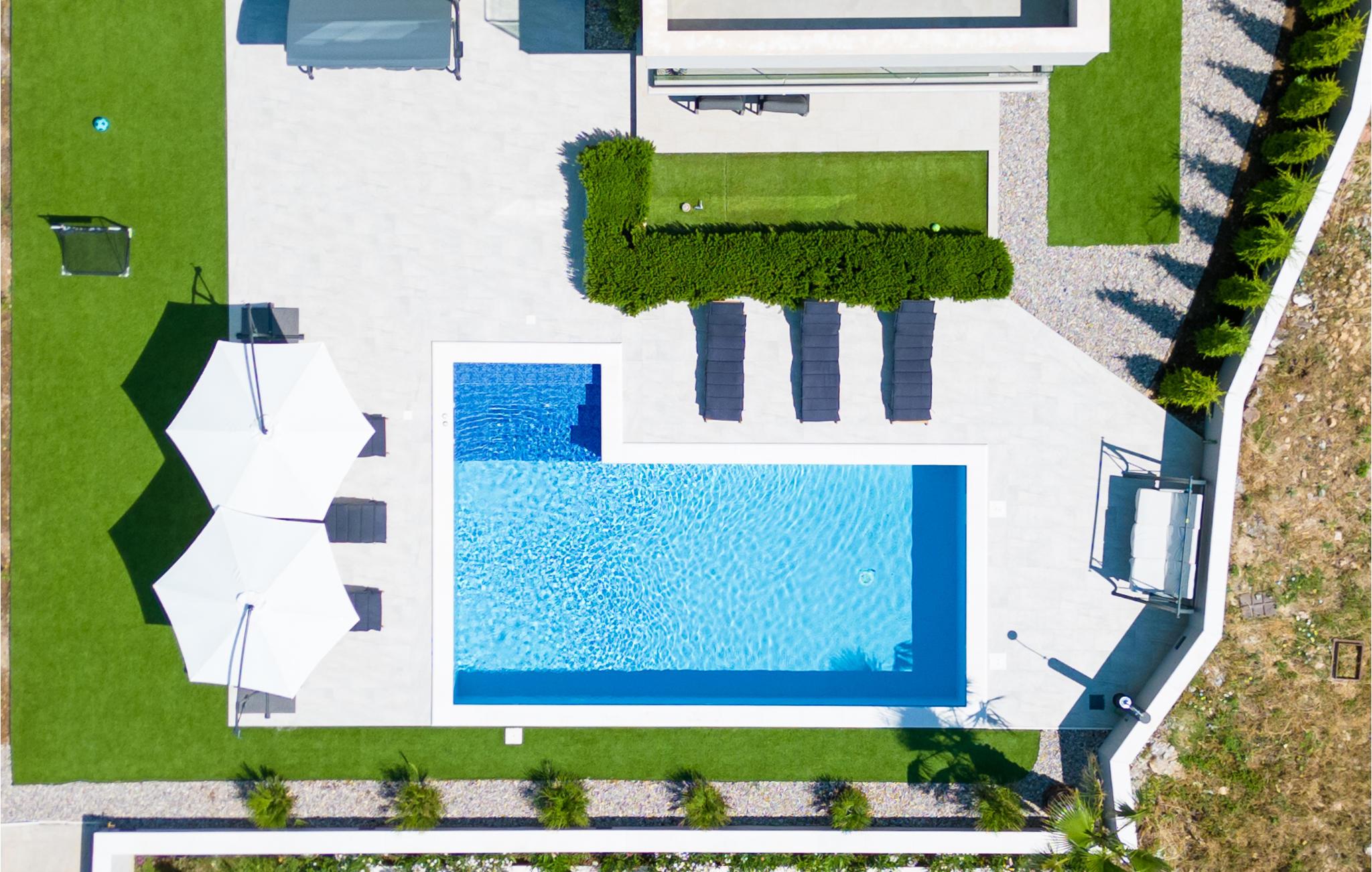 Hop i poolen om morgenen og nyd bagefter en kop kaffe på terrassen. I løbet af dagen kan I slappe af på liggestolene, krølle jer sammen under parasollen med en god roman og imens nyde en omgang dart eller bordtennis. Afslut dagen i godt selskab på den øverste terrasse, hvorfra I allerede kan se havet.