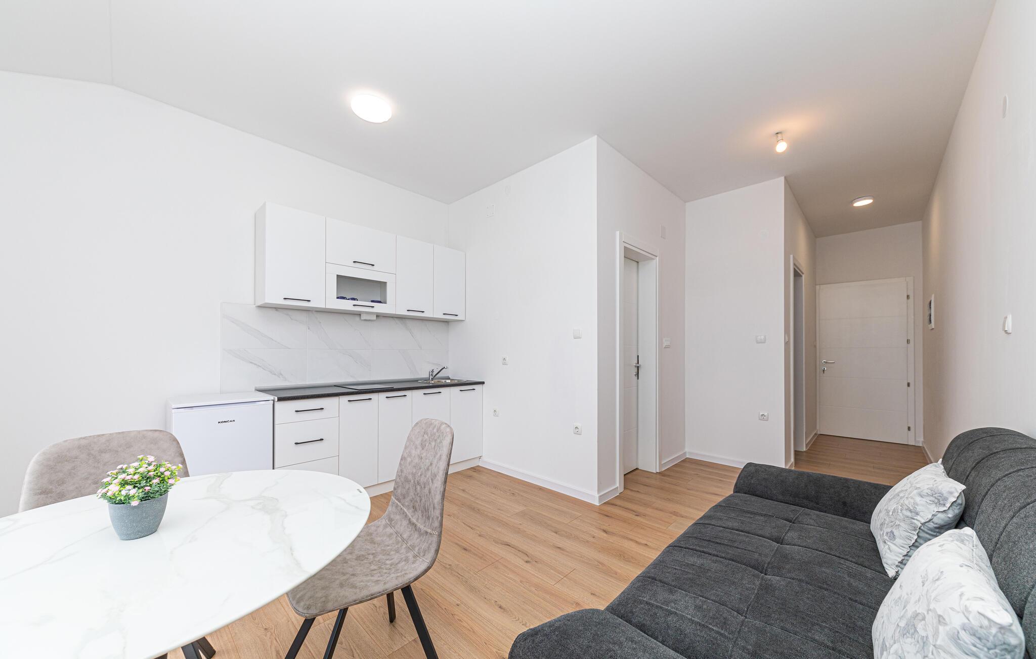 Stranden ligger kun en behagelig gåtur væk, så fyld dagene op med friske dukkerter, solbadning og dejlige gåture langs vandet. Tag en tur til Trogir, gå over broen ind i den gamle bydel, der vidner om denne imponerende bys rige fortid. Oplev de spændende bygninger som Cipiko-paladset, Sveti Petar-kirken og bygningerne på Johannes Paul II-pladsen, inden I forkæler jer selv med en lækker is i varmen.