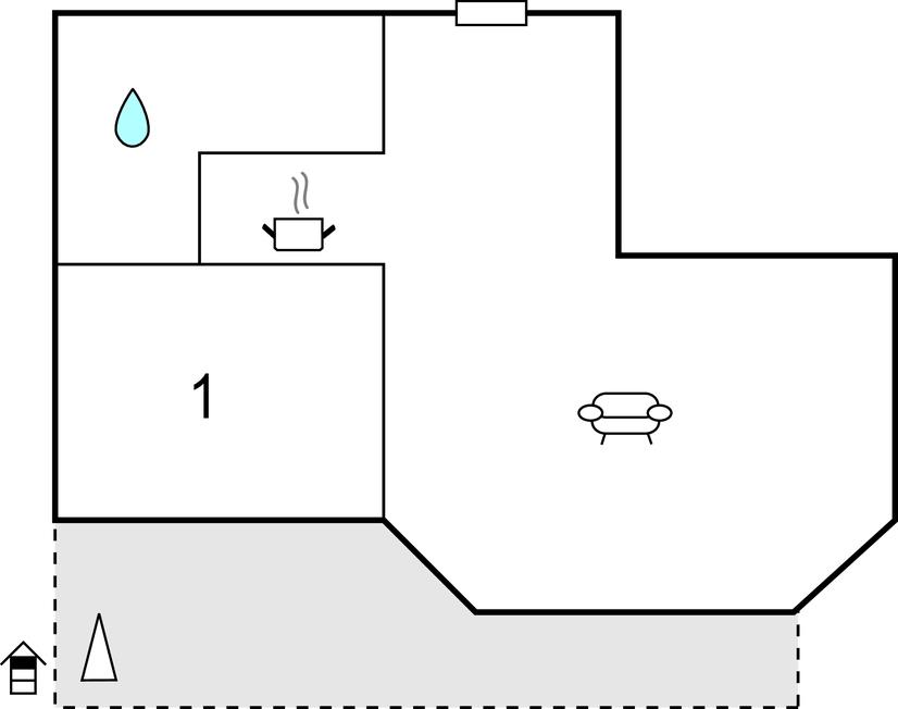 Opholdsstue/køkken 20m2 - 2 Sovepladser. (Sofa, madras eller lignende).