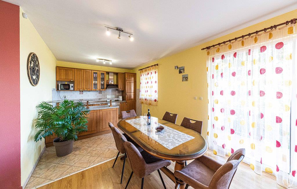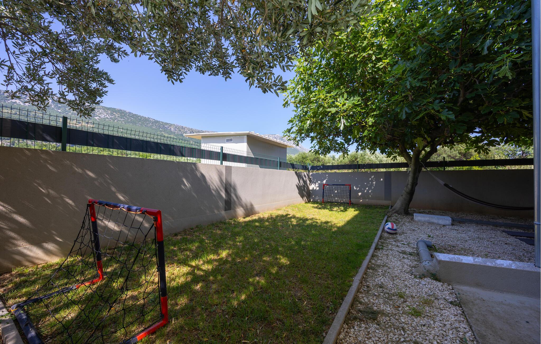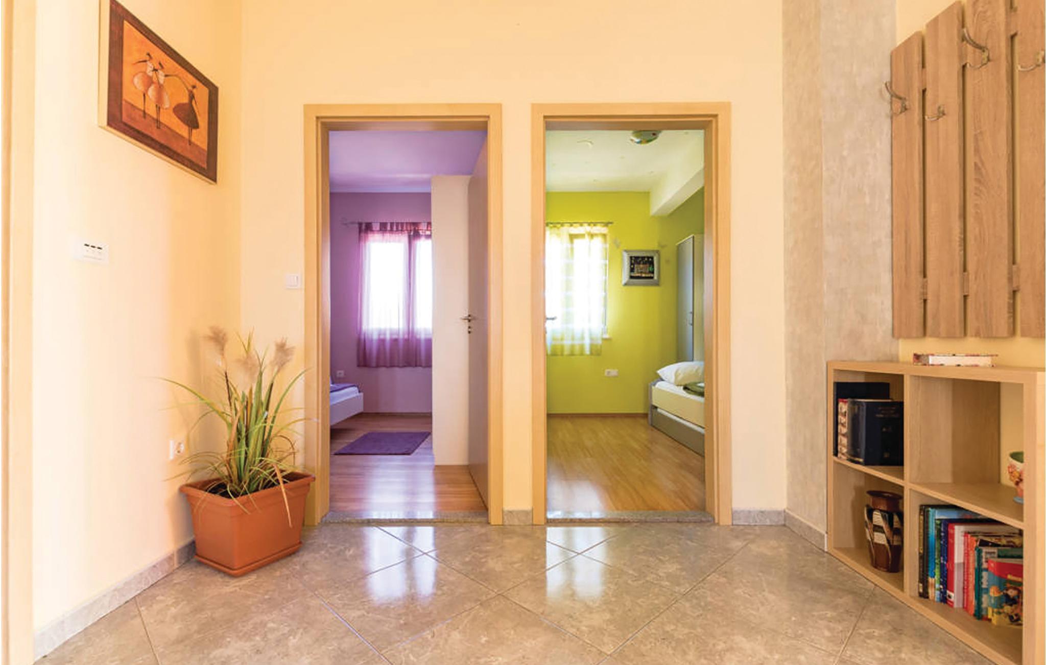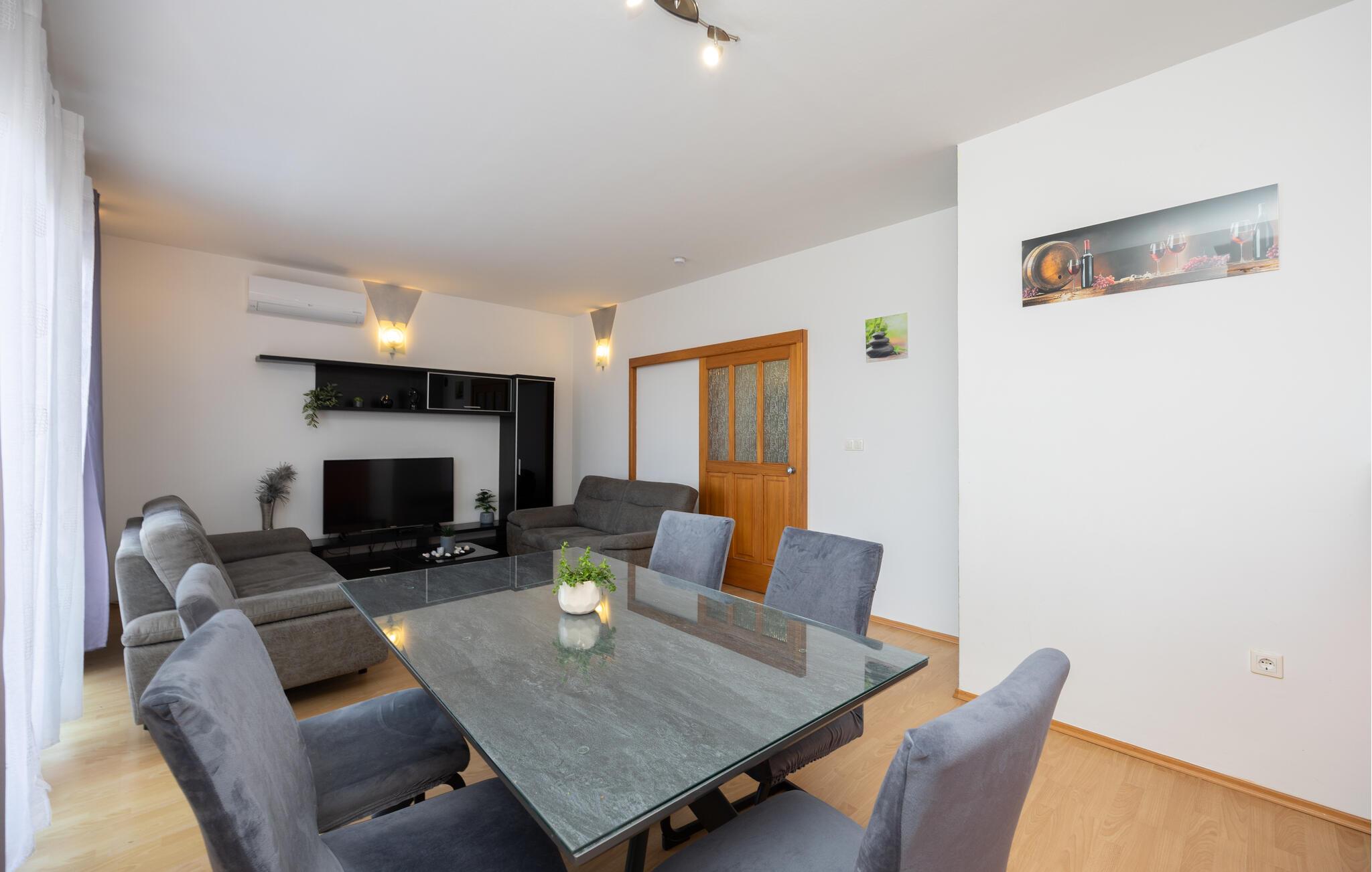 Dette feriehus med pool og dejlig have rummer to lejligheder, der er forbundet med udendørs trapper og er ideel til ferie med to familier. Lejlighederne er ens udstyret og rummer begge tre soveværelser, et badeværelse og en stor stue med åben forbindelse til køkken og med spiseafdeling. Grunden er komplet indhegnet, her kan I trygt lade jeres børn lege og tage en forfriskende svømmetur i poolen sammen. Fra terrassen har i en dejlig udsigt over Kastelbugten, som med garanti vil fæstne sig på nethinden. Der er kun en kort køretur til de historiske byer Trogir og Split.