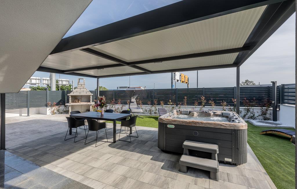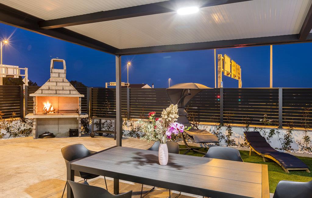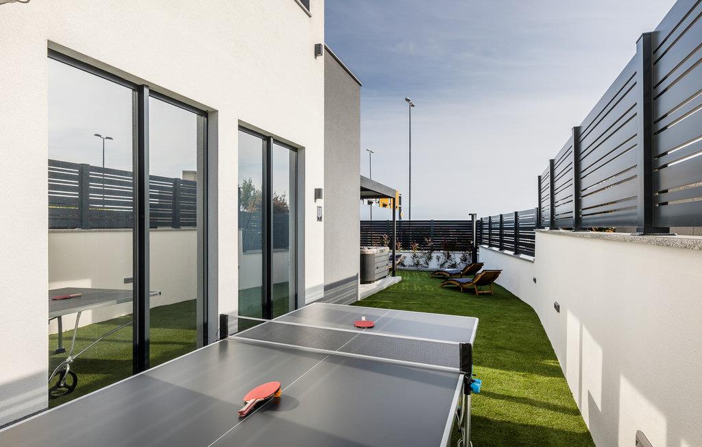 Den kærlige dekoration giver en yderst behagelig atmosfære her. I kan også se frem til jeres egen, private have med en overdækket terrasse, en muret grill og et spabad. Den udendørs bruser er et dejligt sted at køle sig ned efter en intens bordtenniskamp. Glæd jer til nogle dejlige grillaftener, hvor I kan planlægge de kommende dage.