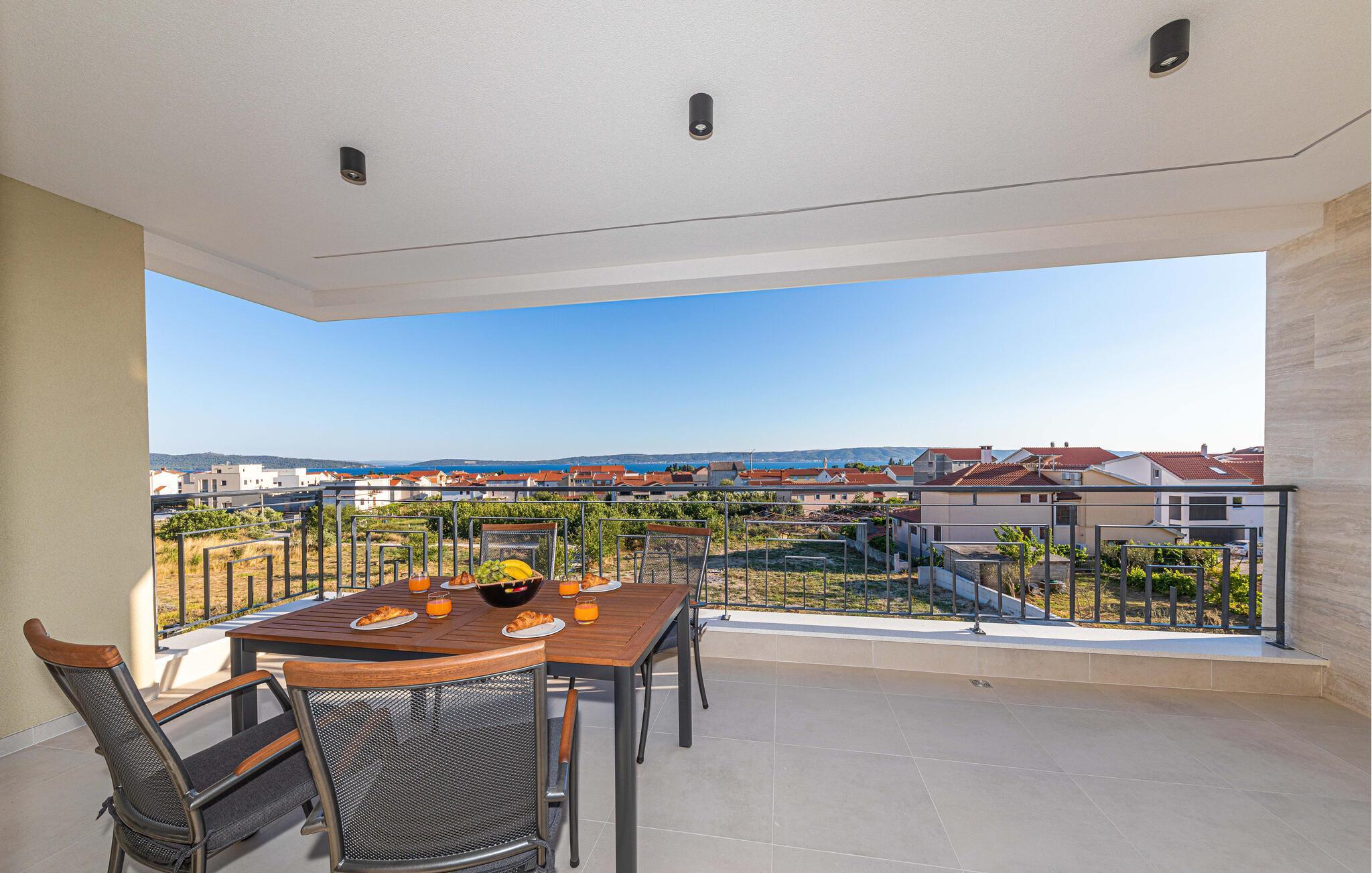 Nyd en velfortjent pause i dette smukke og komfortable feriehus med havudsigt. I dette rummelige og moderne feriehus i Kastel Luksic vil I opleve en ferie på højt niveau. De lyse værelser strækker sig over to etager og tilbyder jer en stilfuld, hyggelig atmosfære. Smagfuldt udvalgte møbler skaber en hjemlig følelse, optimal til flere familier, der rejser sammen, men stadig leder efter masser af plads til privatliv. To stuer tilbyder jer en opdeling i forældre og børn og lover jer underholdning, mens I laver mad, chatter eller ser film om aftenen. Nyd solskinstimerne ved og i den store pool eller slap af på tagterrassen med en vidunderlig udsigt over byen og havet - hvert øjeblik vil være specielt her. Kastel Luksic tilbyder den perfekte blanding af afslapning og aktivitet. Kun en kort gåtur fra feriehuset kan I nå havet og de maleriske strande. området lægger op til at udforske, hvad enten det er til fods, på cykel eller med båd. Den historiske gamle bydel i Trogir, som er på UNESCOs verdensarvsliste, ligger også i nærheden og byder på kulturelle højdepunkter. I vil også finde fremragende restauranter, der serverer traditionelle dalmatiske retter og adskillige fritidsmuligheder for at diversificere jeres ferie.