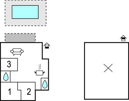 Badeværelse 3m2 (nr. 1) - WC. Varmt og koldt vand. Bruser