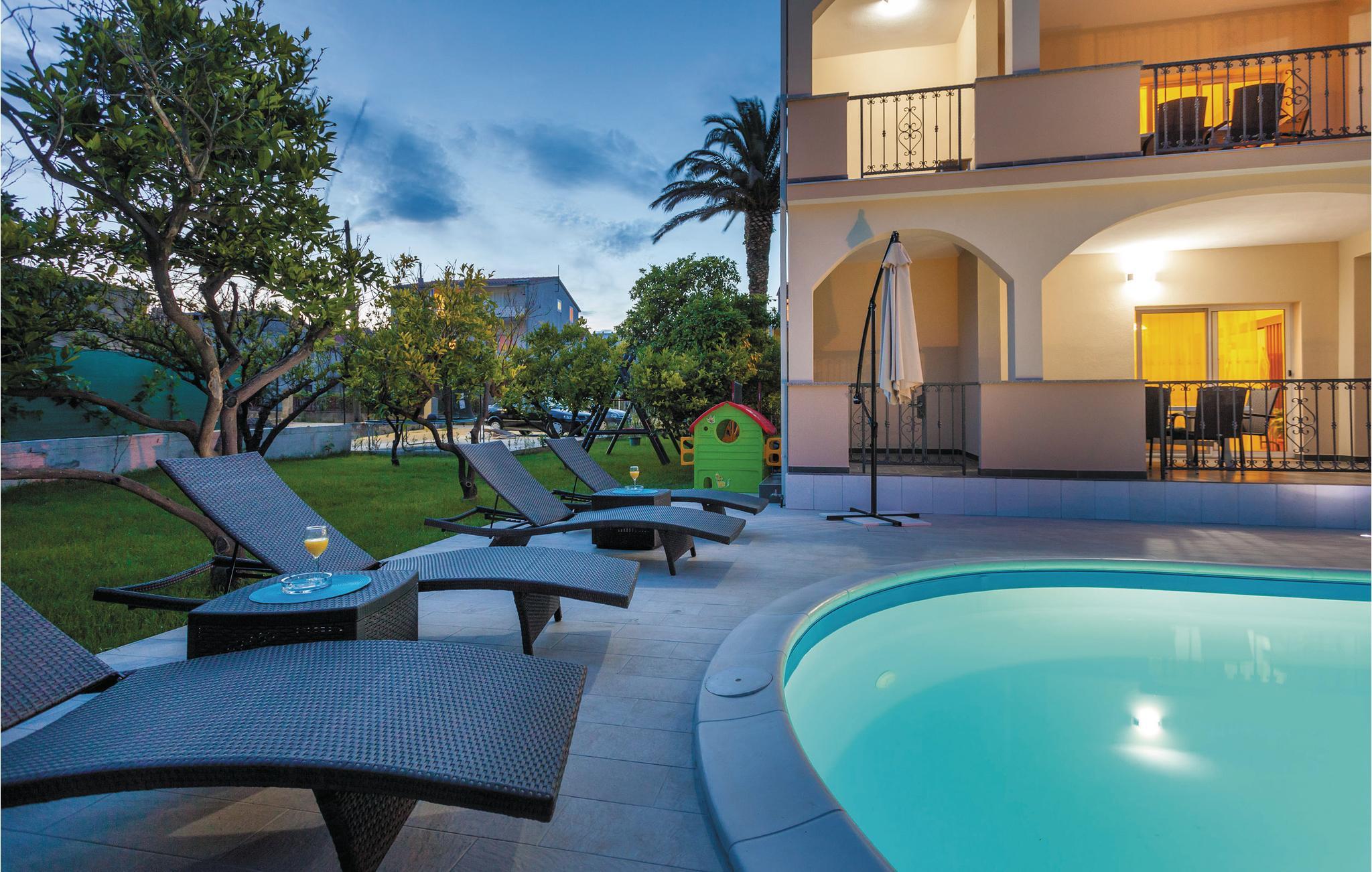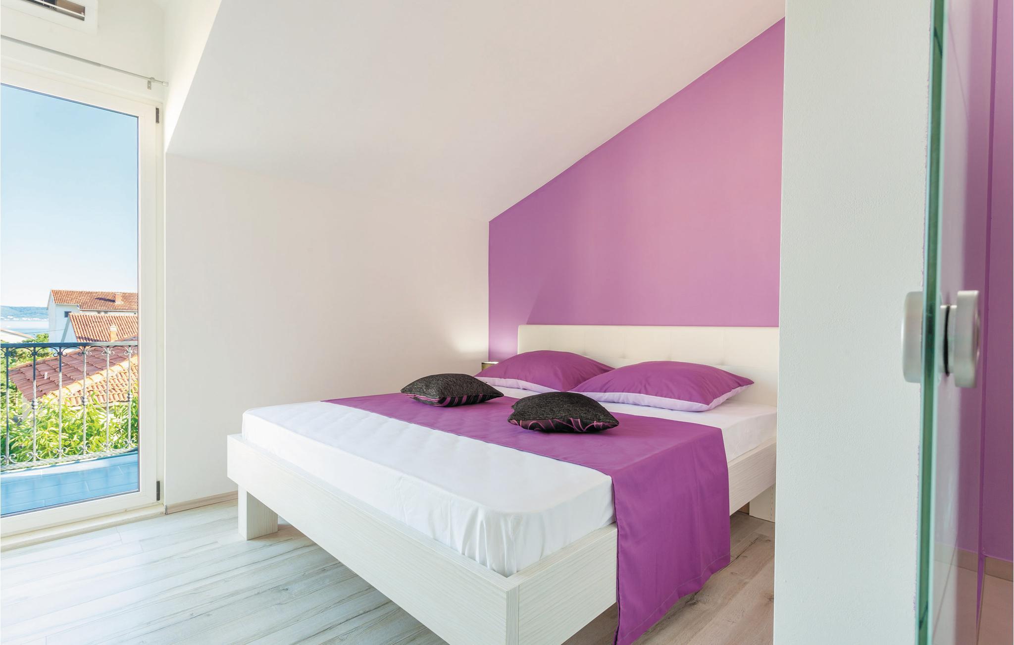 Hold jeres ferie i en af fire ferielejligheder med adgang til en fælles swimmingpool. CDE455 rummer to lejligheder og to yderligere soveværelser, med skrå vægge. Huset ligger i Kastel Stafilic, kun ca. 2 km fra Trogirs gamle bydel som er med på Unescos kulturarvsliste. På grunden er der et havehus, et udendørs køkken, grill og legeplads til de mindste. I huset er der også underholdningsmuligheder som billard, bordtennis, dart og fitnessudstyr, det hele til fælles brug for alle gæster. En glimrende feriebolig til jer der rejser rigtig mange sammen. Herfra er det oplagt at besøge Split med en vidunderlige gammel bydel, som bestemt er oplagt til en dagsudflugt.