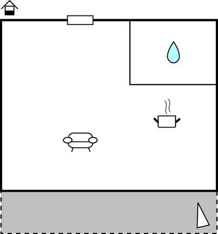 Opholdsstue/køkken 25m2 - 2 Sovepladser. (Dobbeltseng(e)).