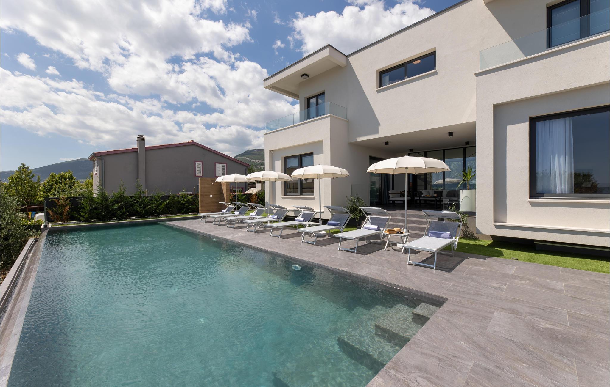 Velkommen til dette attraktive og yderst komfortable hus, som tilbyder jer de ideelle rammer for en afslappende ferie i attraktive omgivelser. Nyd en afslappende tid med familien i huset, som er noget særligt med sin moderne og smagfulde indretning samt komfortable møbler. Efter aktive dage kan I nyde hyggelige aftener med spil og gode samtaler ved det lange spisebord og slappe af i husets sauna. Flere terrasser lægger op til fuldt ud at nyde solen og udsigten til den omkringliggende natur. Så snart I vågner, gå udenfor og lad jeres blik vandre over havet. Slap af på en lænestol ved poolen og forkæl hele familien med middag under åben himmel. Gå en tur til stranden eller tag en tur til Trogir, gå over broen ind i den gamle bydel og udforsk monumenterne, der vidner om denne imponerende bys rige fortid, herunder Cipiko-paladset, Sveti Petar-kirken og bygningerne på pladsen Johannes Paul II Glæd jer til en afslappende ferie i dette attraktive feriehus med en smuk beliggenhed. Bemærk: Grupper af unge voksne (under 25 år) er ikke tilladt i villaen.