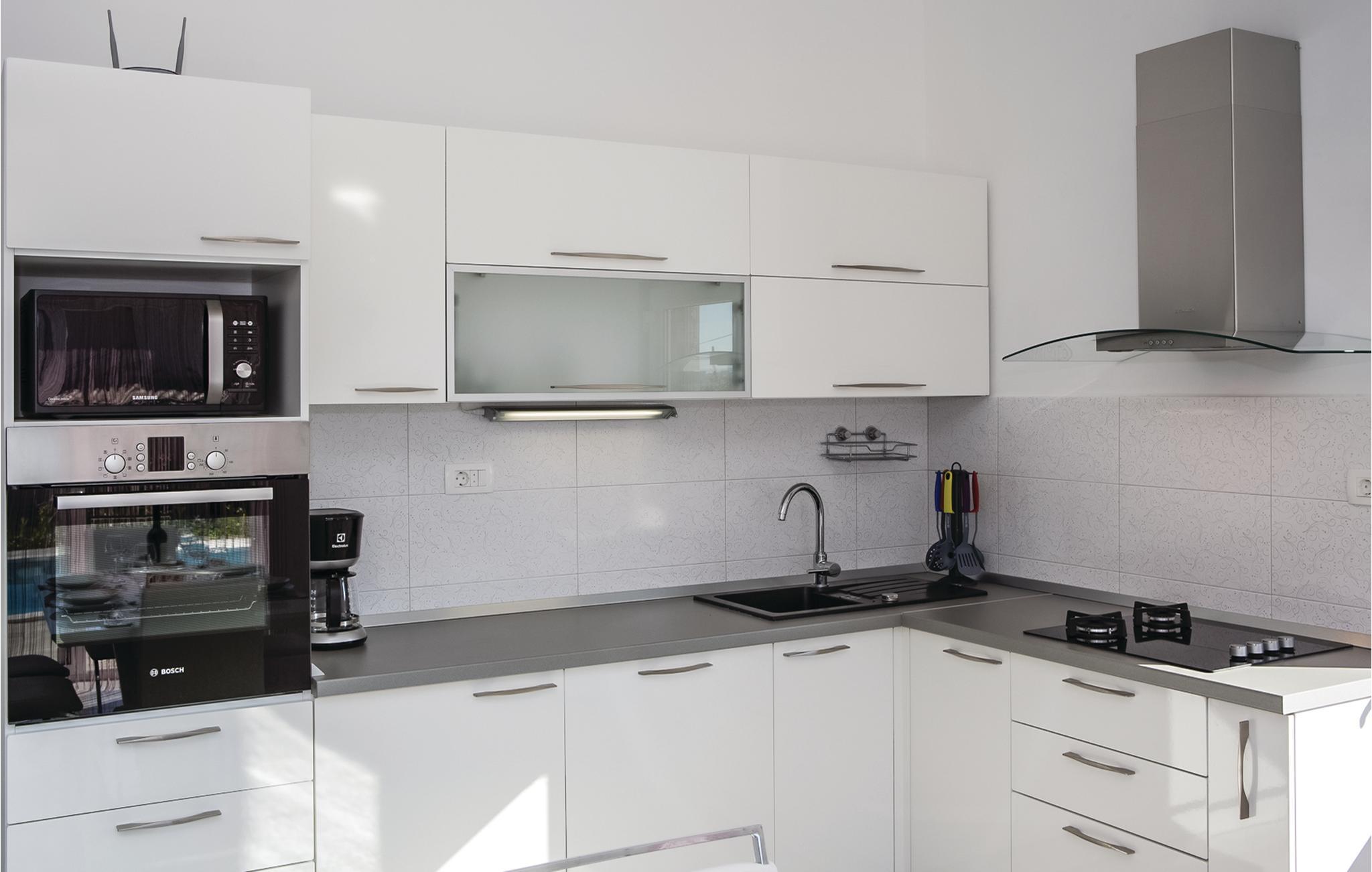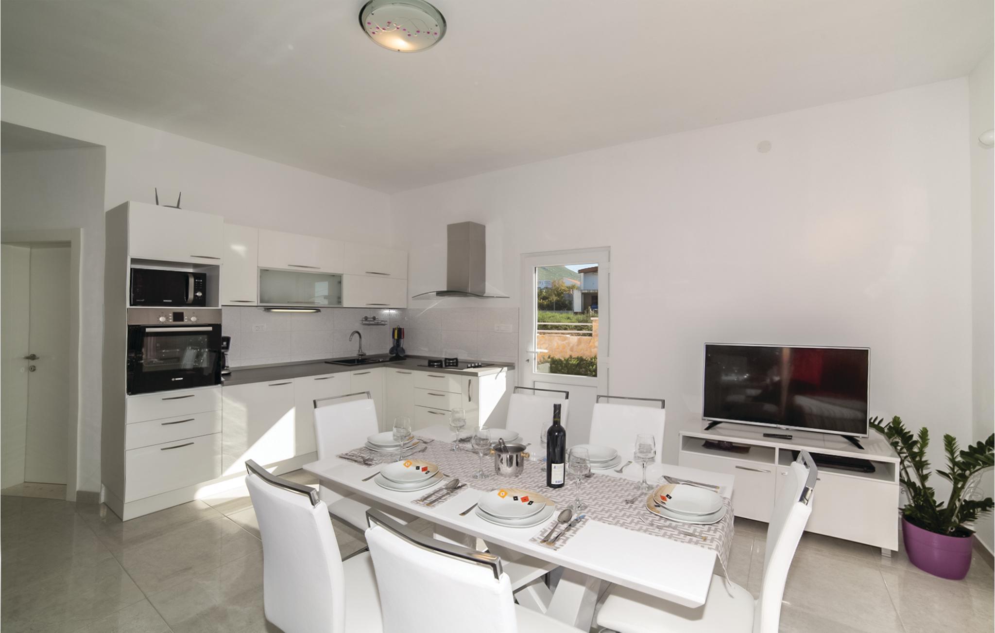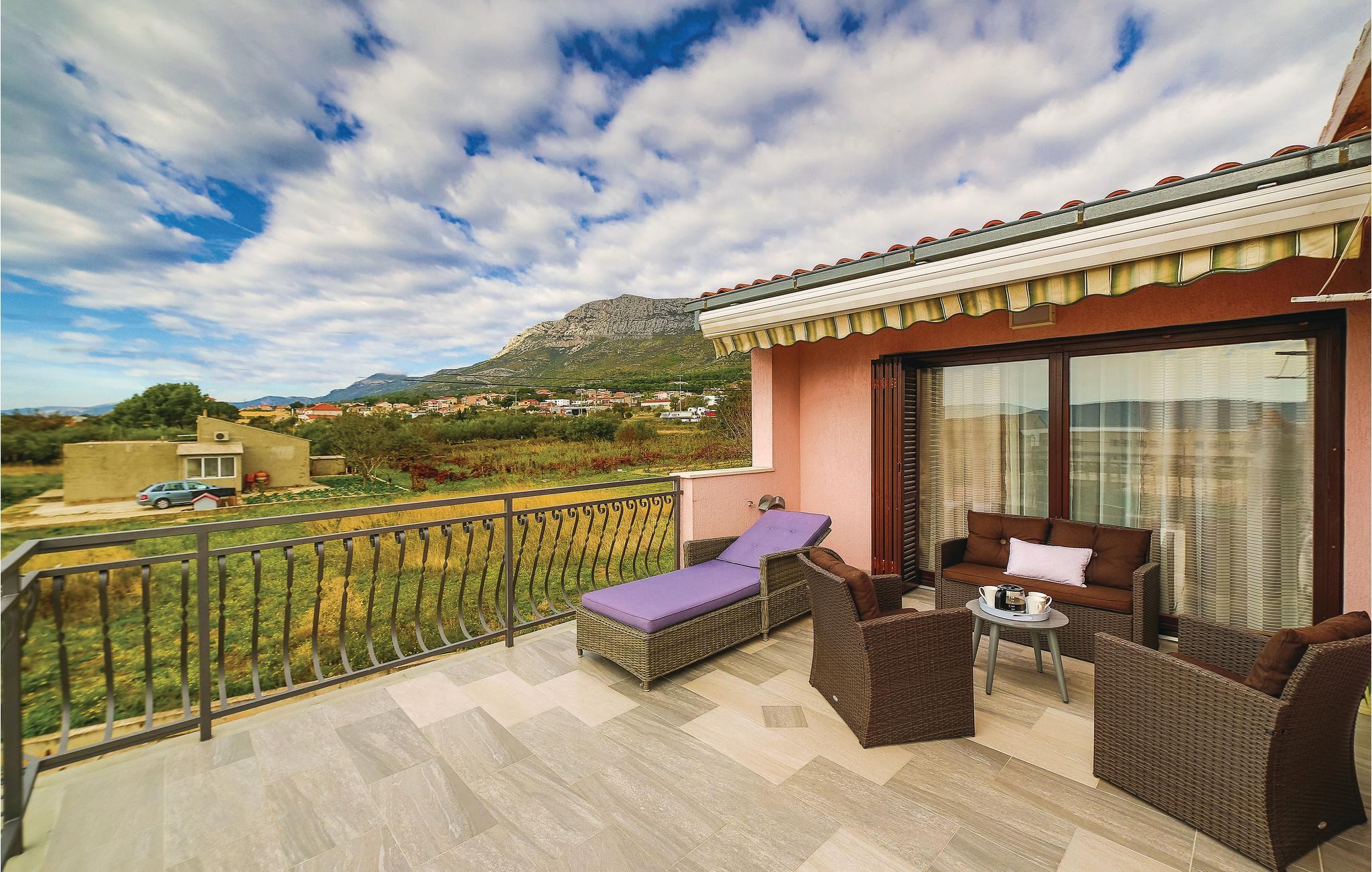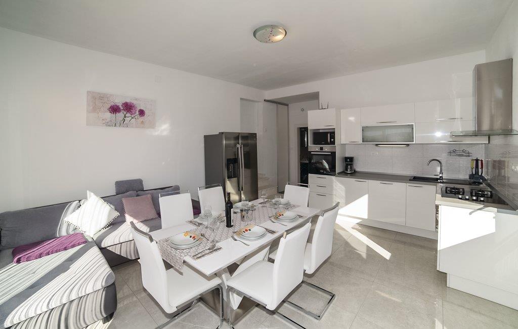 Dette charmerende feriehus med pool og velplejet have består af to dejligt indrettede lejligheder med terrasser. Fra rummene i stueetagen kommer I direkte ud til poolen, til terrassen med grillplads og til haven. I haven bliver der dyrket sæsonens lækre grøntsager. Trænger I til lidt motion, er der desuden et badmintonnet og et bordtennisbord. På grund af den nærliggende gade og gode togforbindelser er det meget nemt at komme til byerne Split og Trogir. Her kan I finde et stort tilbud af spændende fritidsaktiviteter. To af husets fire parkeringspladser er overdækket.