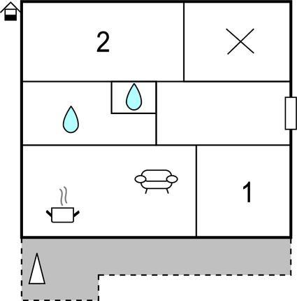 Opholdsstue/køkken - 1 Soveplads. (Sofa, madras eller lignende).