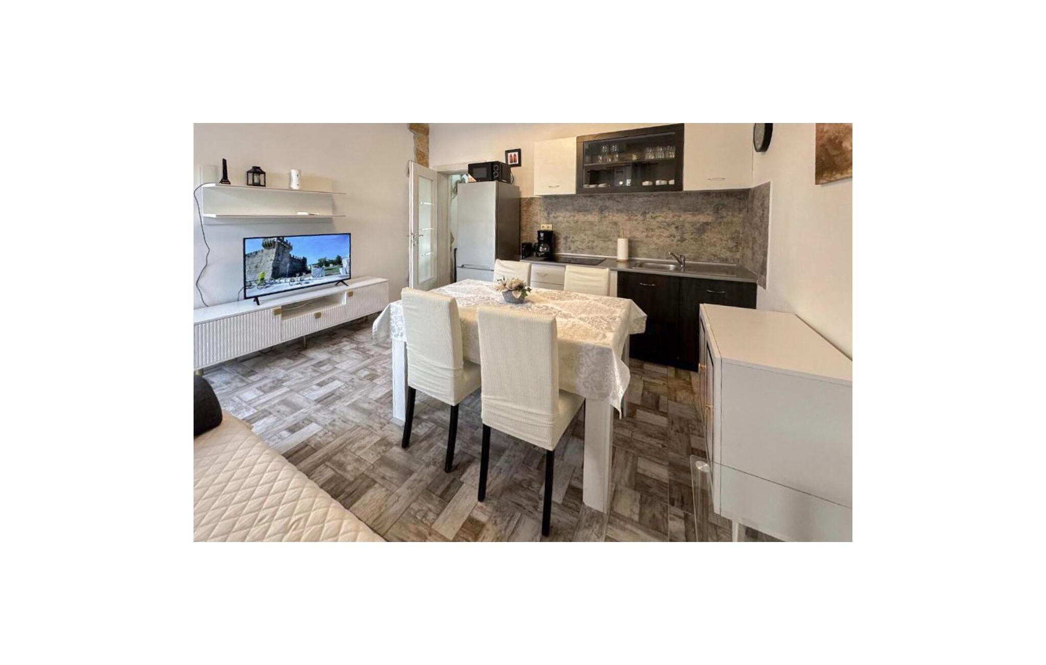 Denne moderne og komfortable ferielejlighed byder jer velkommen kun få skridt fra havet og giver jer mulighed for at udforske den maleriske ø under en afslappende strandferie. Her kan I trylle middelhavsretter frem lavet med lokale råvarer og planlægge jeres aktiviteter ved det indbydende spisebord. Slap af efter en lang dag med en spilleaften eller stream en god serie.