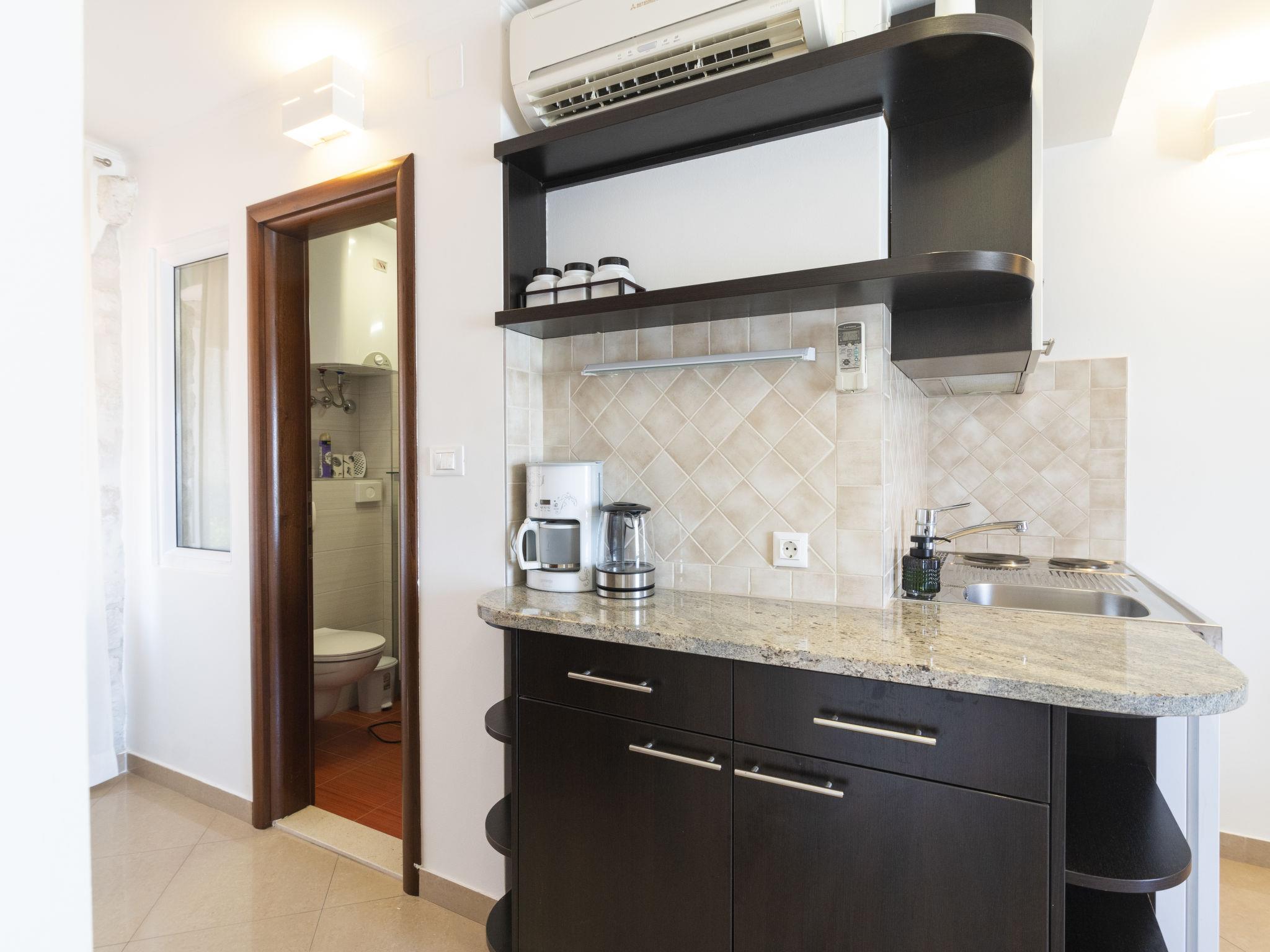 1-room apartment 20 m2 on 1st floor. Studio with 1 french bed (160 cm, length 200 cm), dining table and satellite TV (flat screen), air conditioning. Open kitchen (2 hot plates, kettle, electric coffee machine). Shower/WC. Facilities: Internet (WiFi, free).