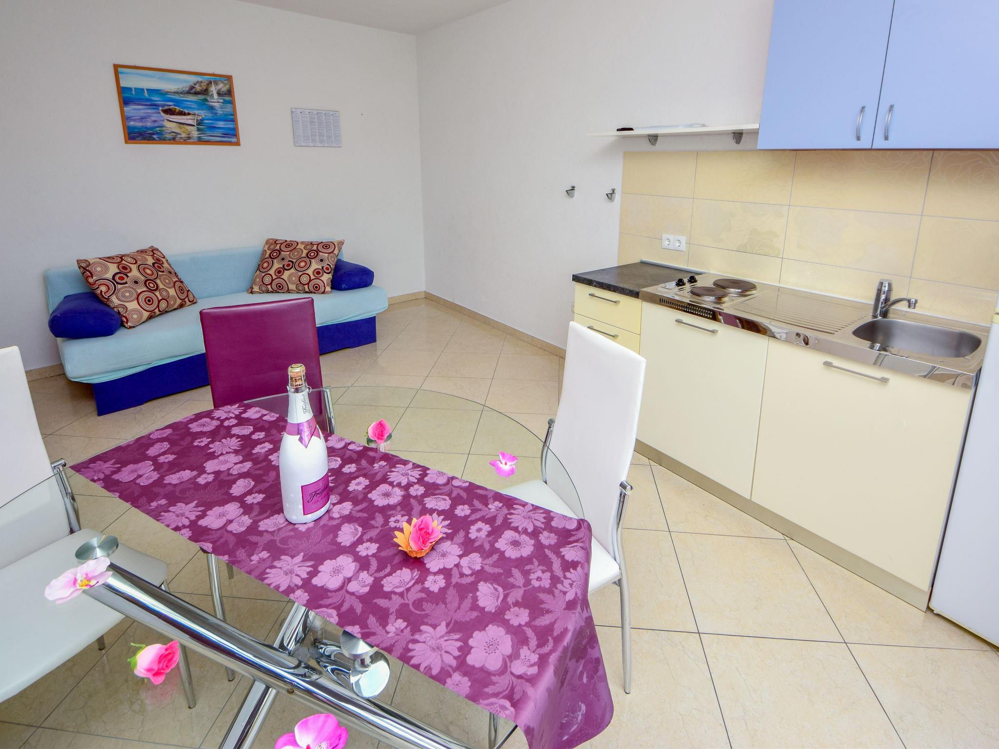 2-room apartment 45 m2 on 1st floor, north facing position. Living/dining room with 1 double sofabed (140 cm, length 200 cm), cable TV and air conditioning. Exit to the terrace. 1 room with 1 french bed (160 cm, length 200 cm). Open kitchen (2 hot plates, microwave, freezer). Shower/WC. Air-conditioning (extra). Terrace 4 m2. Terrace furniture. Marvellous view of the sea. Facilities: Internet (WiFi, free).