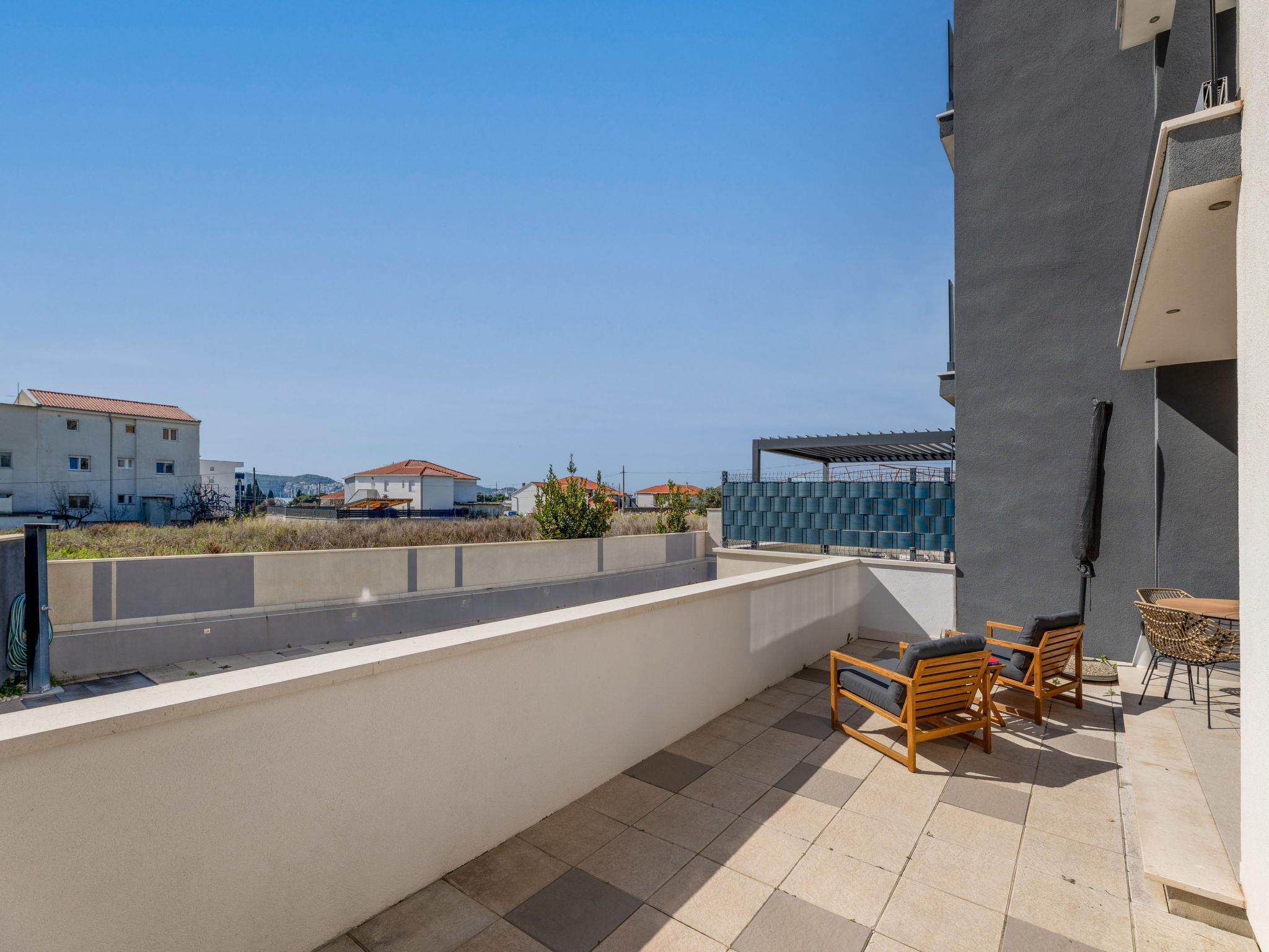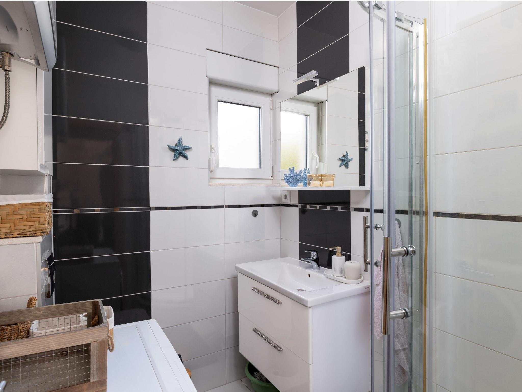 Seget Donji: Residence, 3 storeys. 1.3 km from the centre of Trogir, in a sunny position in the residential district, 800 m from the sea, 1 km from the beach. For shared use: swimming pool angular (50 m2, depth 150 cm, seasonal availability: 01.Jun. - 01.Oct.) with internal staircase. In the house: internet access. Parking space n 1 at the house on the premises. Shop, restaurant 500 m, bus stop 1 km, pebble beach 1 km. Marina 500 m. Please note: airfield 7 km from the property.