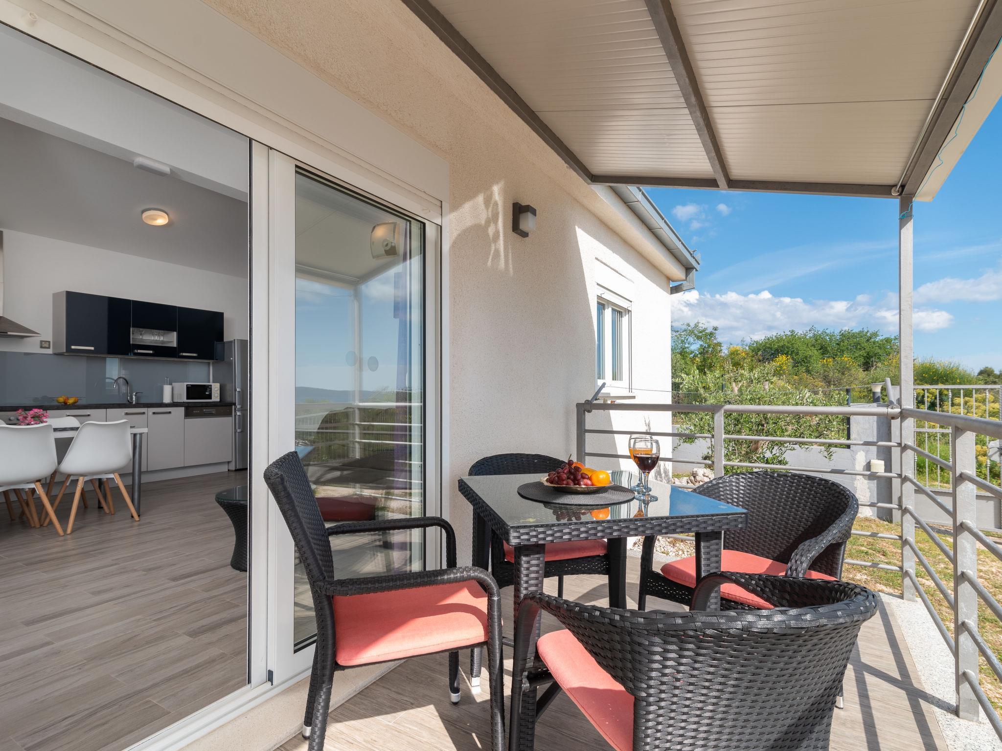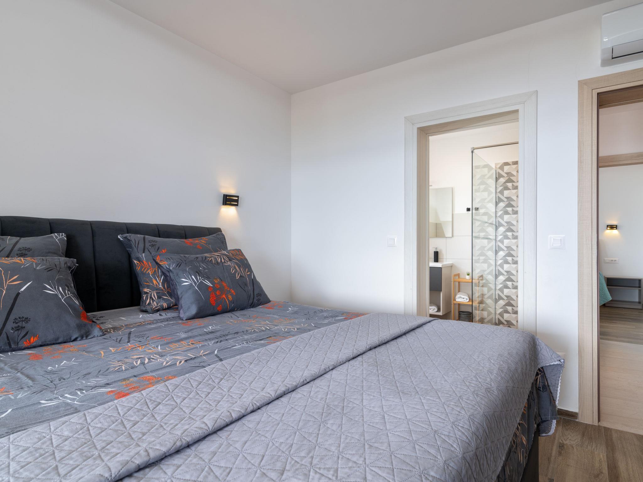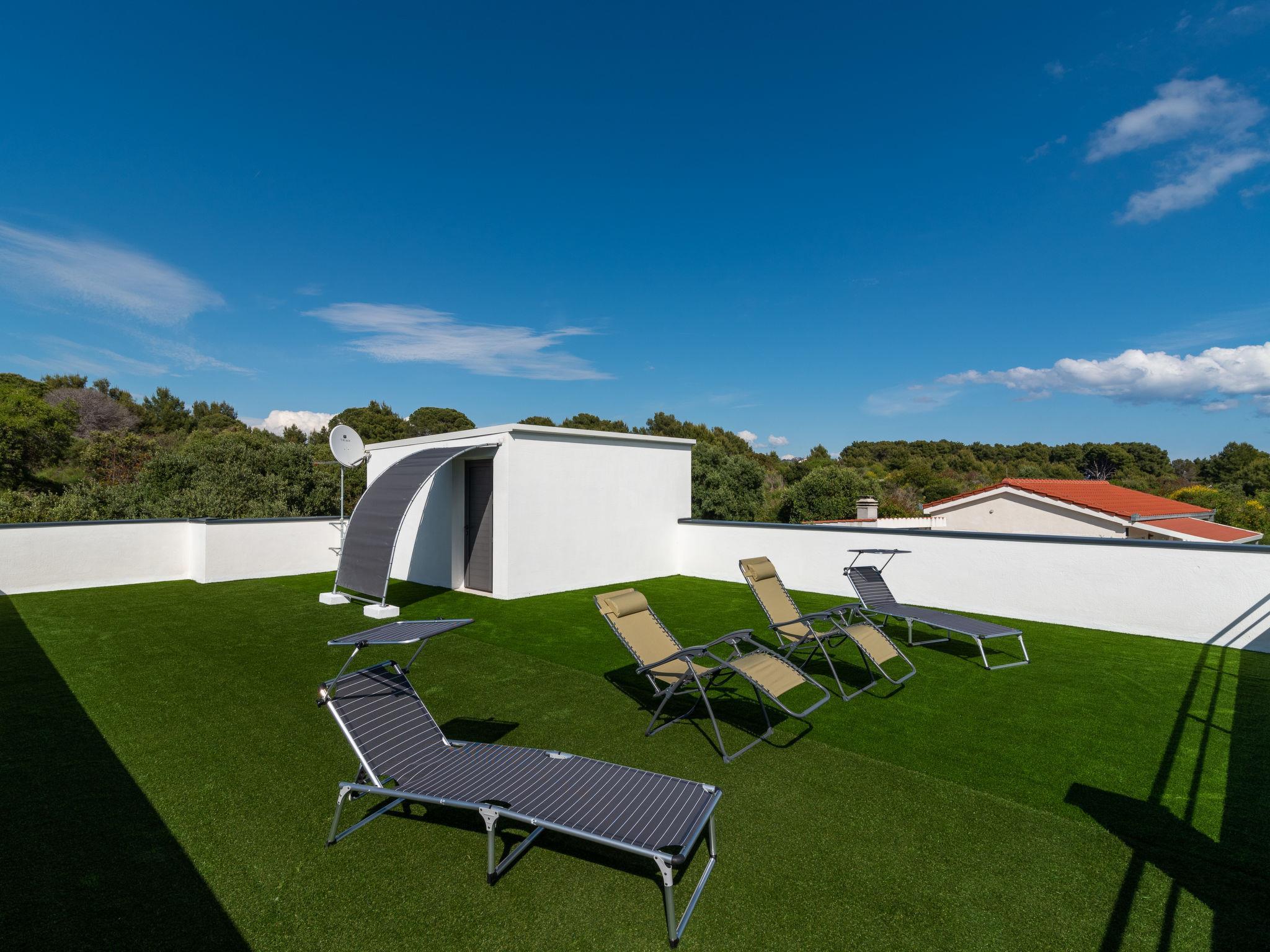 6-room house 145 m2. Modern furnishings: living/dining room with 1 sofabed, kitchen corner and satellite TV (flat screen), air conditioning. Exit to the terrace. 1 room with 1 double bed. 1 room with 2 beds. Living/dining room with 1 double sofabed (140 cm, length 220 cm), satellite TV and air conditioning. Exit to the terrace. 1 room with 1 french bed (180 cm, length 200 cm), shower/WC and air conditioning. Exit to the terrace. 1 room with 1 french bed (180 cm, length 200 cm), shower/WC and air conditioning. Open kitchen (oven, dishwasher, 4 ceramic glass hob hotplates, toaster, kettle, freezer, electric coffee machine). Shower/WC, sep. WC. No heating option. Terrace 16 m2, roofed, terrace 35 m2, roofed. Terrace furniture, deck chairs. Panoramic view of the sea. Facilities: safe, mosquito net. Internet (WiFi, free). Each house with living/dining area, open kitchen and 2 bedrooms.