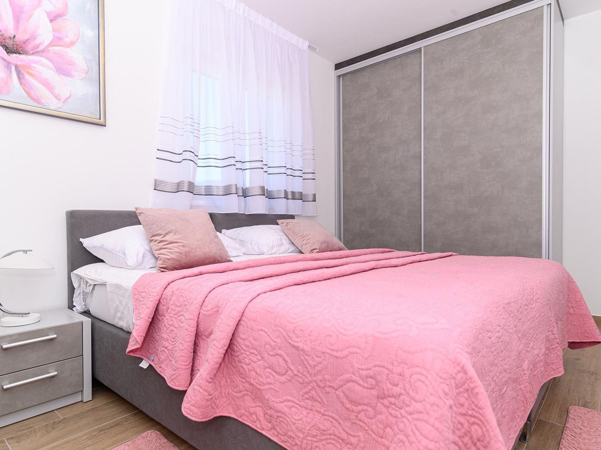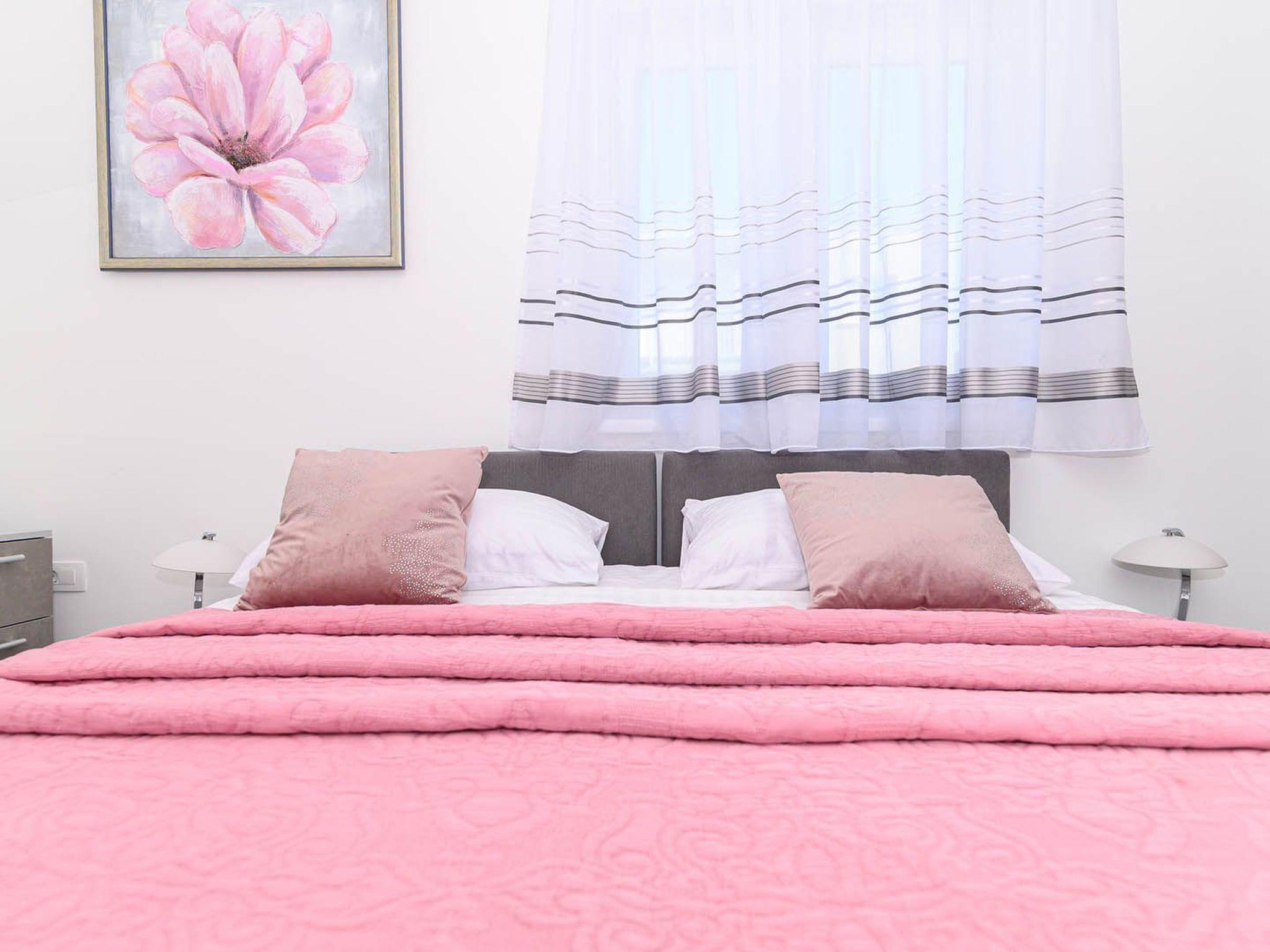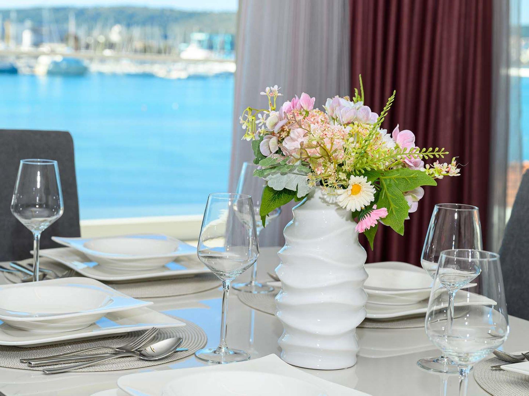 This stylish and airy apartment is located on the third floor of an apartment building and can be accessed by stairs or elevator. The apartment consists of 2 elegantly furnished bedrooms equipped with air condition, SAT-TV and double beds (one bed can be separated into 2 single beds), 2 bathrooms with shower, fully equipped kitchen, living room with dining area and a covered seaview balcony which can be accessed through a large sliding glass door. Apartment Style is a suitable accommodation for up to 4 persons.Breathtaking view from the balcony spreading over the nearby island of Ciovo and the marina is what gives this apartment a special charm and the feeling of being a true oasis of peace and relaxation.Apartment Style is fully air conditioned and equipped with SAT-TV, wi-fi internet, iron and ironing board, baby cot, high chair, safe, mosquito nets, electric stove, oven, hood, refrigerator with freezer, dishwasher, microwave, electric kettle, coffee maker (filter), toaster, barbecue equipment, outdoor barbecue, washing machine, dryer and hair dryer. The property offers parking, 1 outdoor and 1 in the garage, free of charge.