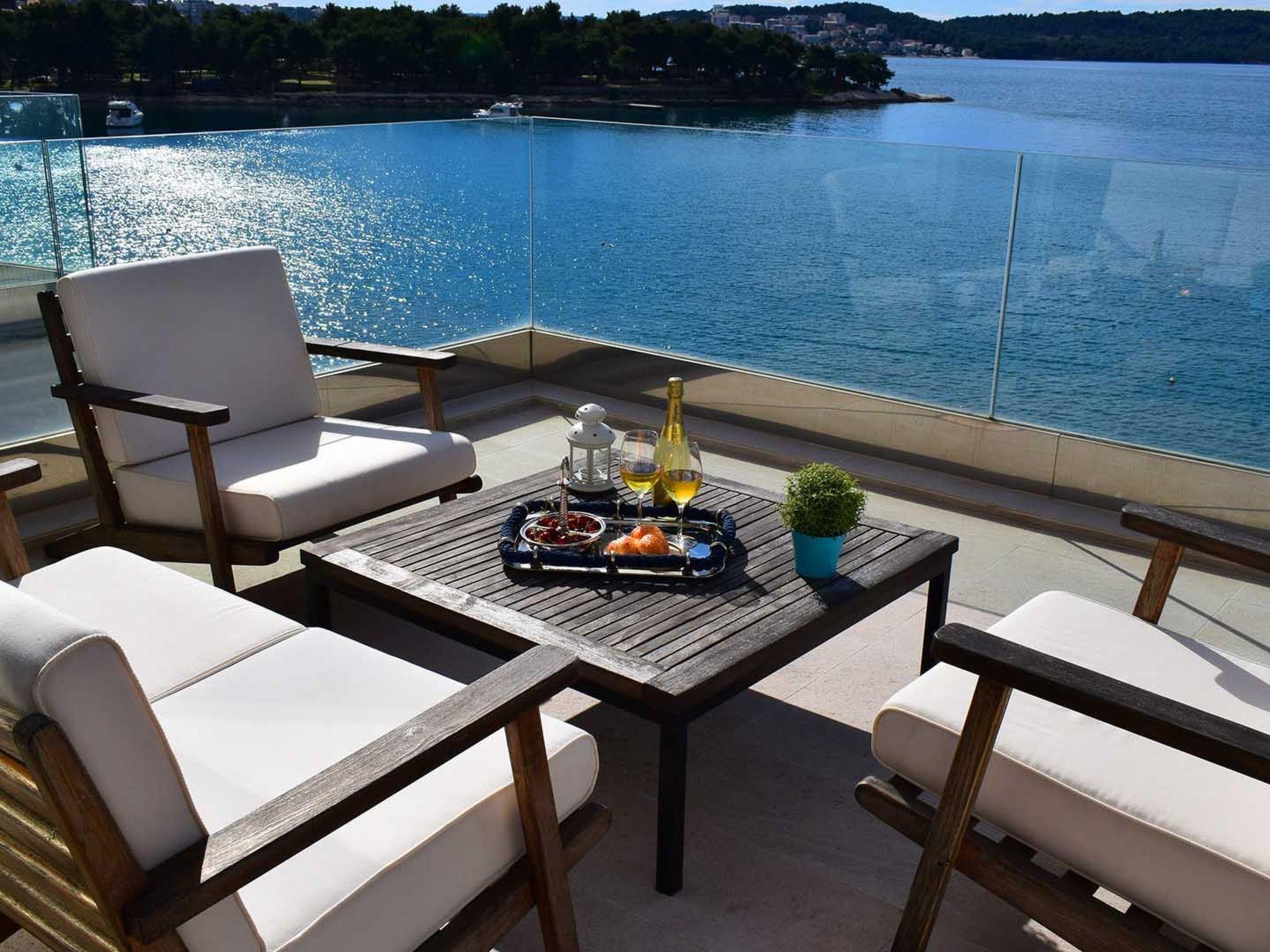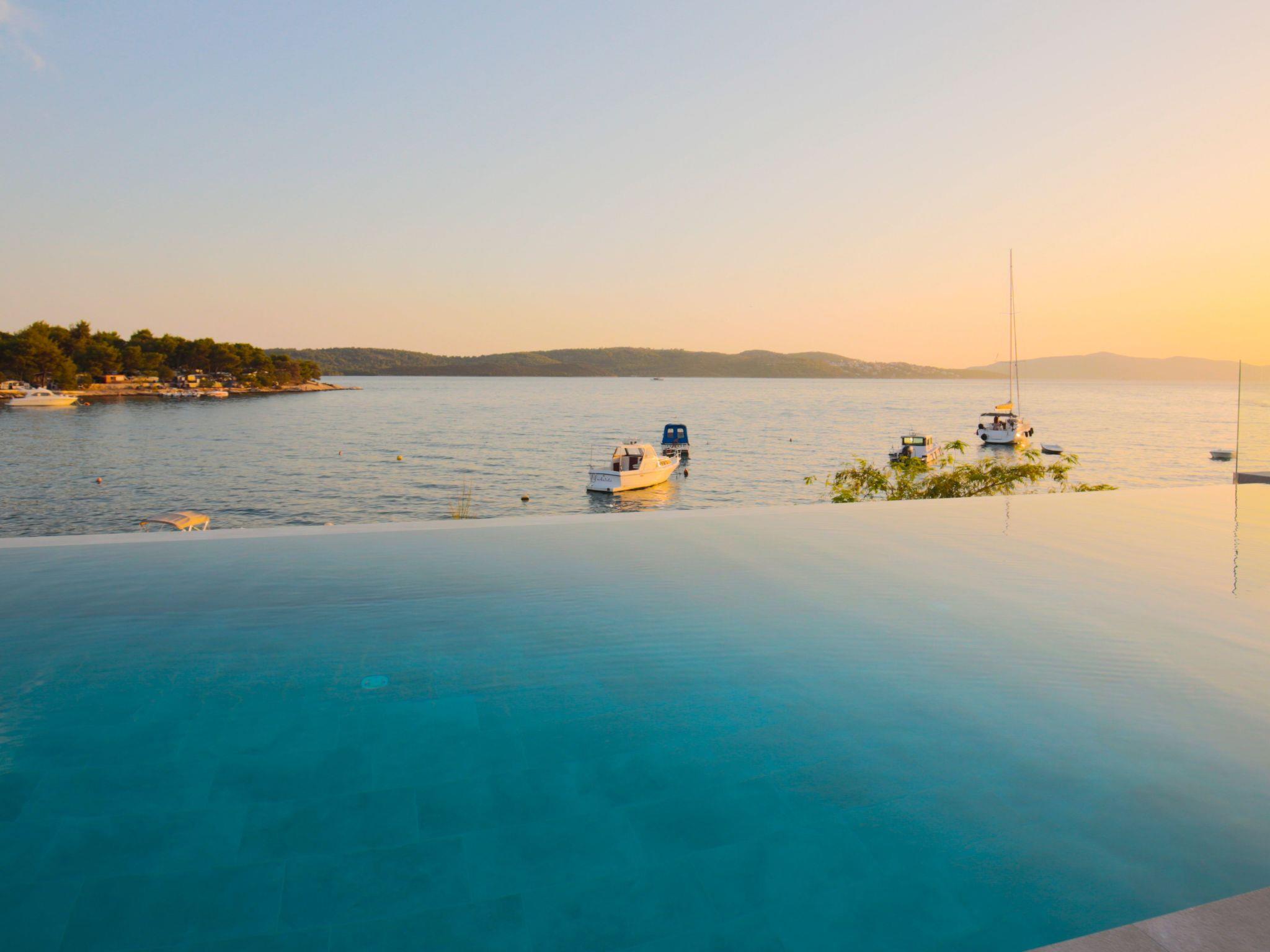 Villa Luna Azzurra is a luxurious superbly decorated beachside holiday villa located on the small island of Ciovo, just 900 m from the historical UNESCO protected city center of town Trogir which is connected to the island with a bridge.