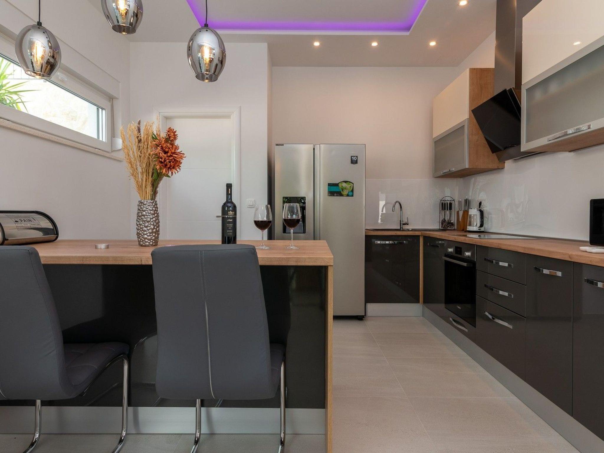 Villa Fantasy is a brand new luxurious holiday villa located in the picturesque village of Mastrinka, just a 10 minute drive from the historical center of town Trogir and a 40 minute drive from the center of the city of Split. This modernly furnished and spacious villa situated in a quiet area provides everything needed for a relaxing vacation with friends or family, including a spectacular seaview spreading from the balcony.