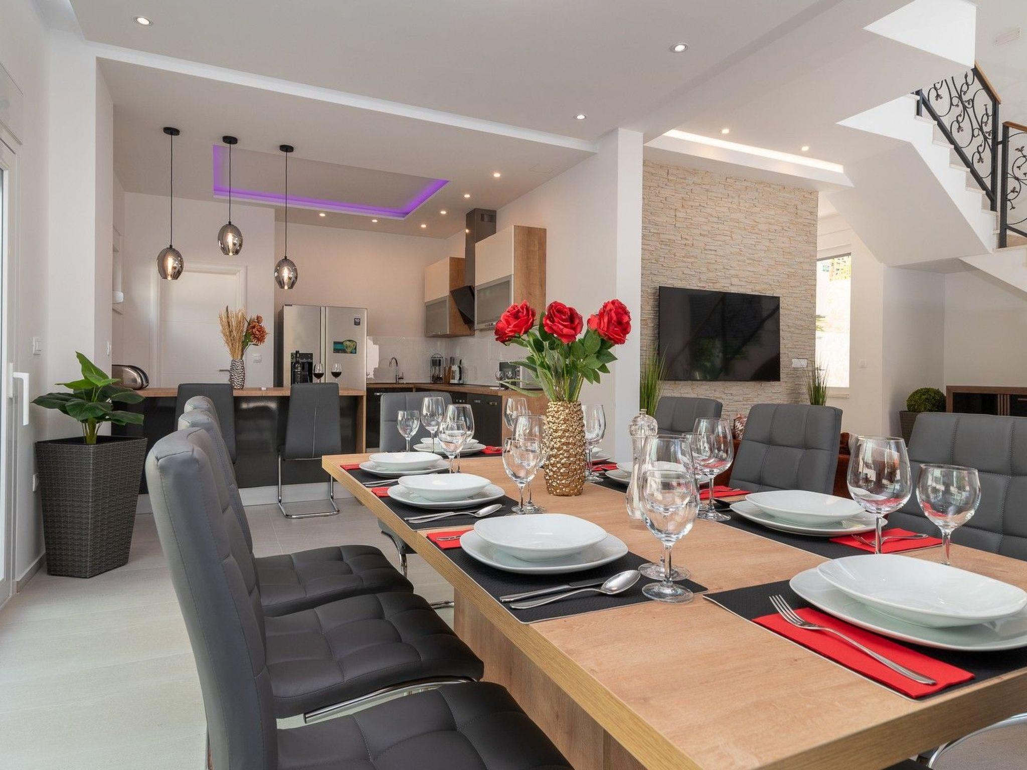 The villa is located on the hill with a slightly steep access road. Car hire is recommendable.Villa Fantasy is fully air conditioned and equipped with SAT-TV, wi-fi internet, iron and ironing board, baby cot, blinds, safe, electric stove, oven, hood, refrigerator with freezer and ice maker, dishwasher, microwave, electric kettle, coffee maker, toaster, barbecue equipment, blender, washing machine, hair dryer, first aid kit, fire extinguisher, smoke detector, table football/pool table, outdoor grill and table tennis.The property offers 3 parking places free of charge. Pets are not allowed.