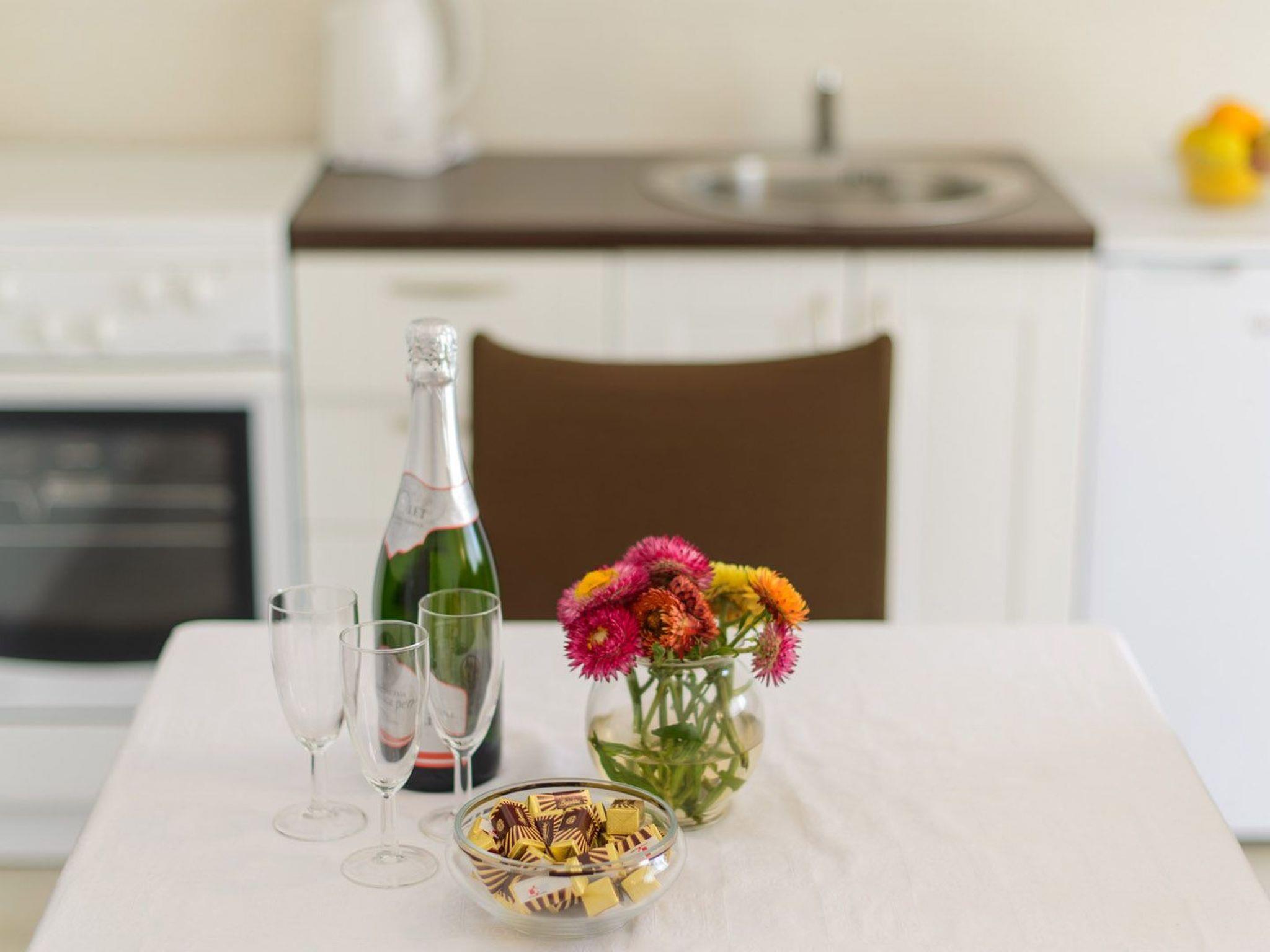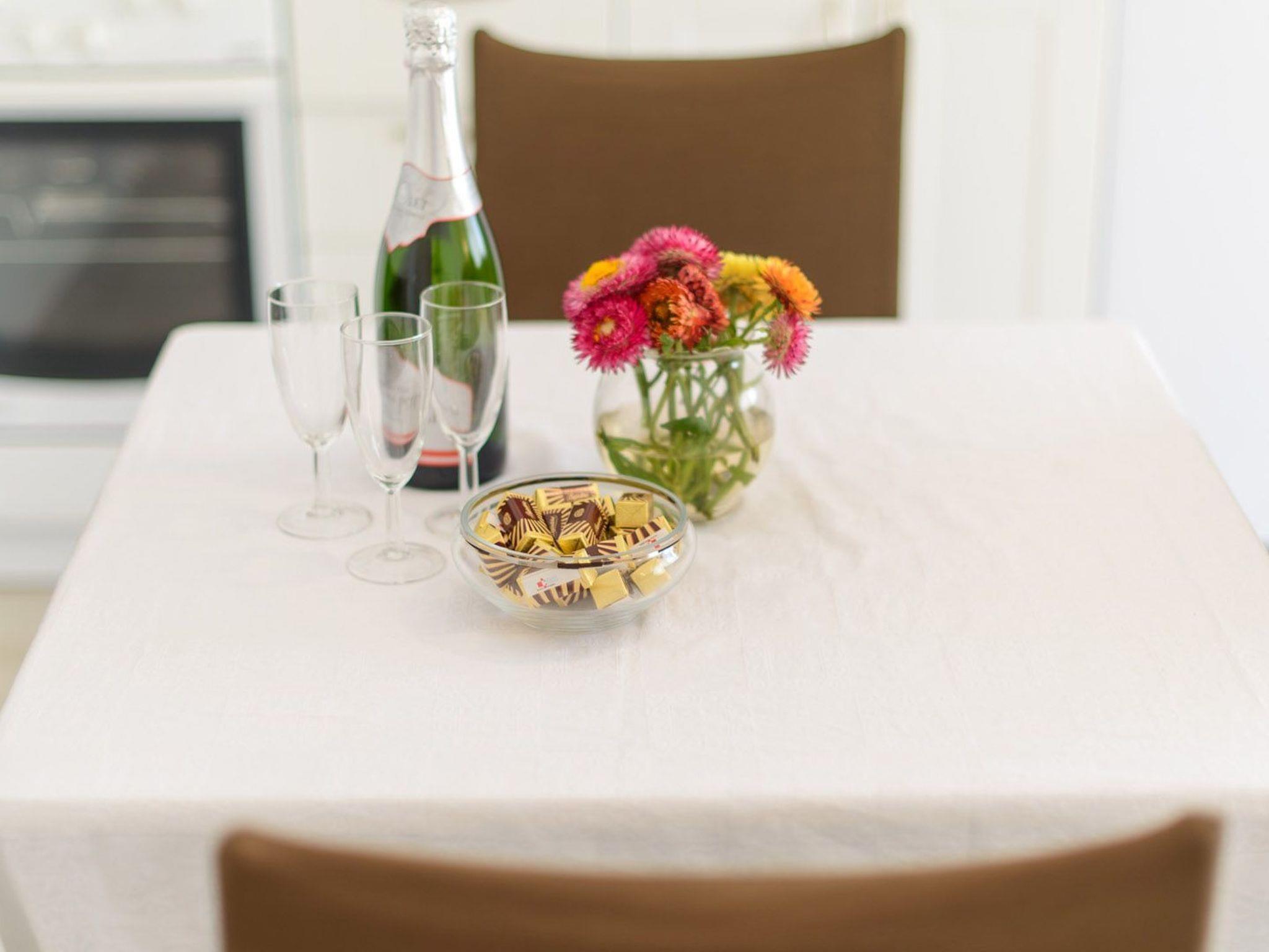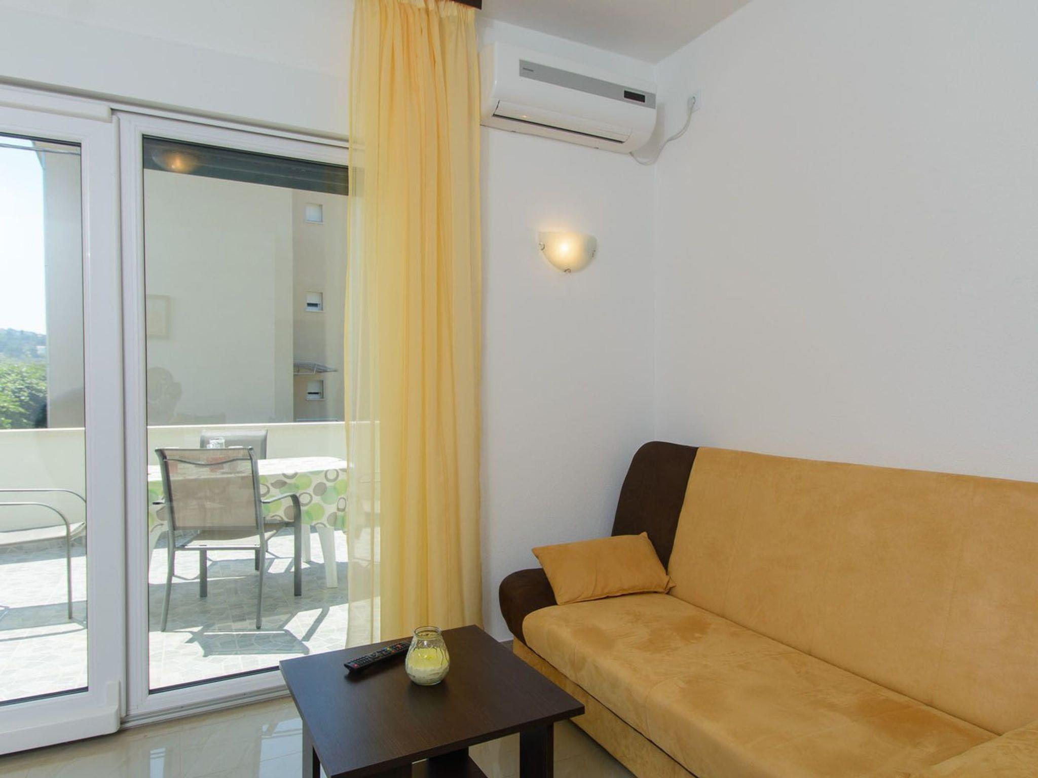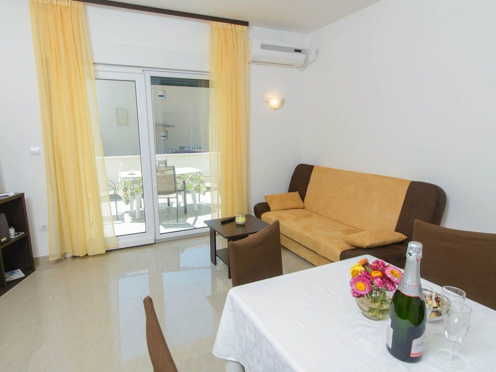 Apartment Sunrise covers 40 m2 and is located on the ground floor of a family house. The apartment consists of 1 bedroom with double bed, 1 bathroom with shower, modernly furnished living room with sofa bed for 2 persons, dining area and a kitchen. The living room has access to a spacious balcony with outdoor table and chairs. Apartment Sunrise can accommodate up to 4 persons (2+2). Apartment Sunrise is equipped with air condition, Wi-fi, SAT-TV, iron and ironing board, stove, oven, hood, refrigerator with freezer, electric kettle, coffee maker, washing machine and hair dryer. Baby cot and high chair are available on request. The property offers 1 parking place, free of charge.