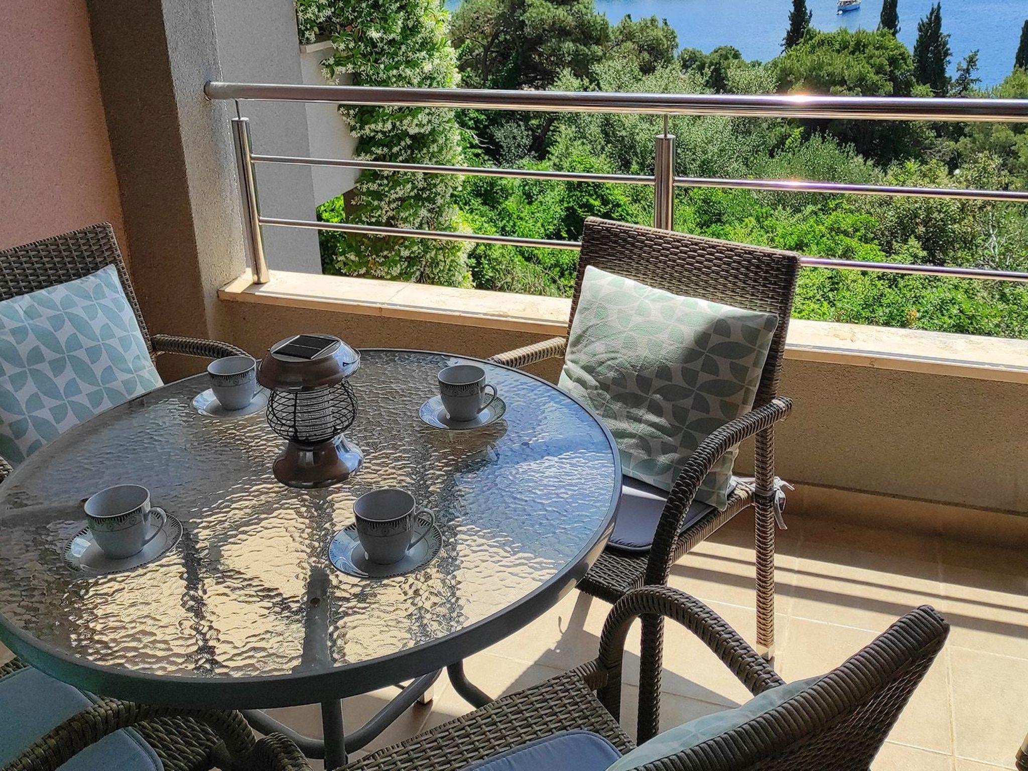 This charming holiday apartment is carefully designed and furnished to be your home away from home and provide everything needed for a carefree holiday. The apartment, located on the first floor of the apartment building, consists of 1 charmingly furnished bedroom with double bed (160 x 200 cm), 1 bathroom with bathtub with shower, open concept living room with sofa bed for 1 person and fully equipped kitchen. The apartment provides suitable accommodation for 3 persons. What gives this apartment a unique touch and makes it the perfect choice for your holiday is the spacious balcony with a stunning view spreading over the sea and the entire bay, where you can drink your morning coffee or evening glass of wine while enjoying the beautiful scenery. Guests who enjoy barbecue also have a new outdoor grill on the balcony on disposal. Apartment Idlerocks is fully air conditioned and equipped with smart TV, wi-fi, iron and ironing board, safe, blinds, basic soaps, electric stove, oven, hood, refrigerator with freezer, dishwasher, microwave, electric kettle, coffee maker (filter and french press), toaster, wine and champagne glasses, washing machine, hair dryer, first aid kit and fire extinguisher.