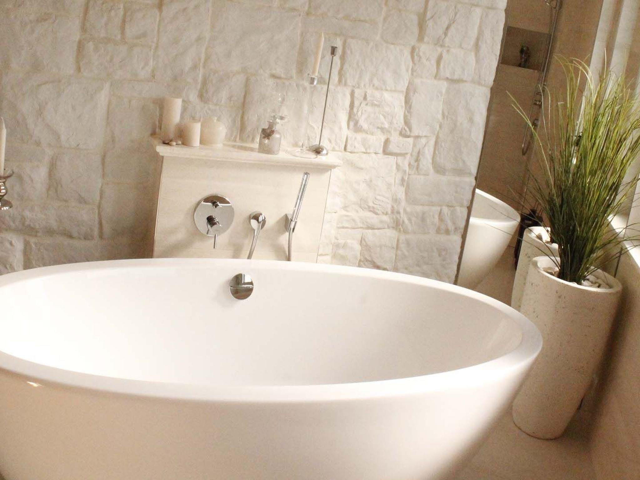 Bathroom 2: shower, bathtub, WC, sink, towels, toiletries