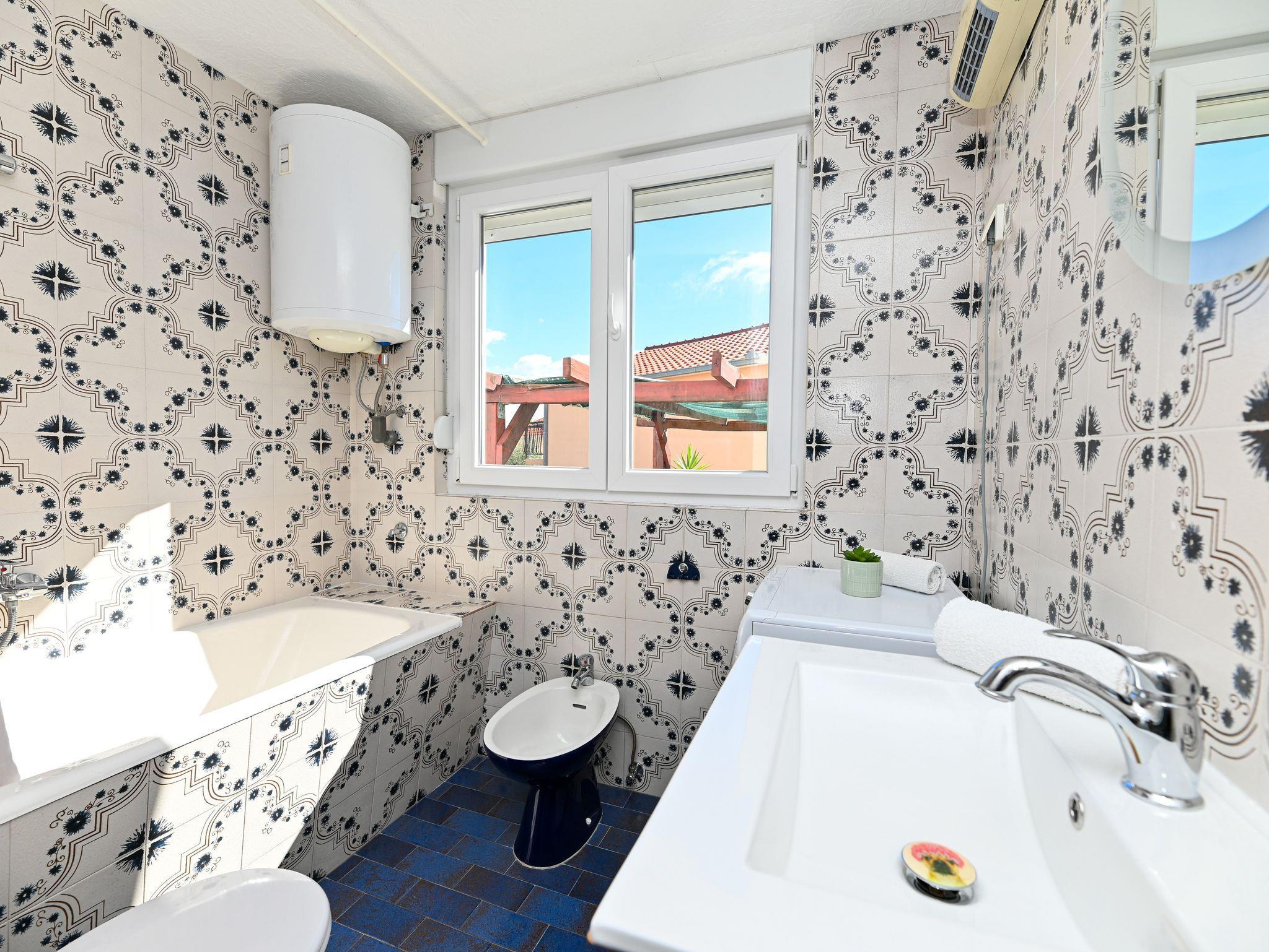 Ferienwohnung bietet Platz für 4 Gäste. Die Betten sind in Schlafzimmern, die es 2 gibt, innerhalb einer Gesamtfläche von 101m2, angeordnet. Die Gäste haben eine eigene Terrasse zur Verfügung, auf der sie in warmen Sommernächten genießen können. Das Apartment bietet Meerblick. Es ist erlaubt, Speisen auf dem Gemeinschafts-Grill vorzubereiten. IM PREIS INBEGRIFFEN: Kurtaxe, Endreinigung, Klimatisierung, Parkplatz, Internet, Kinderbett, Bügeleisen, Bügelbrett, Föhn. Die Verfügbarkeit zusätzlicher Dienstleistungen in Ihrem reservierten Termin und die Preise derselben (falls nicht aufgeführt) müssen im Voraus überprüft werden. Zusätzliche Dienstleistungen die in der Zahlungsaufforderung nicht aufgeführt sind werden direkt beim Vermieter bezahlt, angenommen der Gast nutzt auch diese. Ermäßigung auf den Grundpreis: Gratistag 14=13 (bei einem Aufenthalt von 14 Tagen oder mehr erhalten Sie einen Gratistag für den Aufenthalt bis 31.12.26).