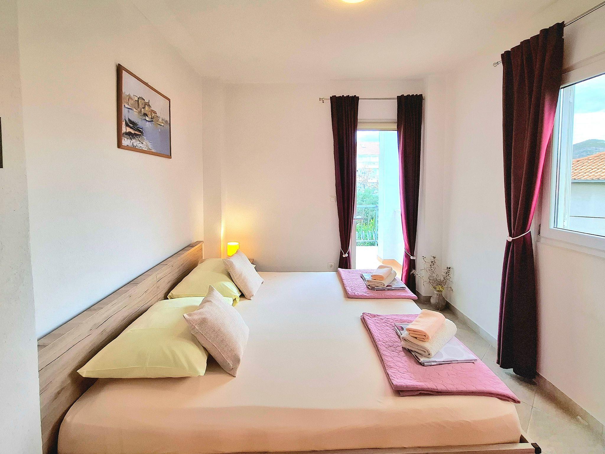 Ferienwohnung bietet Platz für 4 Gäste. Die Betten sind in Schlafzimmern, die es 1 gibt, und in Wohnzimmer, innerhalb einer Gesamtfläche von 27m2, angeordnet. Die Gäste haben eine eigene Terrasse zur Verfügung, auf der sie in warmen Sommernächten genießen können. Das Apartment bietet Meerblick. IM PREIS INBEGRIFFEN: Kurtaxe, Endreinigung, Klimatisierung, Zentralheizung, Parkplatz, Internet, Bügeleisen, Bügelbrett, Föhn. Die Verfügbarkeit zusätzlicher Dienstleistungen in Ihrem reservierten Termin und die Preise derselben (falls nicht aufgeführt) müssen im Voraus überprüft werden. Zusätzliche Dienstleistungen die in der Zahlungsaufforderung nicht aufgeführt sind werden direkt beim Vermieter bezahlt, angenommen der Gast nutzt auch diese. Ermäßigung auf den Grundpreis: Gratistag 14=13 (bei einem Aufenthalt von 14 Tagen oder mehr erhalten Sie einen Gratistag für den Aufenthalt bis 31.12.26).