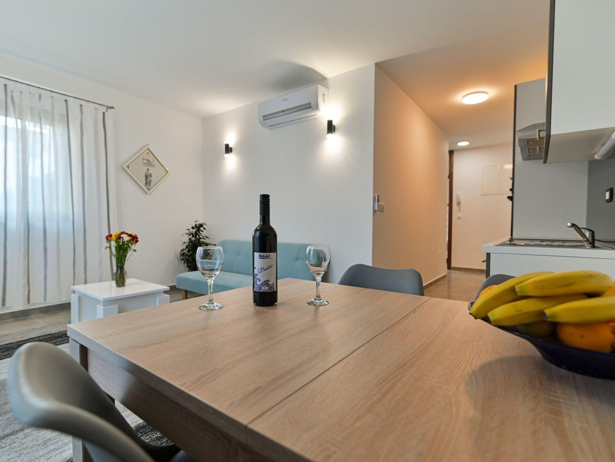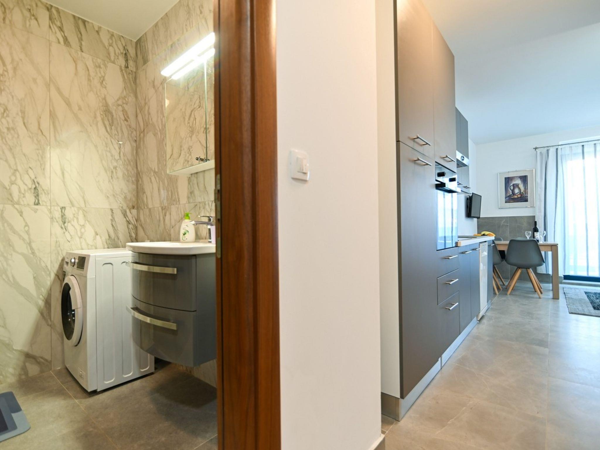 Ferienwohnung bietet Platz für 2 Gäste. Die Betten sind in Schlafzimmern, die es 1 gibt, innerhalb einer Gesamtfläche von 43m2, angeordnet. Die Gäste haben eine eigene Terrasse zur Verfügung, auf der sie in warmen Sommernächten genießen können. Es ist erlaubt, Speisen auf dem Gemeinschafts-Grill vorzubereiten. IM PREIS INBEGRIFFEN: Kurtaxe, Endreinigung, Klimatisierung, Parkplatz, Internet, Kinderbett, Zusatzbett, Bügeleisen, Föhn, Sonnenschirm, Liegestühle. VERBINDLICHE ZUSÄTZLICHE KOSTEN: Aufzahlung für Kurzaufenthalte (prozentualer Zuschlag pro Nächtigungsanzahl: 30% - 1, 20% - 2, 10% - 3). Die Verfügbarkeit zusätzlicher Dienstleistungen in Ihrem reservierten Termin und die Preise derselben (falls nicht aufgeführt) müssen im Voraus überprüft werden. Zusätzliche Dienstleistungen die in der Zahlungsaufforderung nicht aufgeführt sind werden direkt beim Vermieter bezahlt, angenommen der Gast nutzt auch diese.