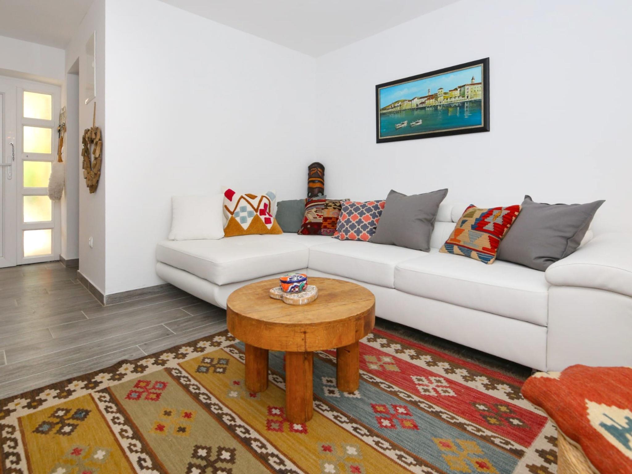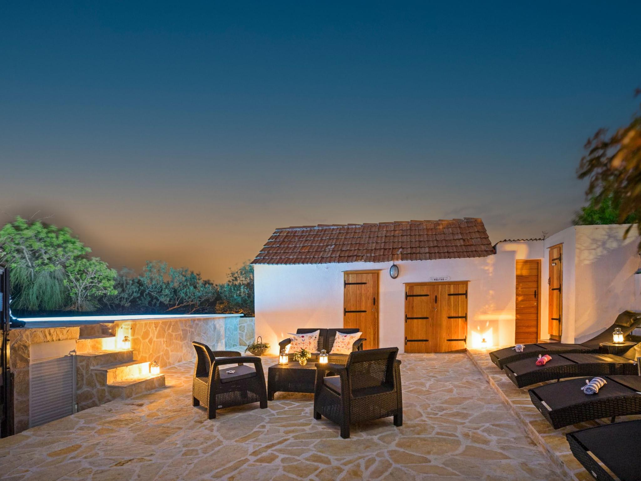 Single-family house "Ambi", 2 storeys, renovated in 2024. In the district of Žedno 4 km from the centre of Trogir, in a quiet, sunny position, 1.7 km from the sea, 1.7 km from the beach. Private: property 500 m2 (fenced), swimming pool angular (6 x 3 m, 20 m2, depth 150 cm, seasonal availability: 15.May. - 01.Oct.). WC in the pool area, outdoor shower, terrace (25 m2), garden furniture, barbecue house. In the house: internet access, washing machine. Public parking 200 m. Shop 1.6 km, supermarket 5 km, restaurant 1.6 km, café 1.6 km, bus stop 400 m, pebble beach 1.7 km. Marina 7 km.