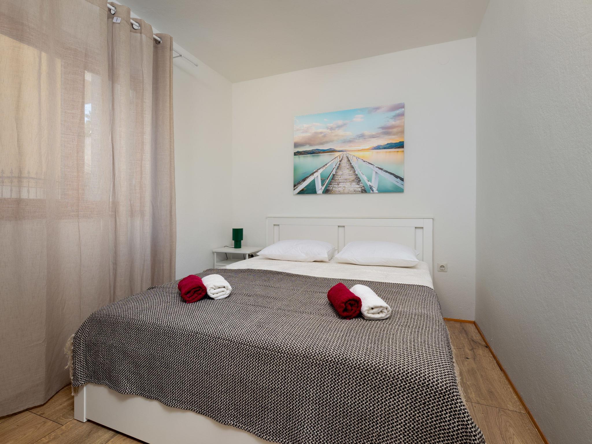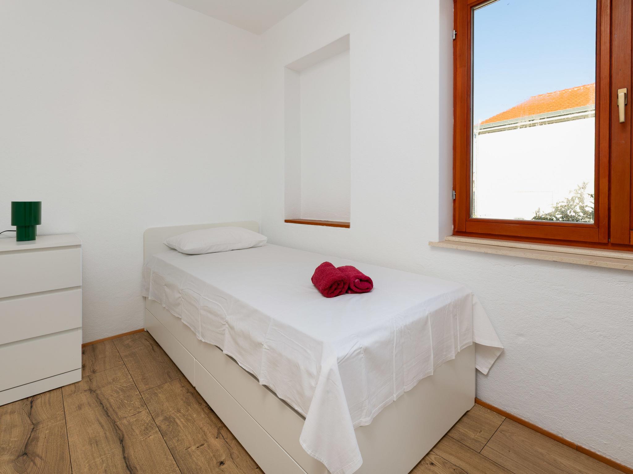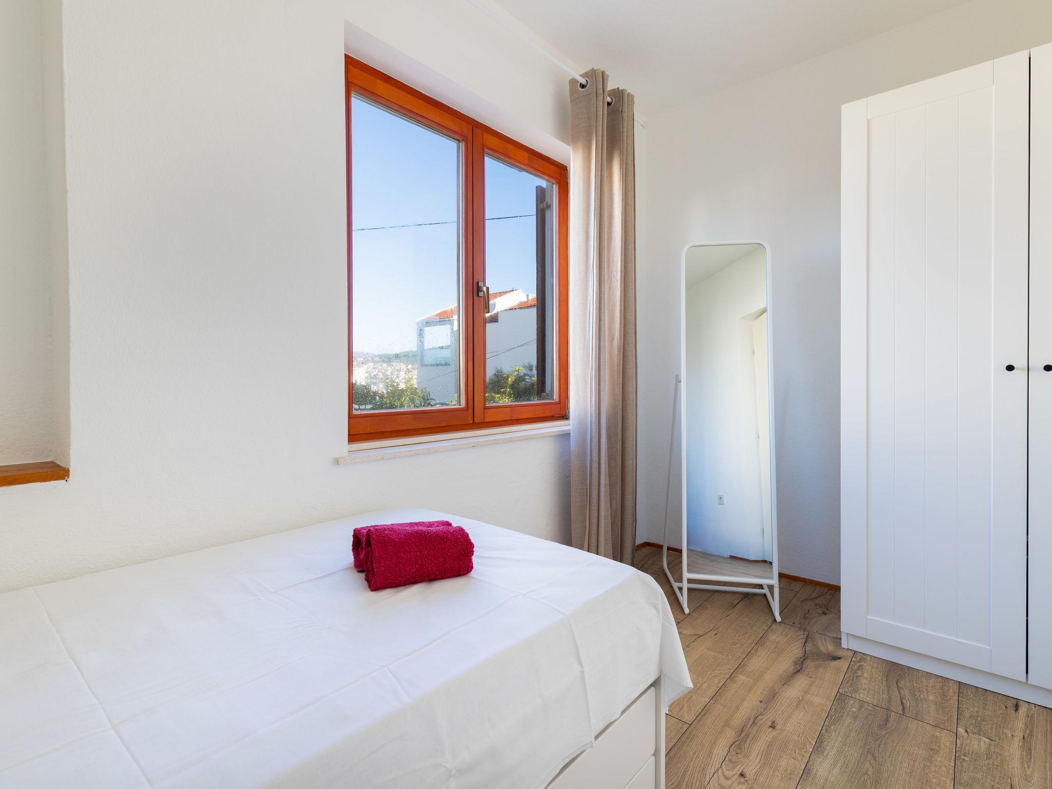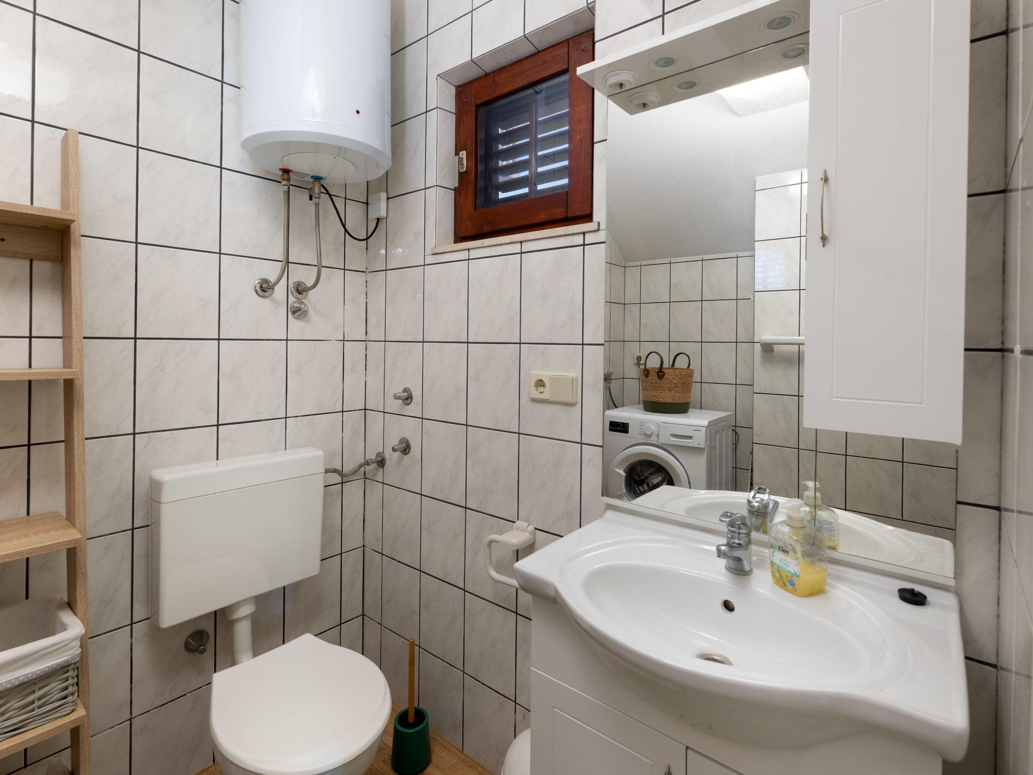 Okrug Gornji (Ciovo) 6 km from Trogir: Apartment house, 3 storeys. 1.5 km from the centre of Okrug Gornji, in a quiet, sunny position, 80 m from the sea, 80 m from the beach. For shared use: property 450 m2. Terrace (20 m2), barbecue. In the house: internet access. Parking (for 5 cars) at the house on the premises. Shop 1.5 km, restaurant 1.5 km, bus stop 1 km.
