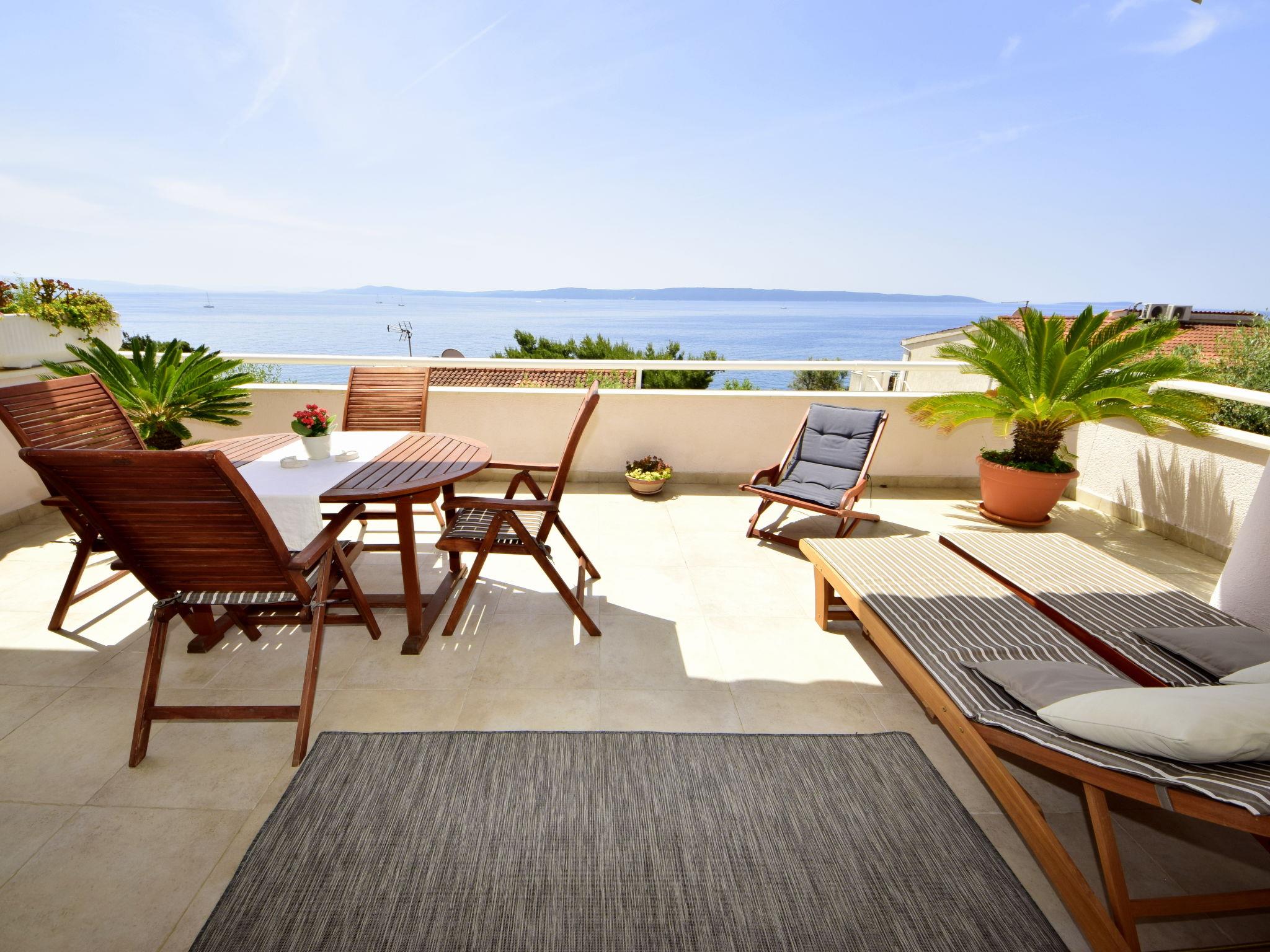 4-room apartment 82 m2 on 1st floor. Beautiful and tasteful furnishings: living/dining room 30 m2 with satellite TV, CD-player, DVD and air conditioning. Exit to the terrace. 1 room with 1 french bed (160 cm, length 200 cm). 1 room with 1 french bed (140 cm, length 200 cm). 1 room with 1 bed (140 cm, length 200 cm). Open kitchen (4 hot plates, oven, dishwasher, microwave, freezer). Shower/bidet/WC. Terrace 31 m2 partly roofed, south facing position. Terrace furniture. Marvellous view of the sea. Facilities: Internet (WiFi, free). Please note: maximum 1 pet/ dog allowed.