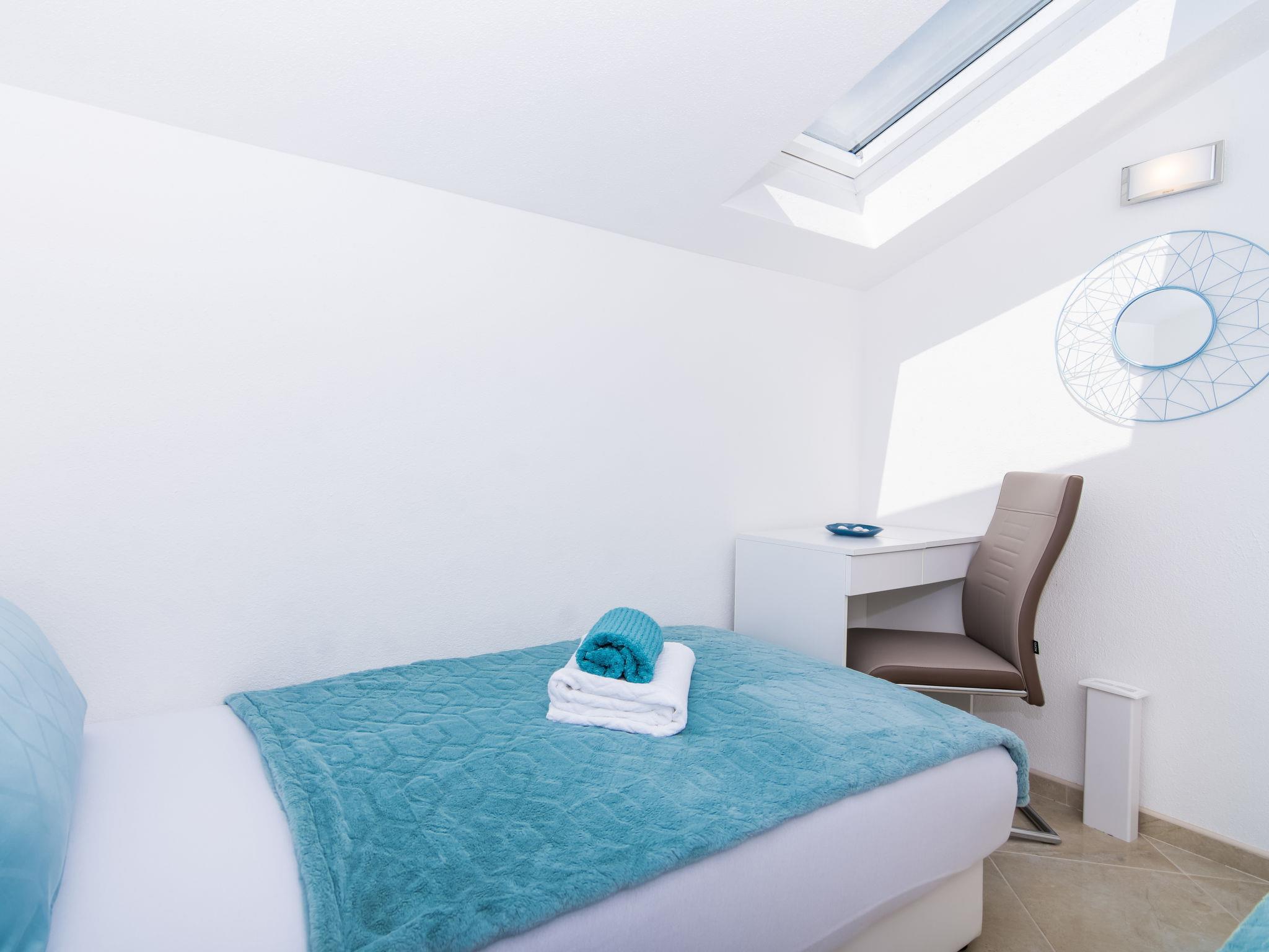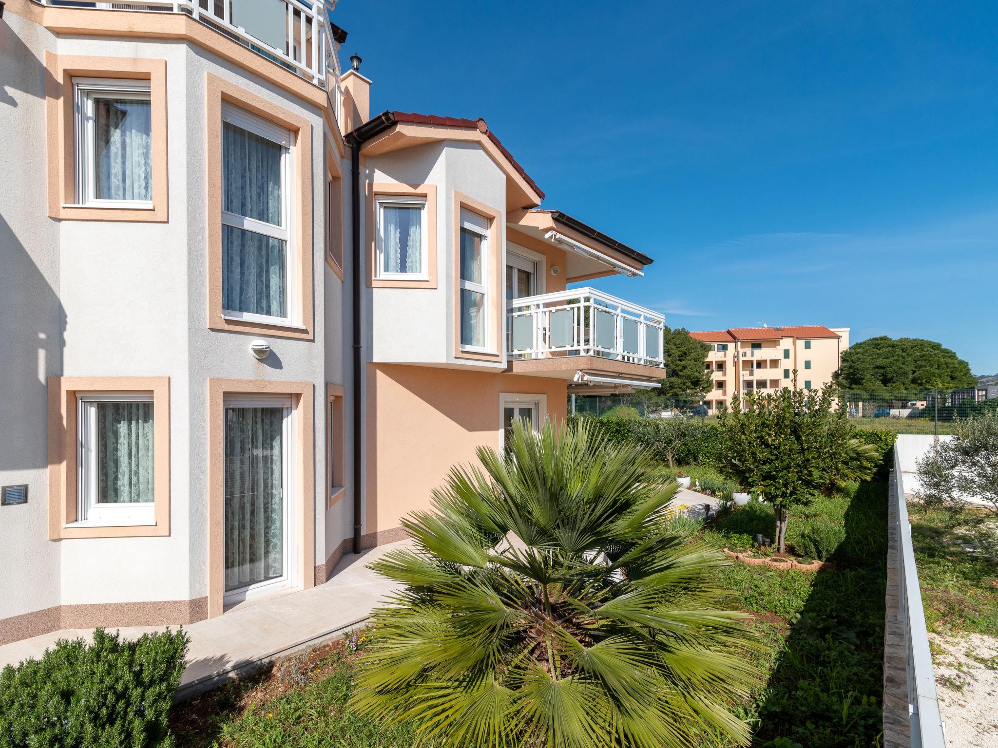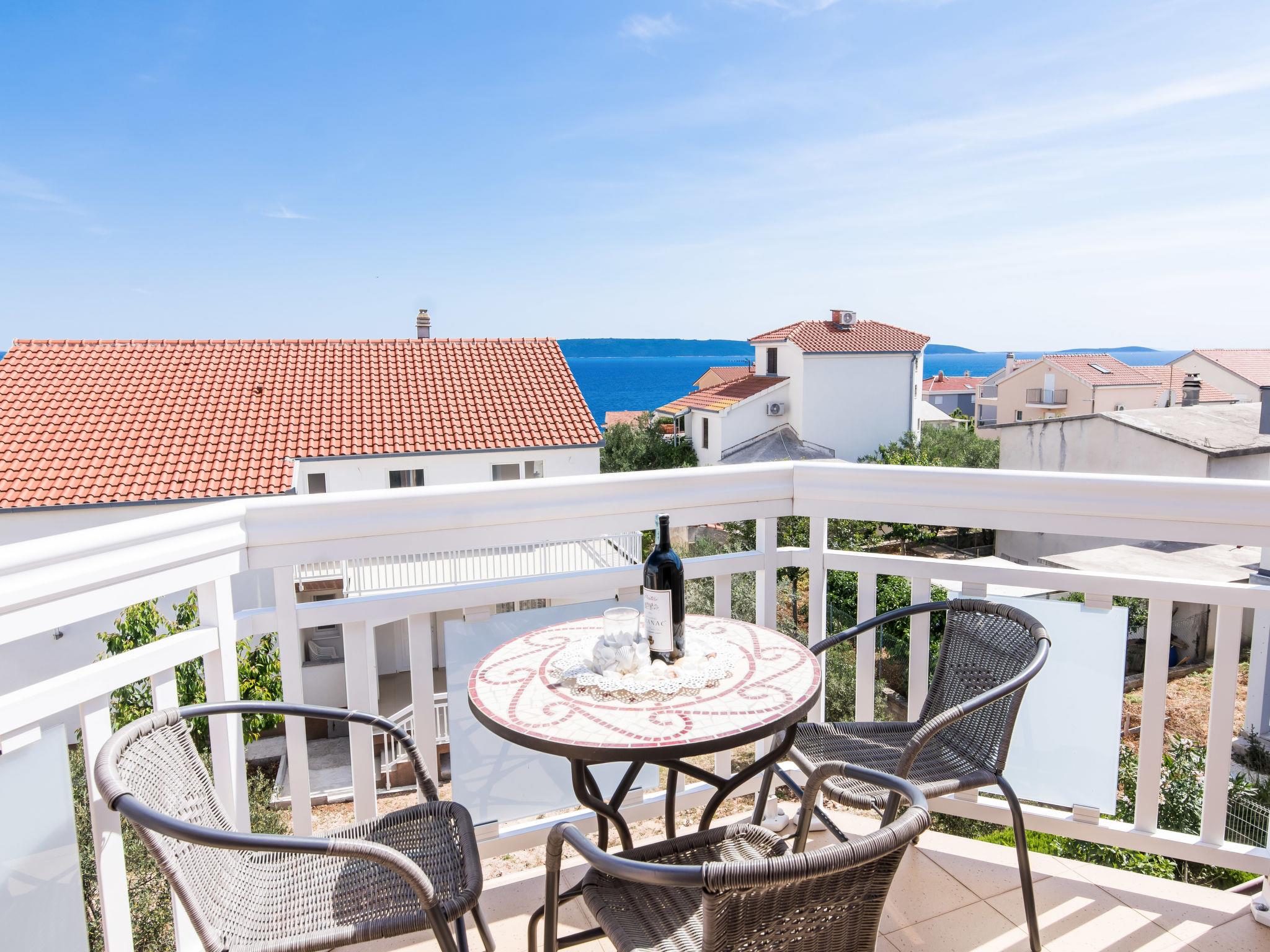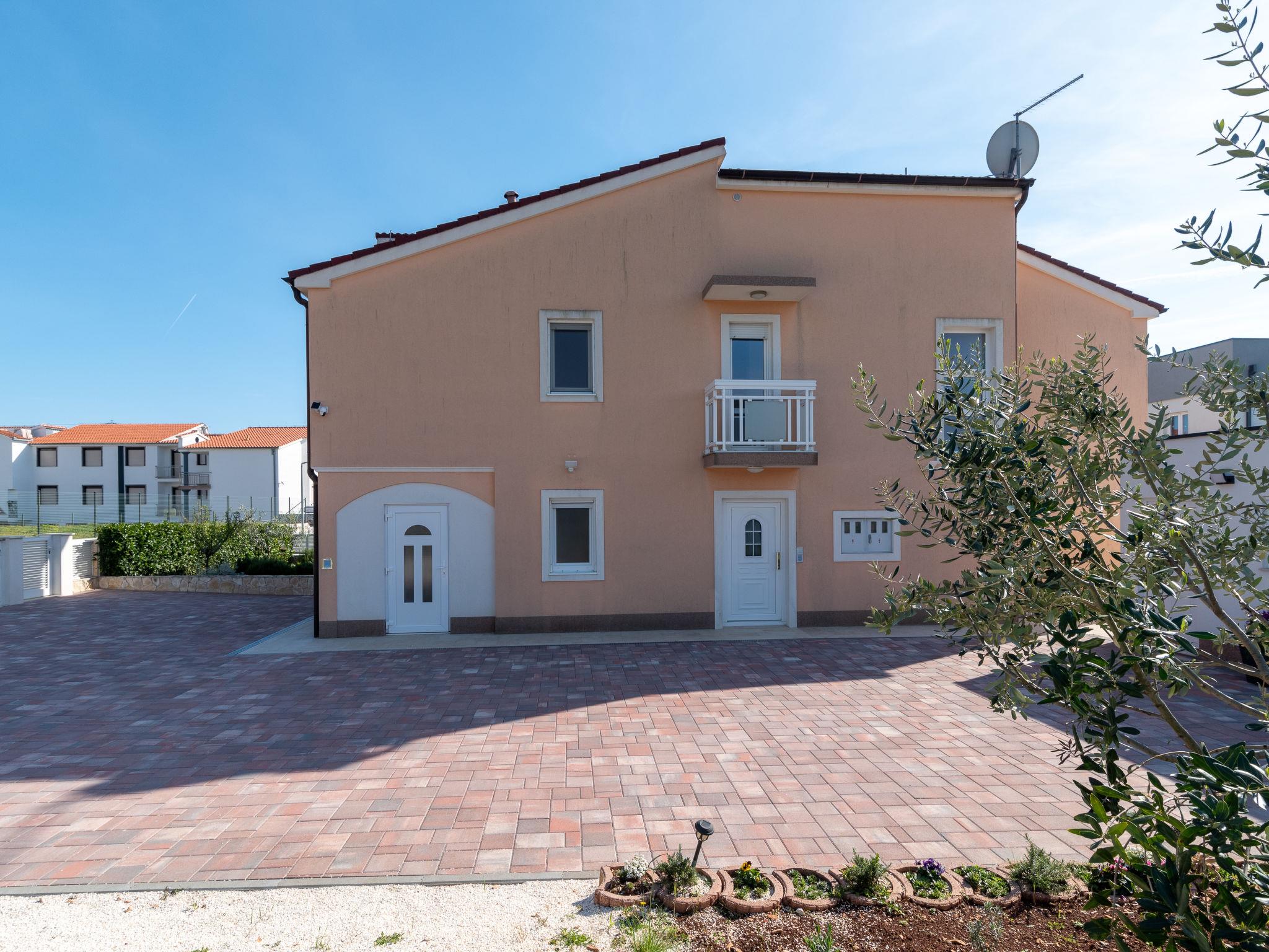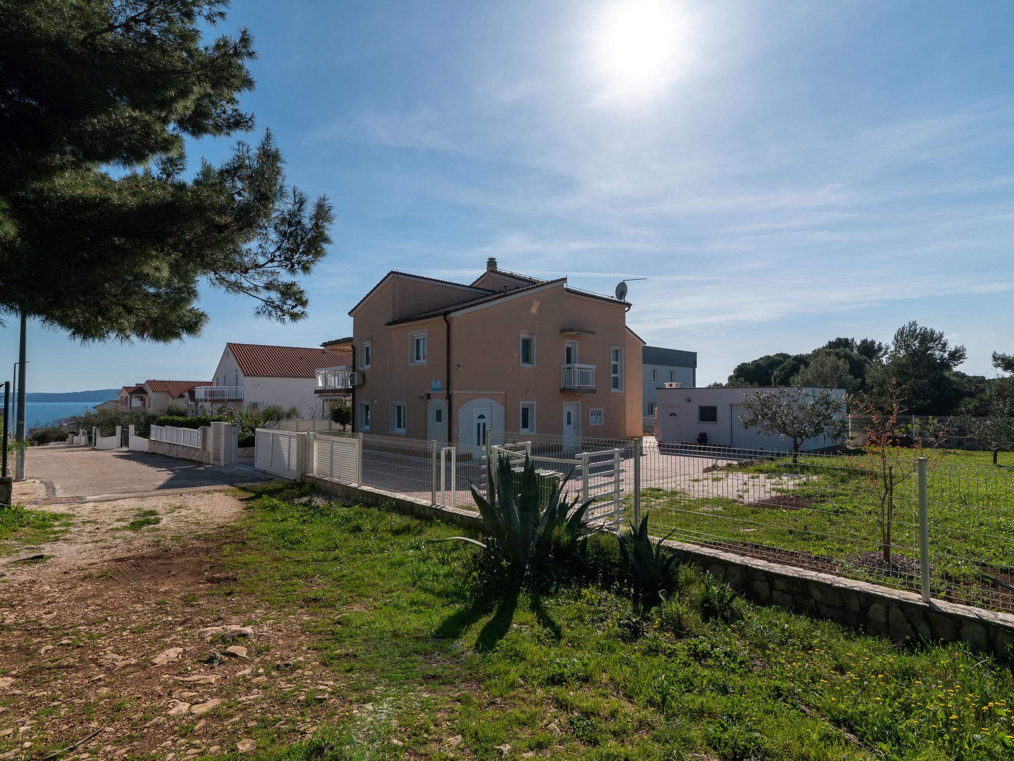 Okrug Gornji (Ciovo) 6 km from Trogir: Beautiful apartment house "Villa Nikaroni". 1.5 km from the centre of Okrug Gornji, in a quiet, sunny position, 250 m from the sea, 250 m from the beach. For shared use: property 1'000 m2, garden with lawn. Barbecue. In the house: internet access. Parking at the house on the premises. Shop, restaurant 650 m, bus stop 2 km, rocky beach 250 m.