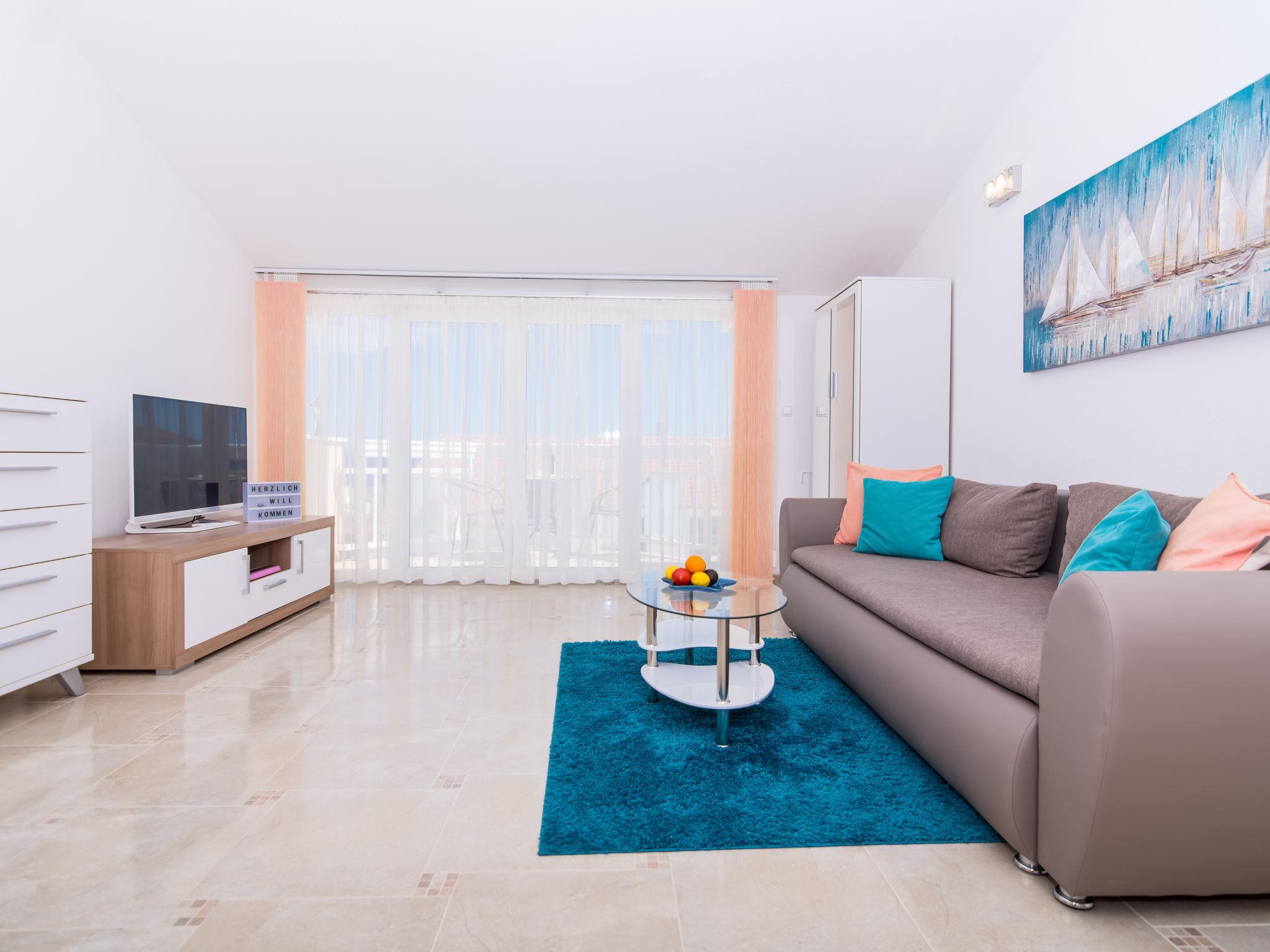 2-room apartment 35 m2 on 2nd floor, south facing position. Beautiful and cosy furnishings: living/dining room with 1 sofabed (150 cm, length 200 cm), satellite TV (flat screen), air conditioning. Exit to the balcony. 1 room with sloping ceilings, ceiling height 170 - 230 cm with rooflight with 2 beds (90 cm, length 200 cm). Open kitchen (oven, 2 ceramic glass hob hotplates, electric coffee machine). Shower/WC. Balcony 5 m2. Balcony furniture. Facilities: hair dryer. Internet (WiFi, free).