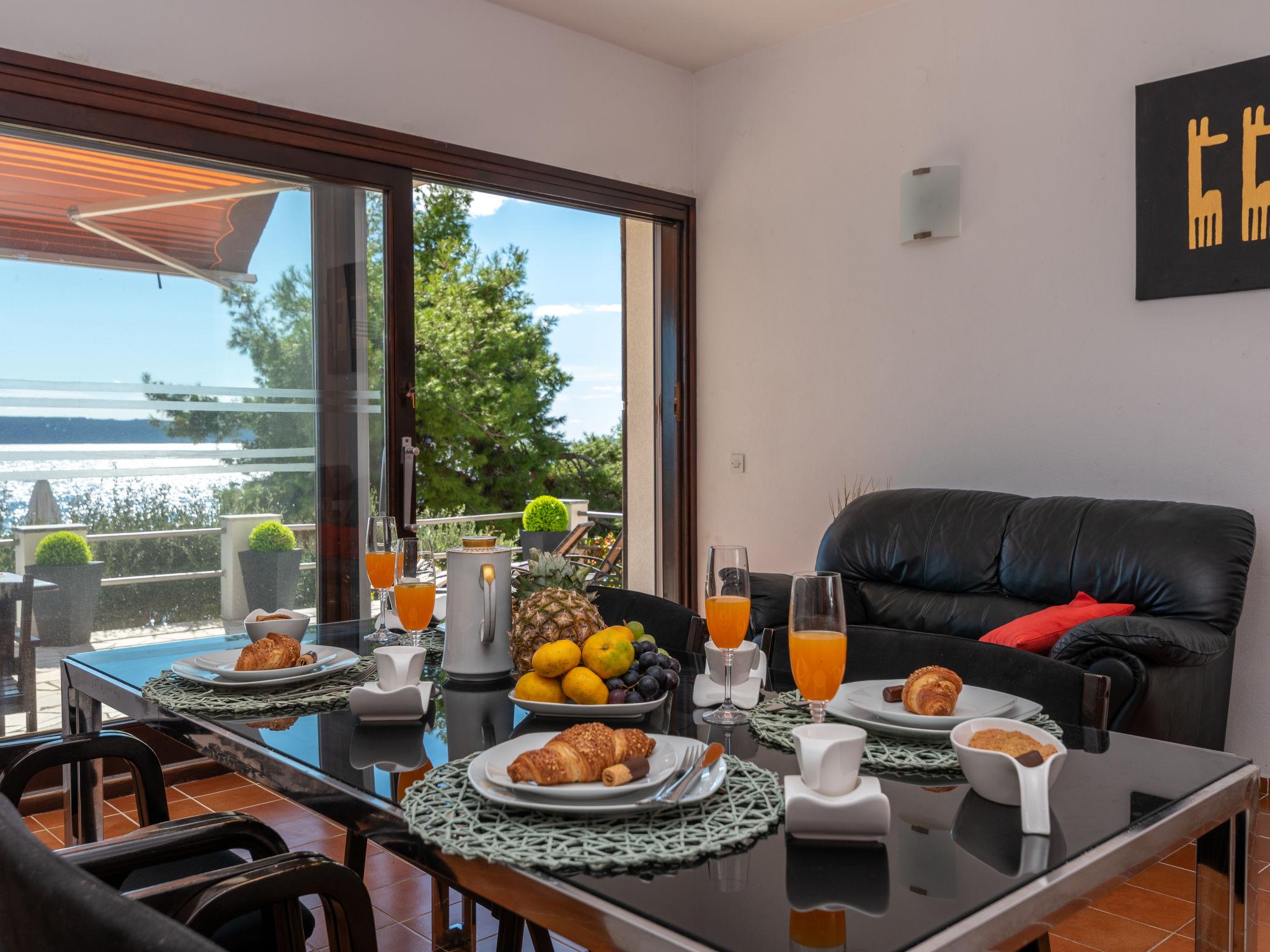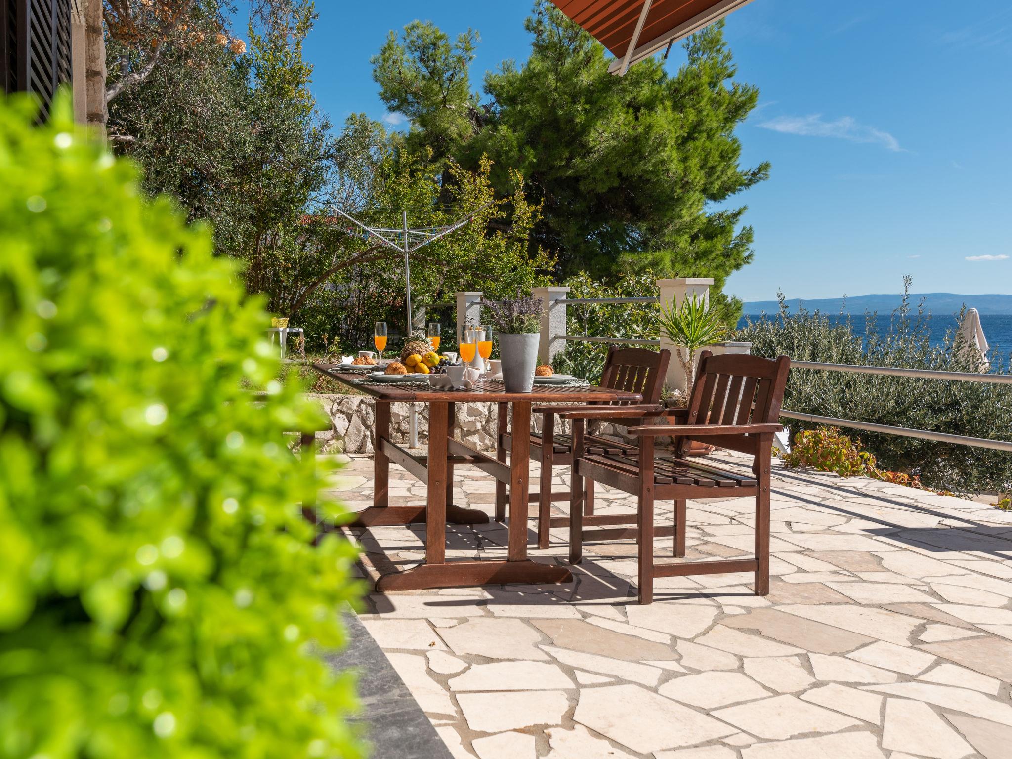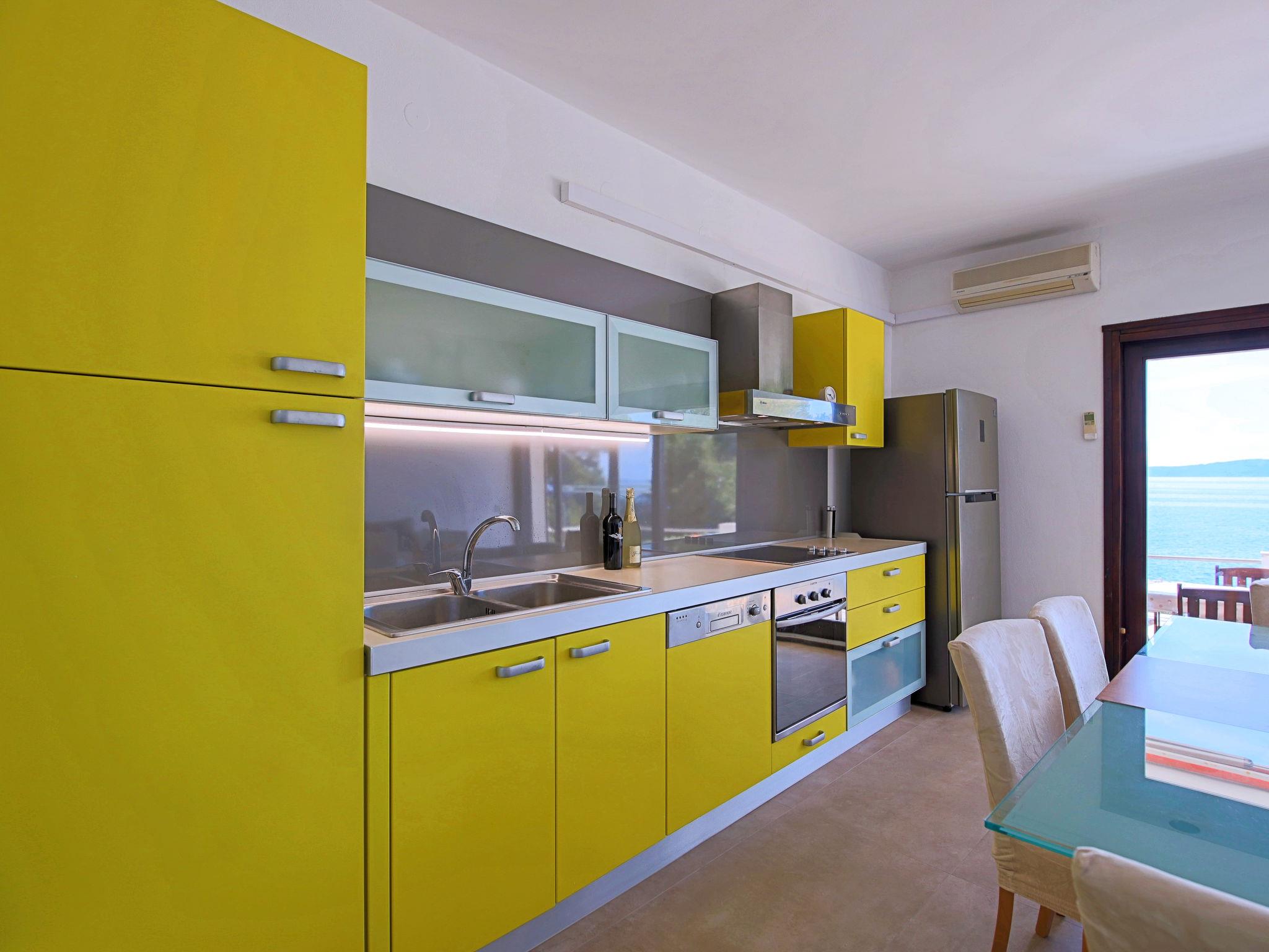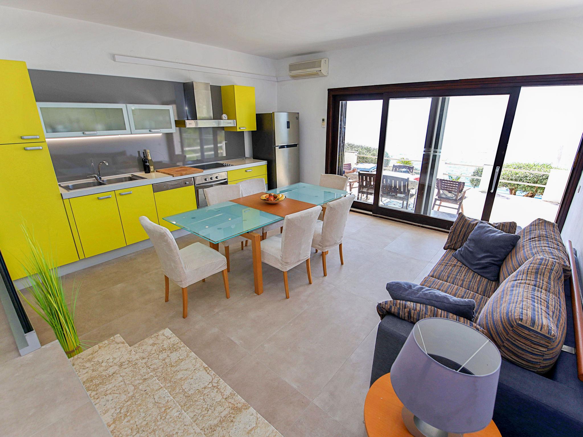 Okrug Gornji (Ciovo), 6 km from Trogir: Beautiful, cosy apartment house "Villa Pinia". Outside the resort, 1.5 km from the centre of Okrug Gornji, in a quiet, sunny, elevated position, 20 m from the sea, 20 m from the beach, in the countryside. For shared use: garden with plants, swimming pool angular (11 x 4 m, depth 120 - 140 cm, seasonal availability: 25.Apr. - 12.Sep.) with salt water and internal staircase. Outdoor shower, patio, barbecue. In the house: internet access, washing machine. Steep motor access to the house. Parking at the house on the premises. Shop 250 m, restaurant 1.5 km, bus stop 1.9 km, pebble beach 100 m, rocky beach 20 m. Please note: Additional accommodations can be booked.